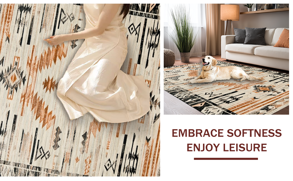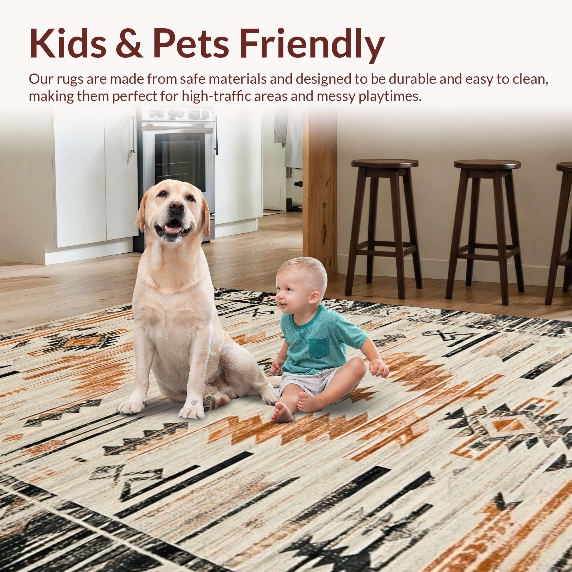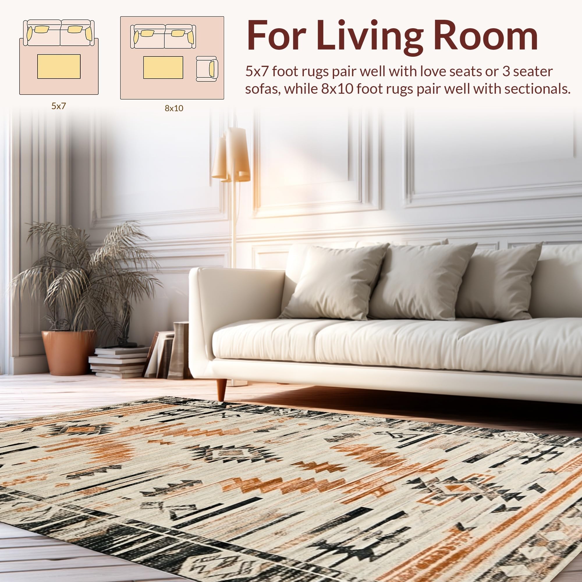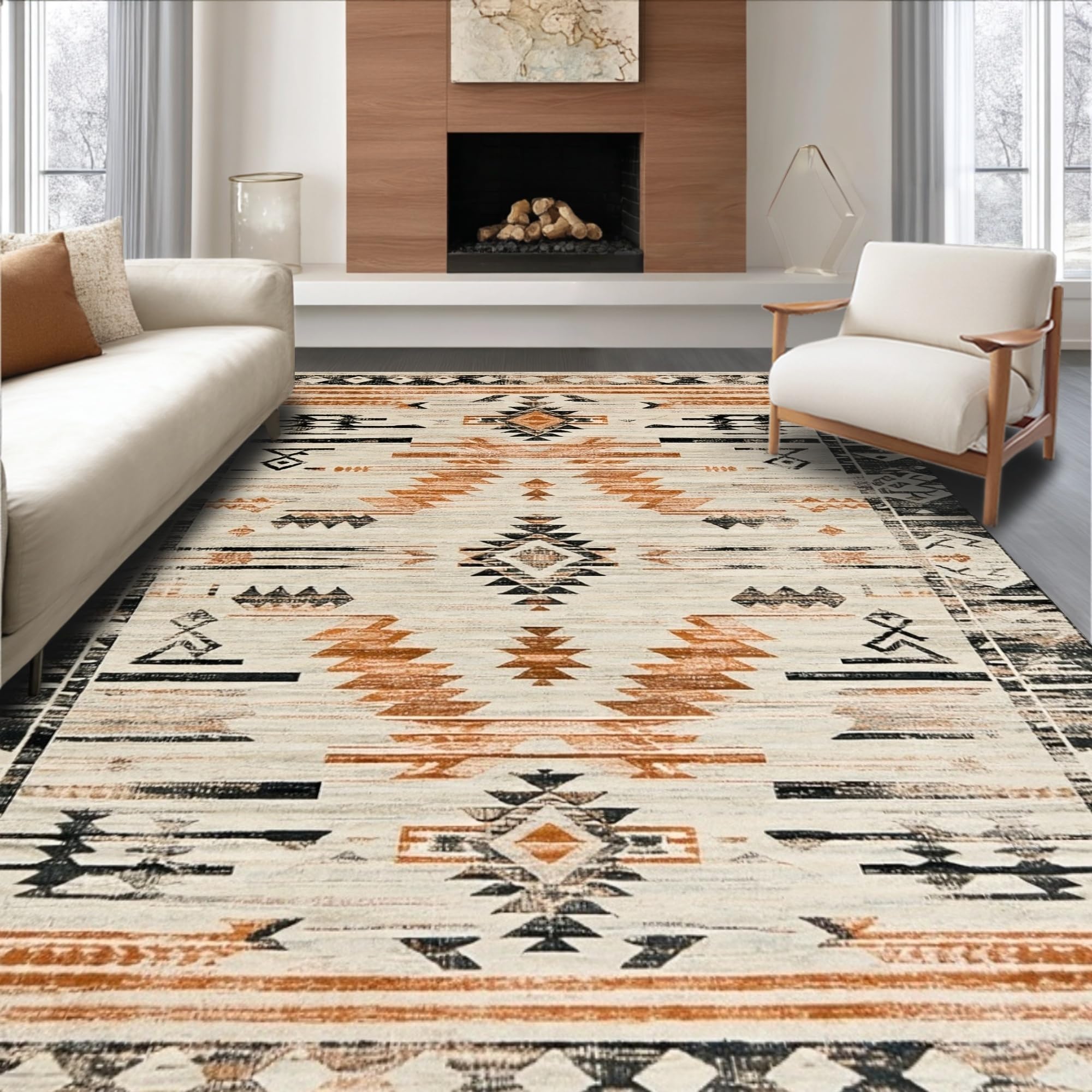 Ultra Soft Area Rug, Non Slip, Stain Resistant, Washable Area Rugs for Living Room, Bedroom, Chic Southwestern Distressed Style(Beige) Overview: