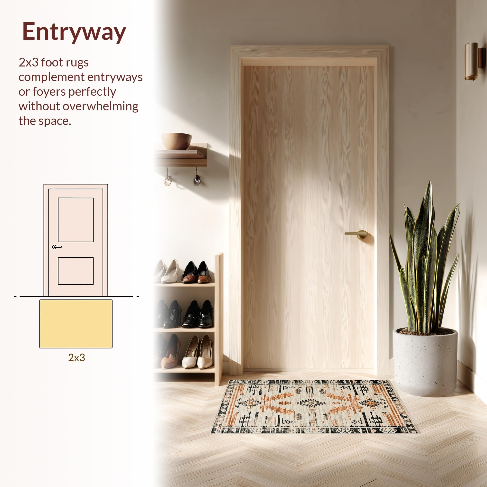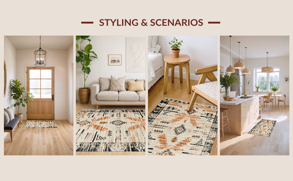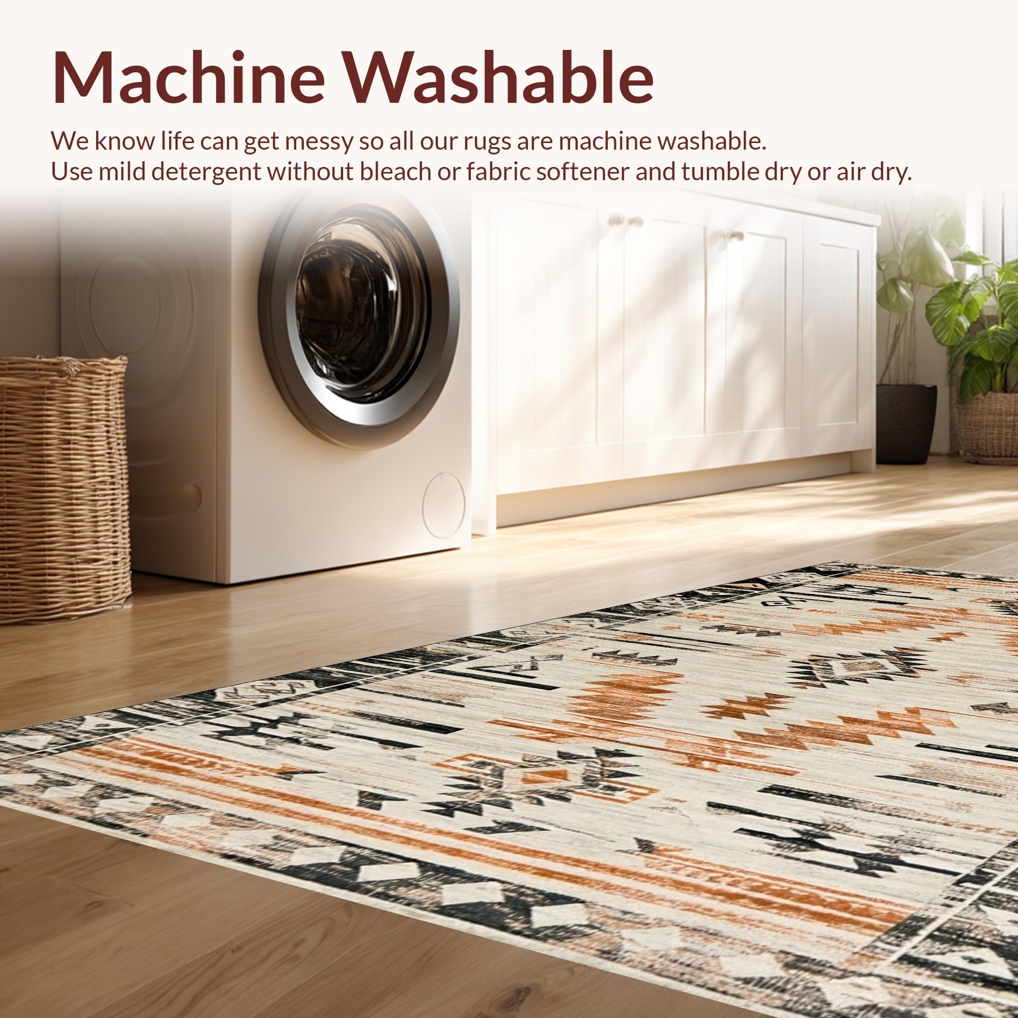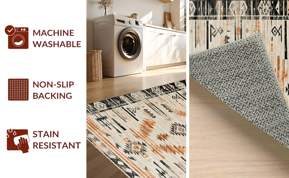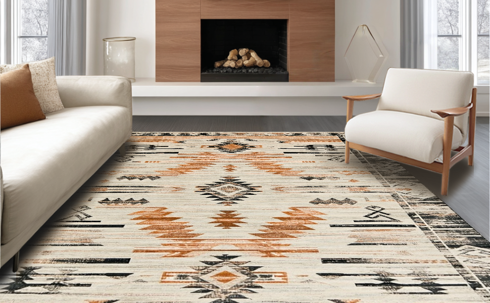 Ultra Soft Area Rug, Non Slip, Stain Resistant, Washable Area Rugs for Living Room, Bedroom, Chic Southwestern Distressed Style(Beige) Overview: