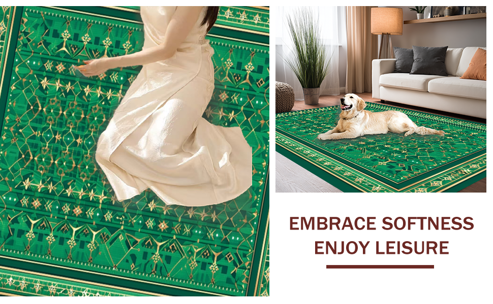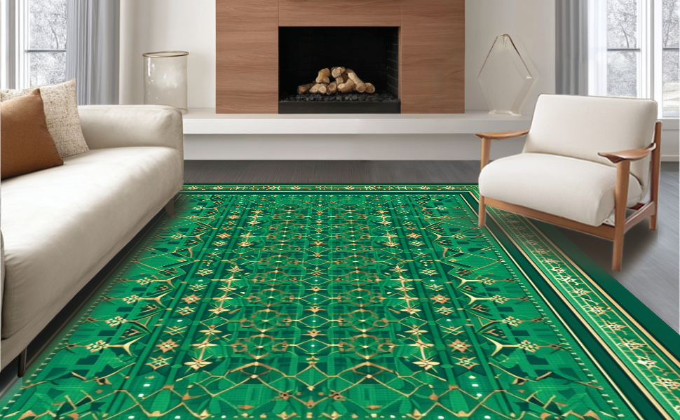 Ultra Soft Area Rug, Non Slip, Stain Resistant, Washable Area Rugs for Living Room, Bedroom, Chic Striped Color Block(Green) Overview: