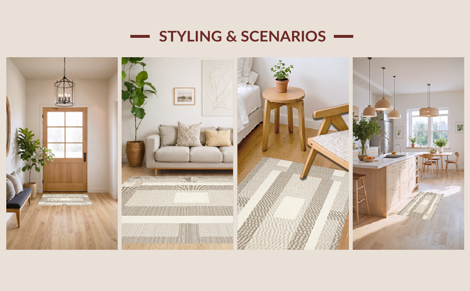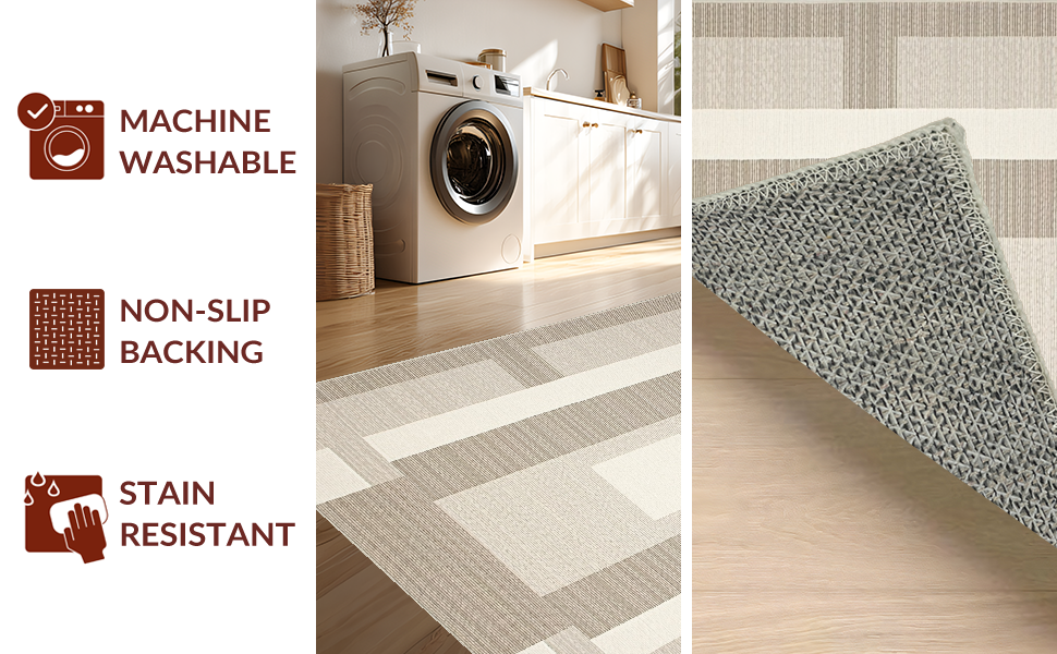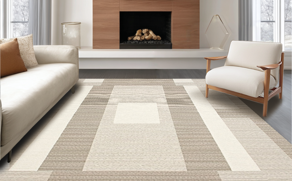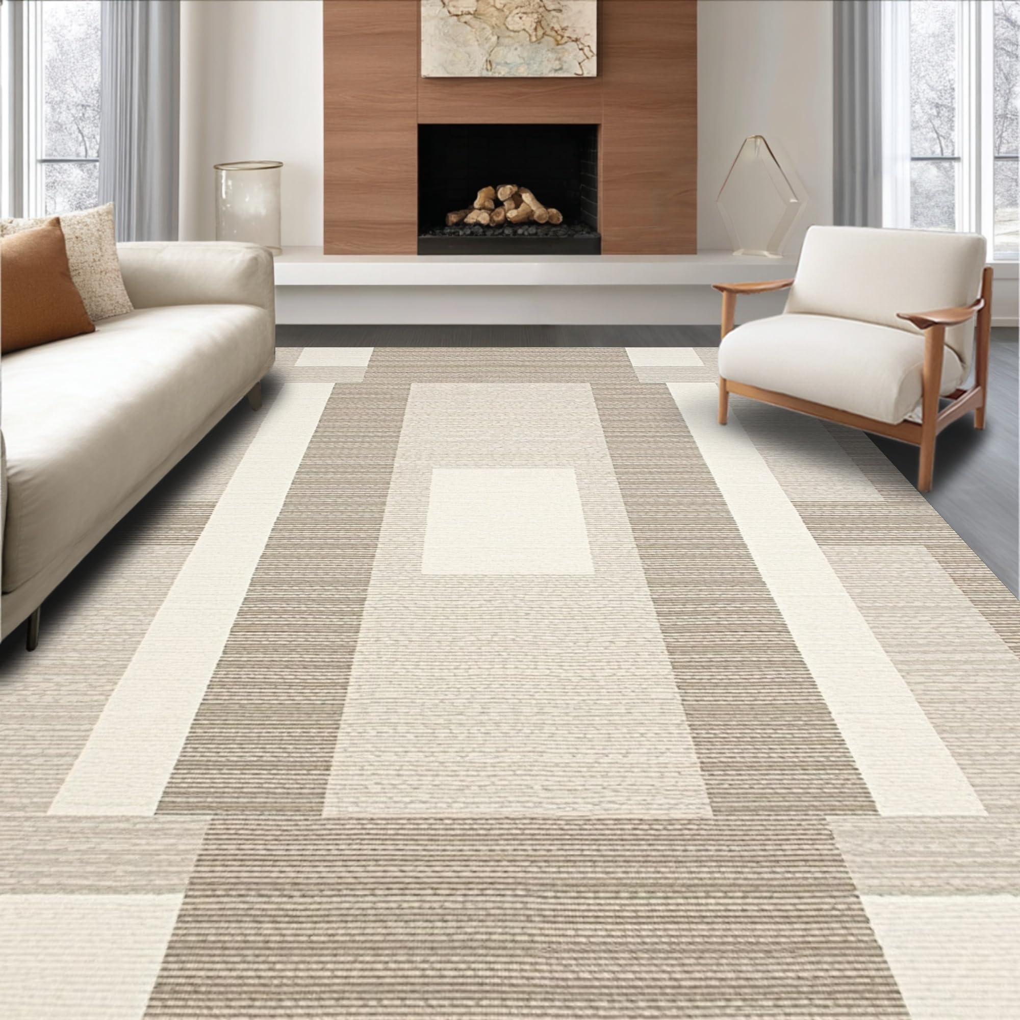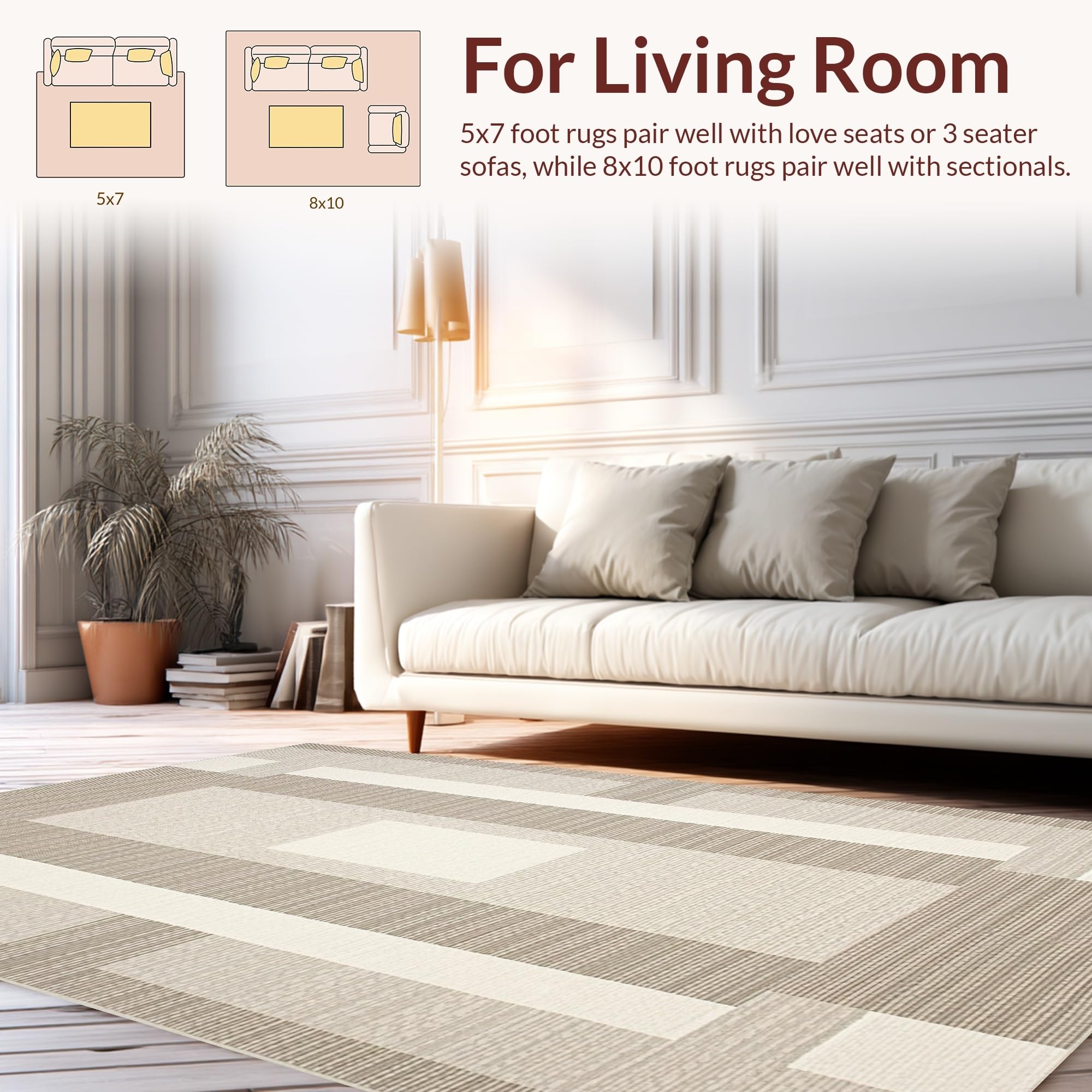 Ultra Soft Area Rug, Non Slip, Stain Resistant, Washable Area Rugs for Living Room, Bedroom, Chic Striped Modern Motif(Beige) Overview: