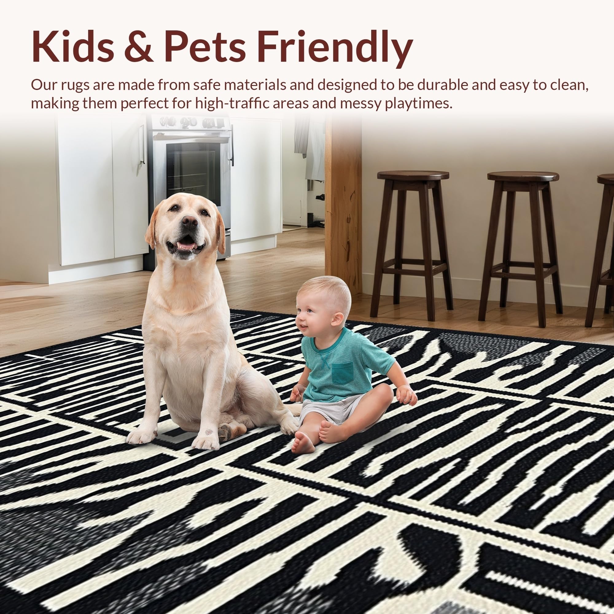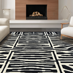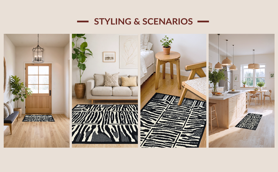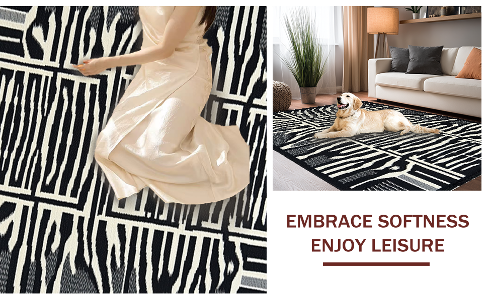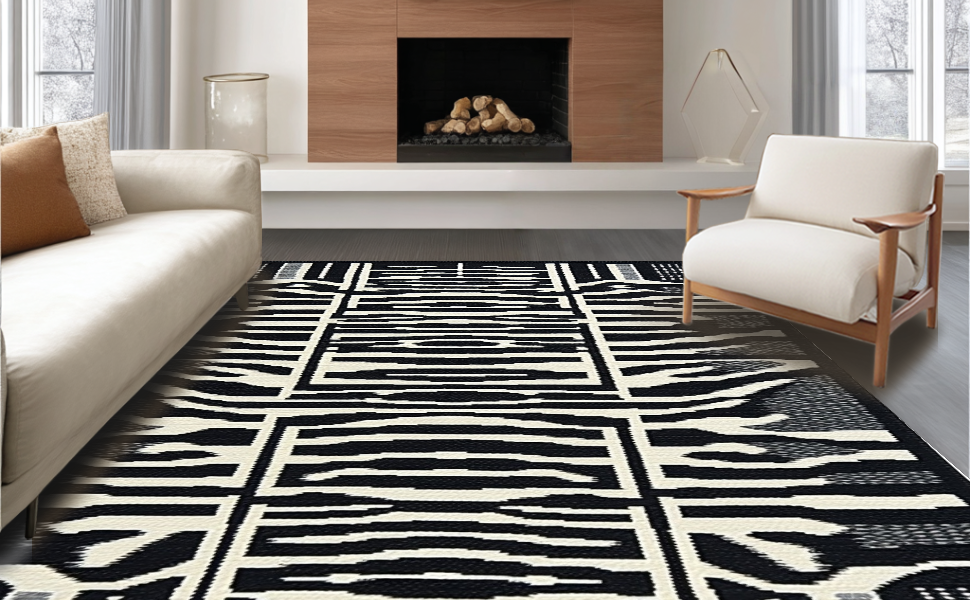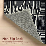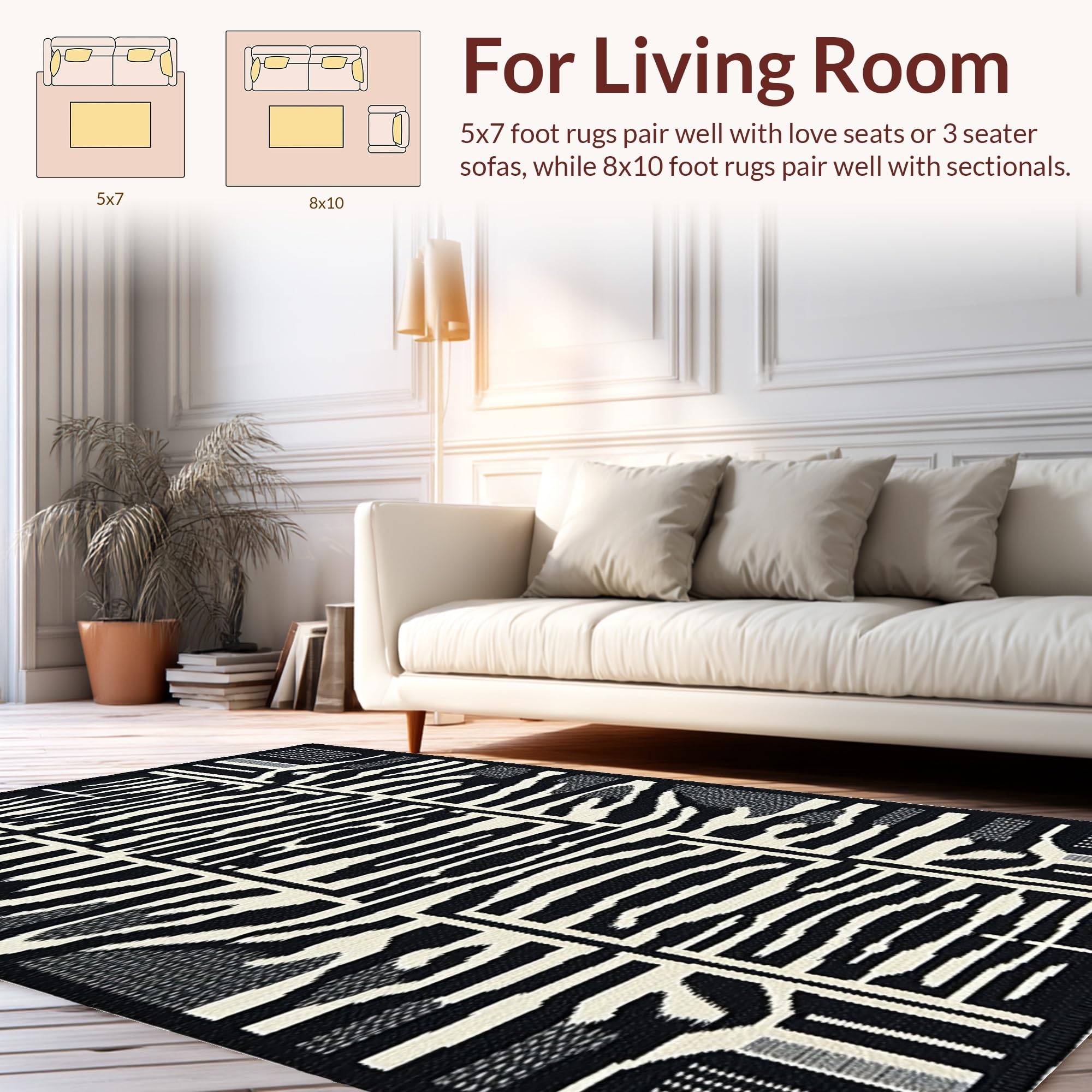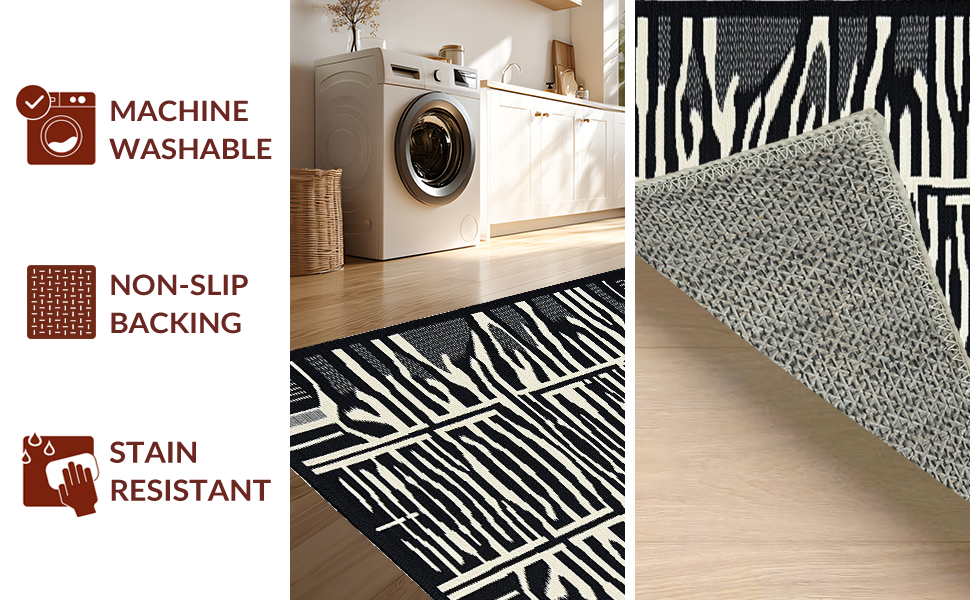 Ultra Soft Area Rug, Non Slip, Stain Resistant, Washable Area Rugs for Living Room, Bedroom, Chic Striped Monochrome Aesthetic(Black) Overview: