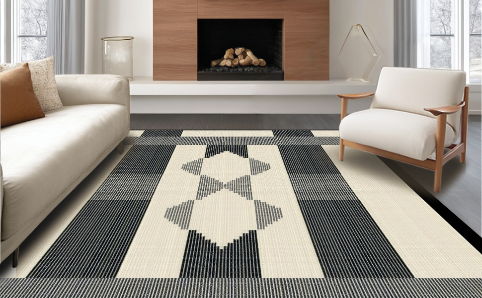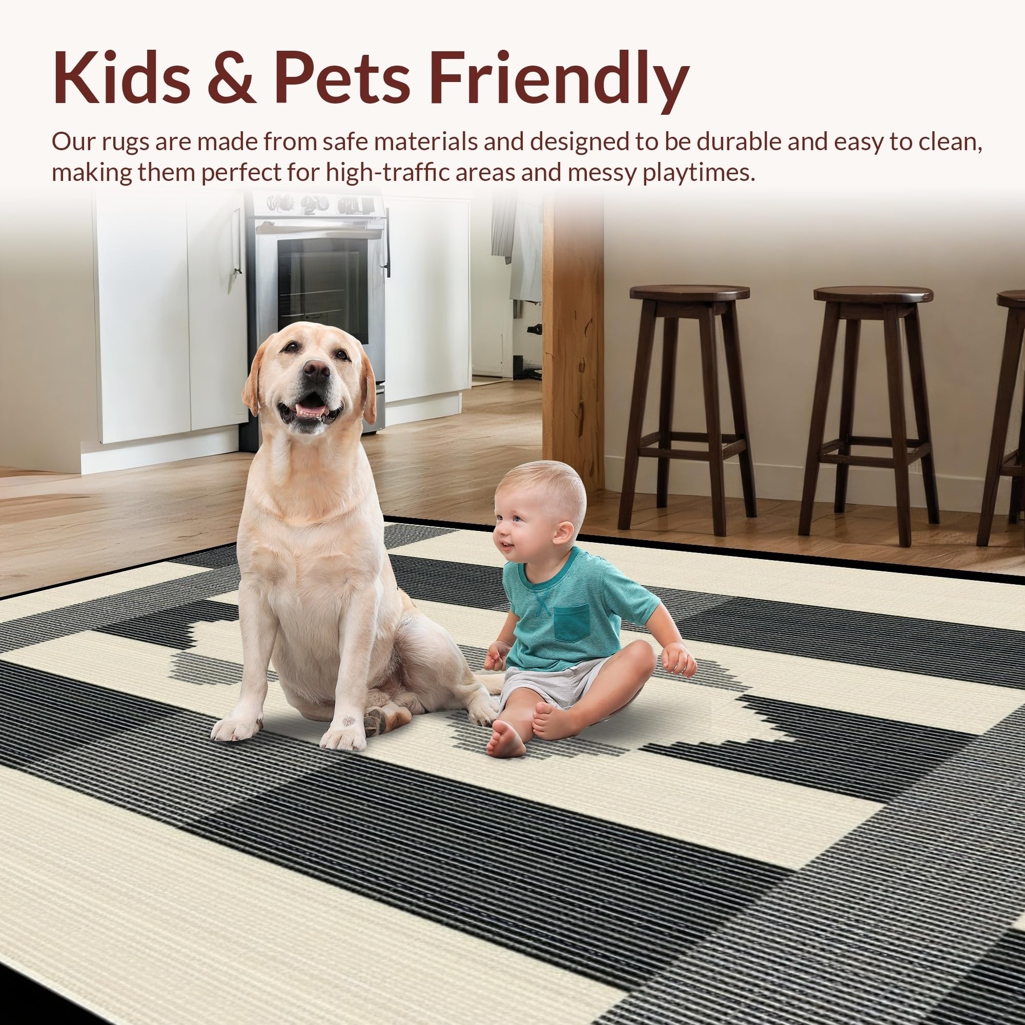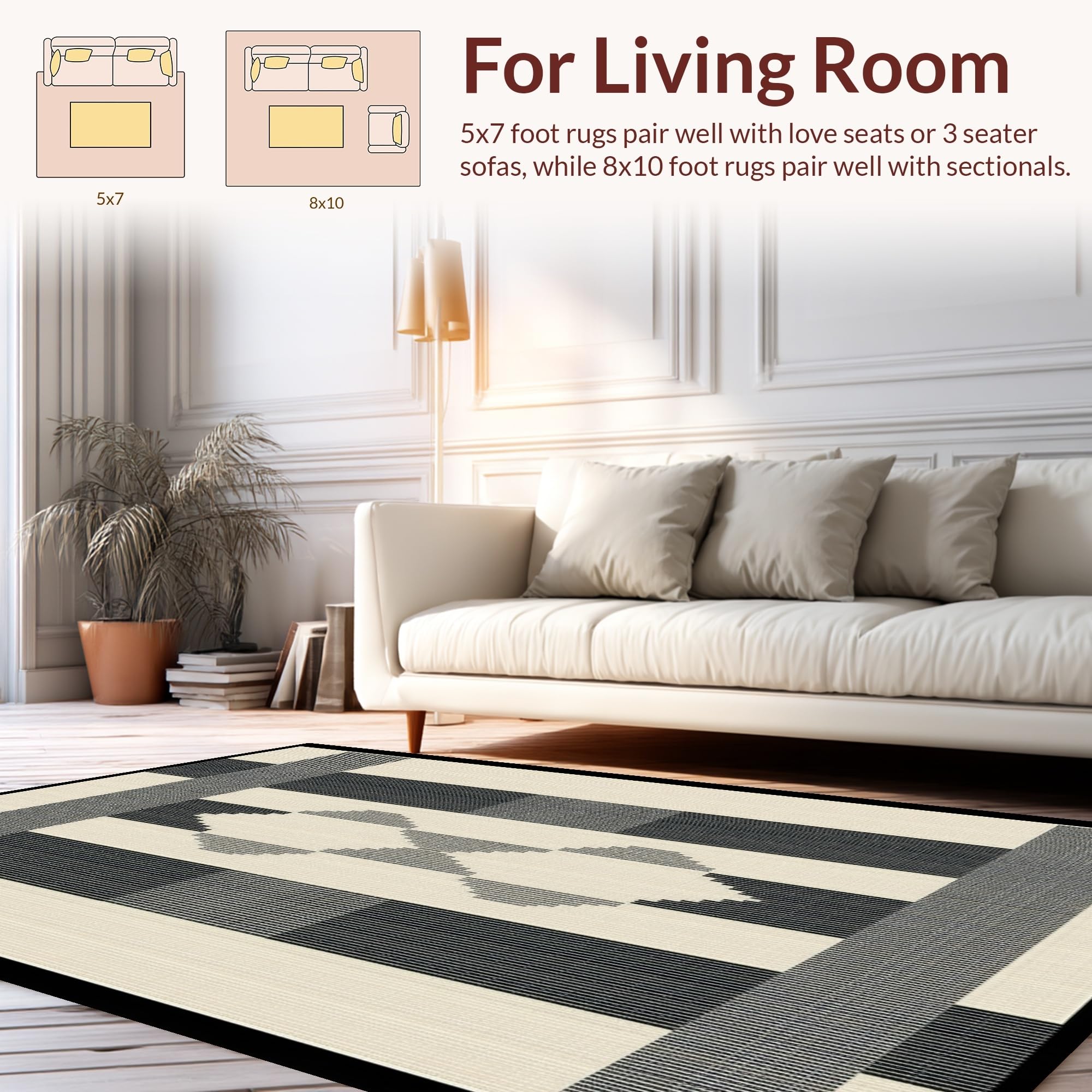 Ultra Soft Area Rug, Non Slip, Stain Resistant, Washable Area Rugs for Living Room, Bedroom, Chic Striped Trellis Motif(Beige) Overview:
