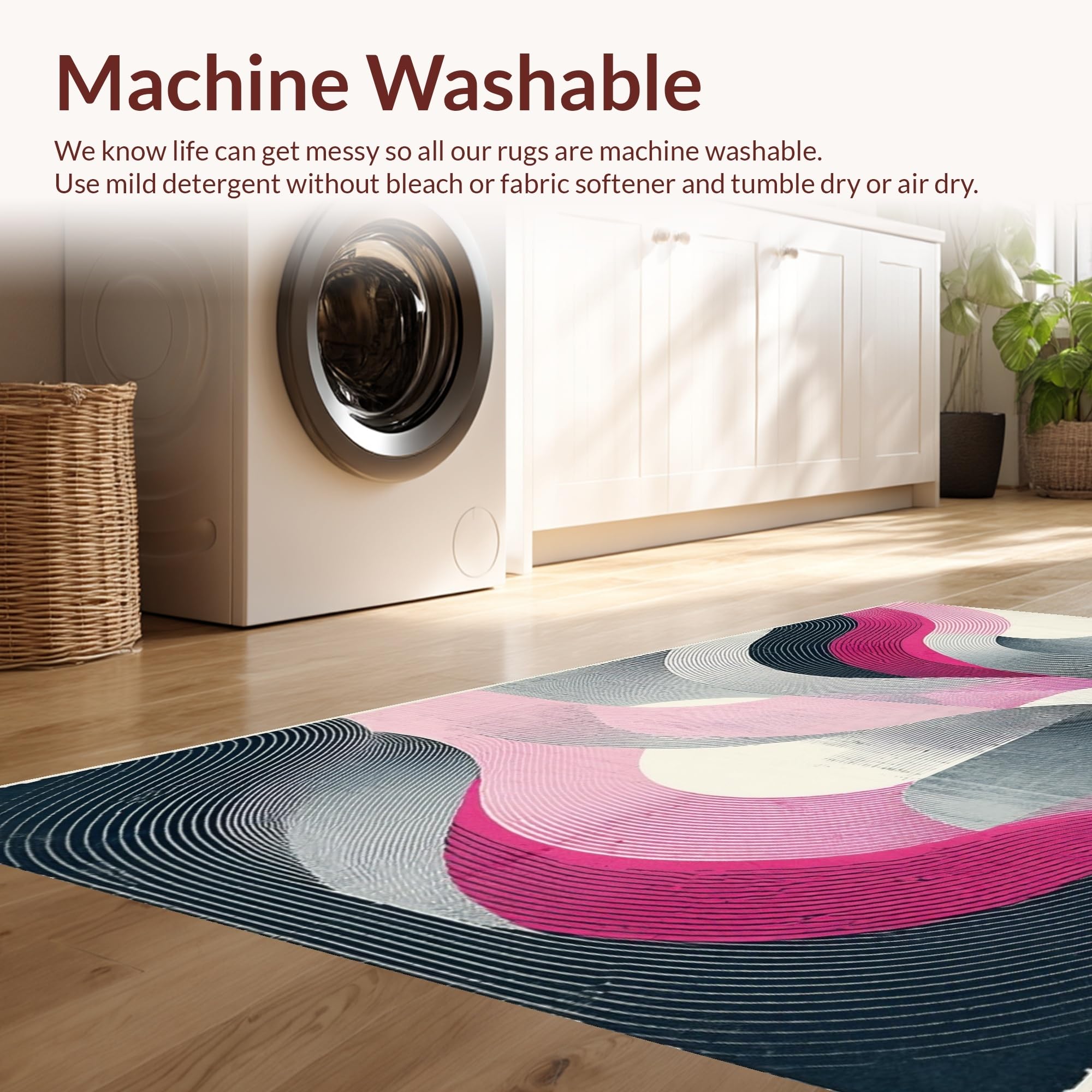 - Machine Washable: Our rugs can be easily thrown in the wash machine.