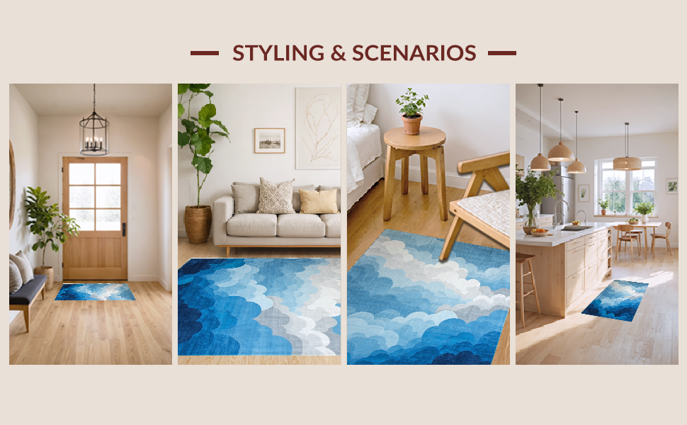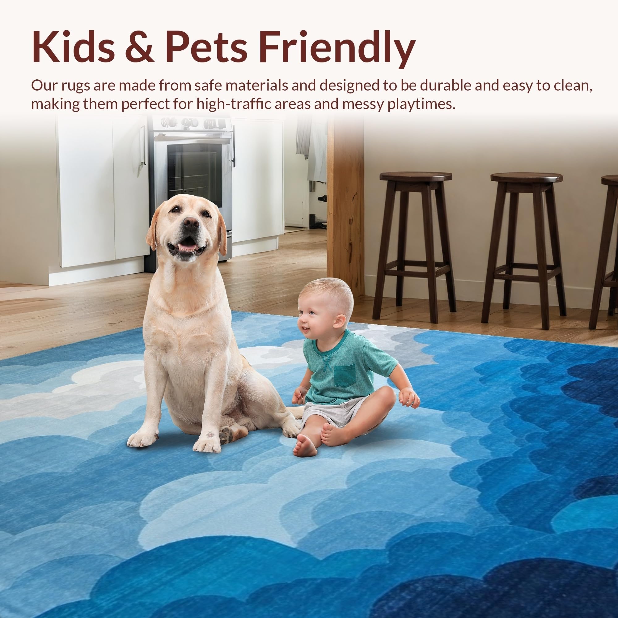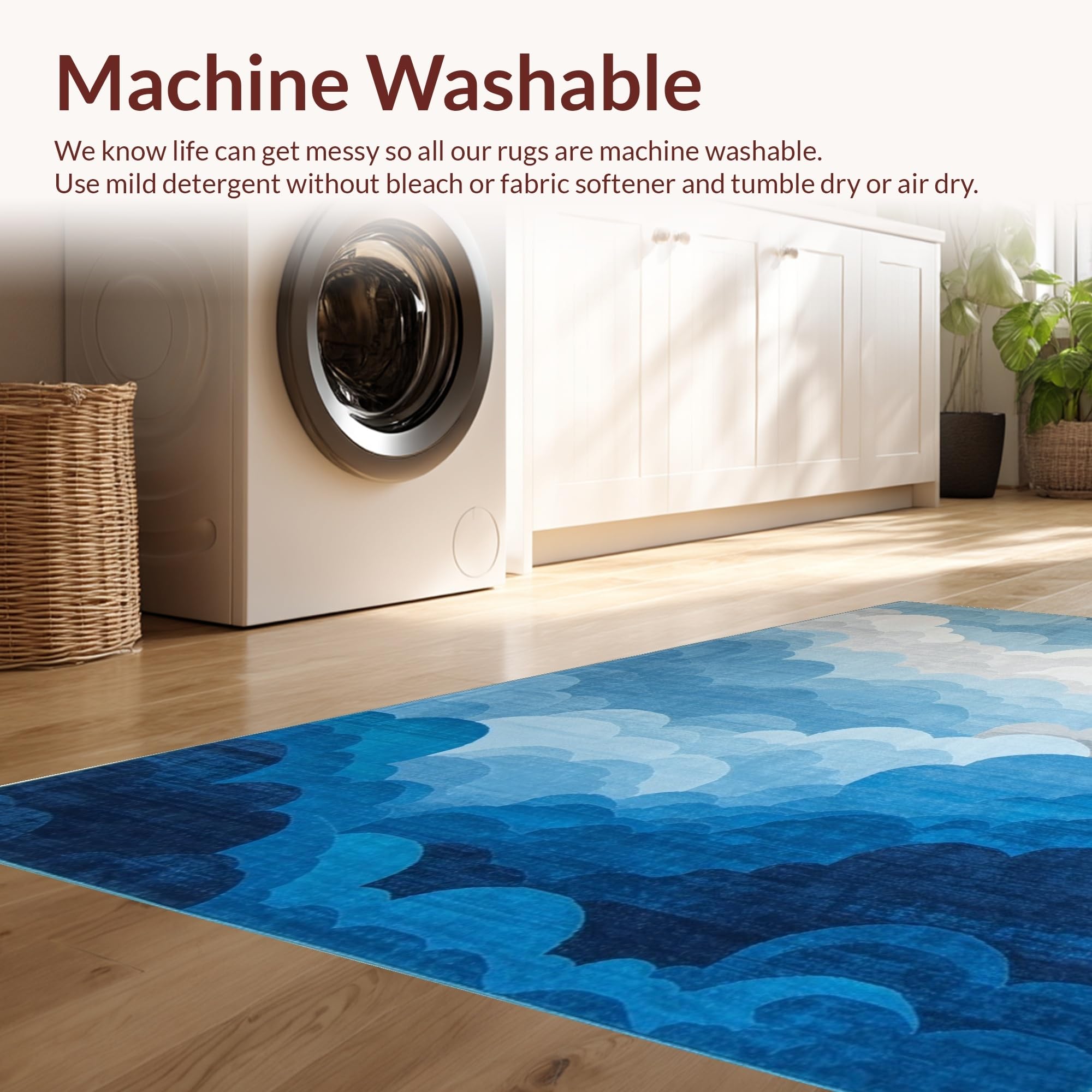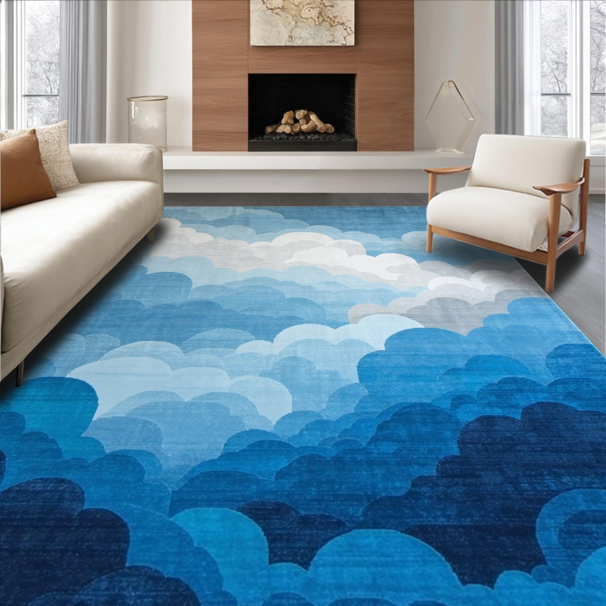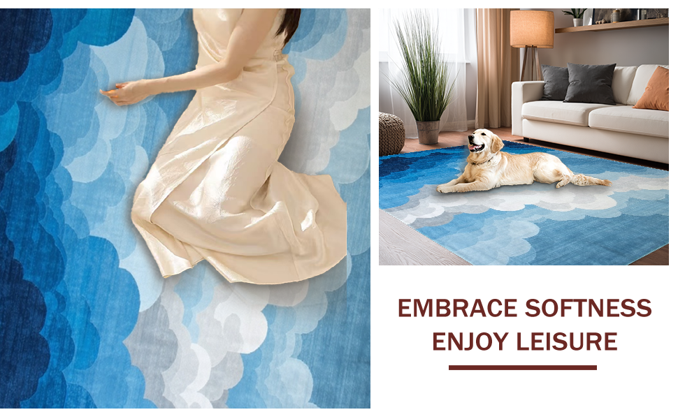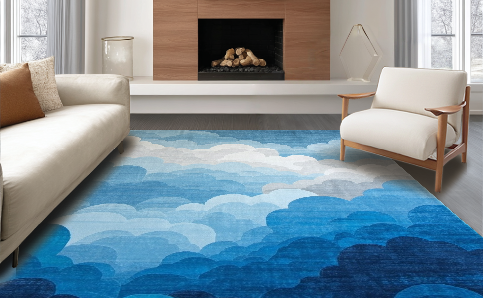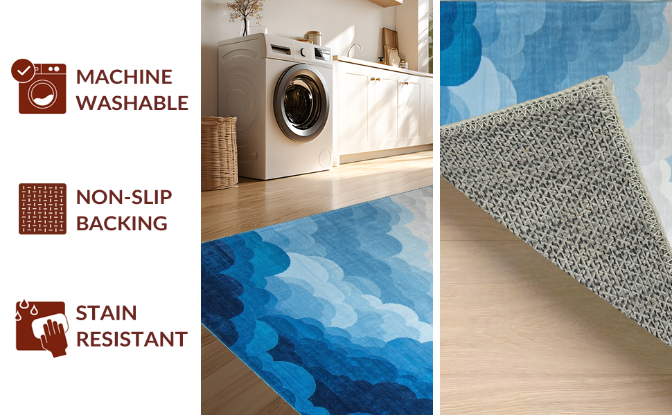 Ultra Soft Area Rug, Non Slip, Stain Resistant, Washable Area Rugs for Living Room, Bedroom, Chic Subtle Gradient Effect(Blue) Overview: