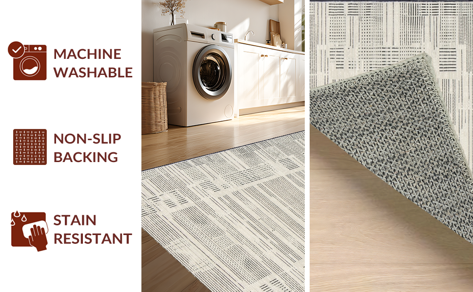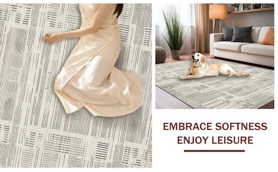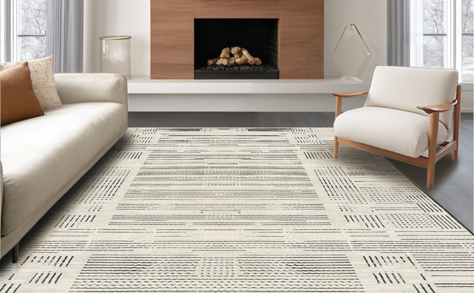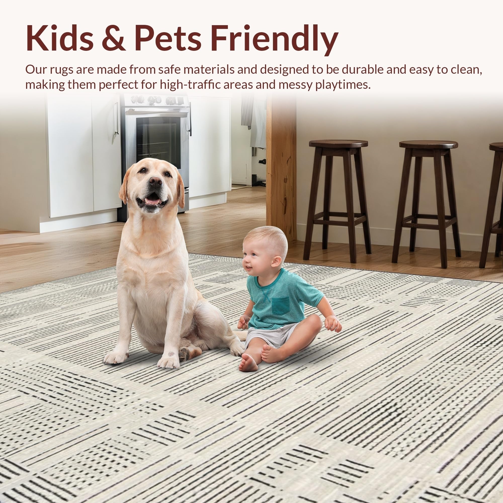 Ultra Soft Area Rug, Non Slip, Stain Resistant, Washable Area Rugs for Living Room, Bedroom, Chic Subtle Tiled Design Elements(Beige) Overview: