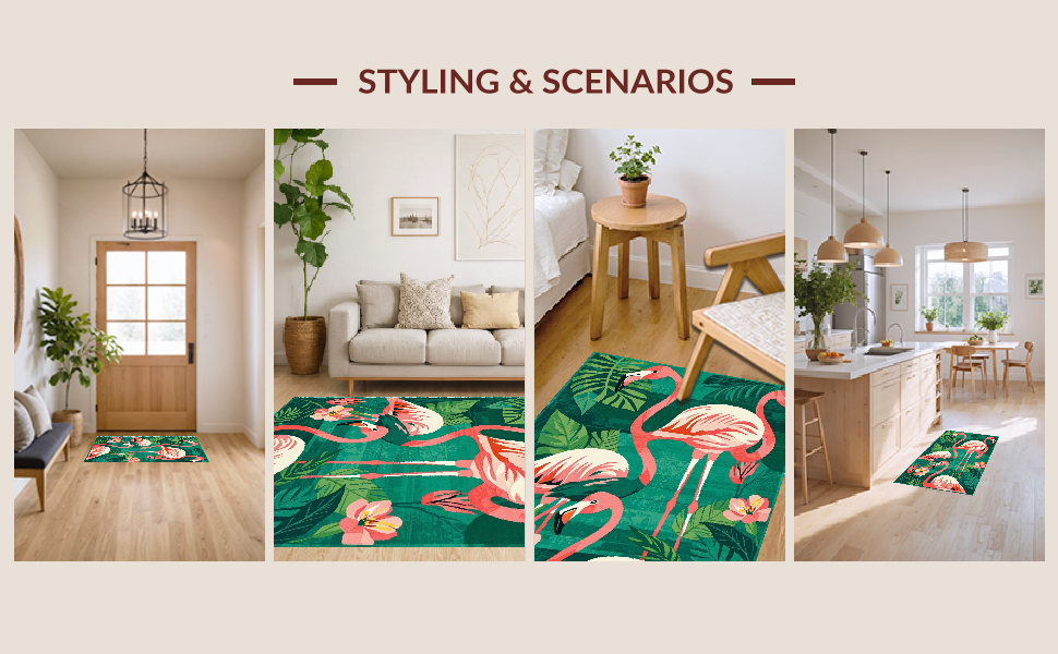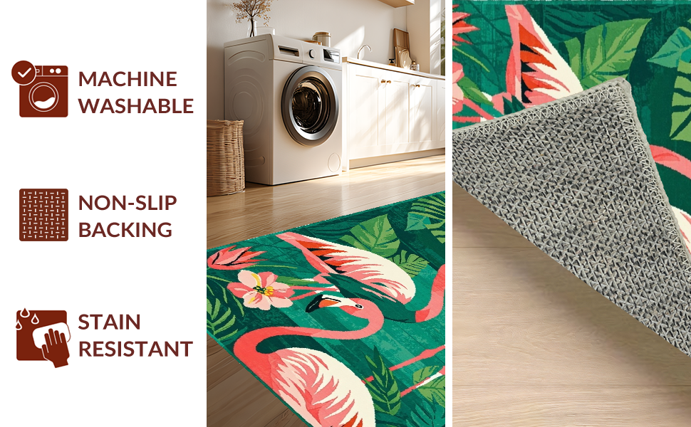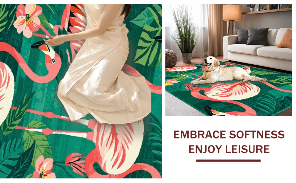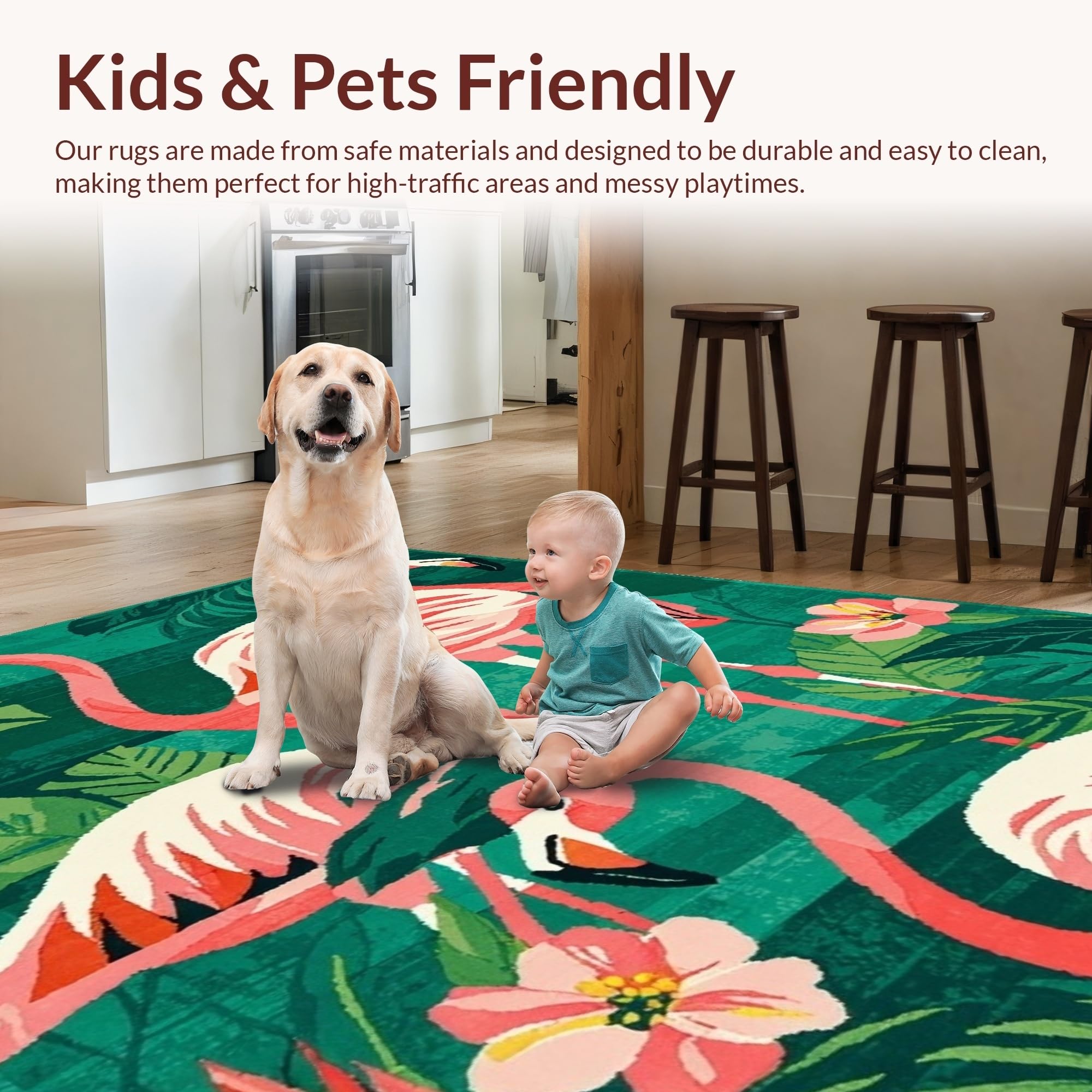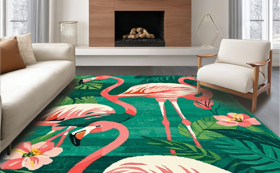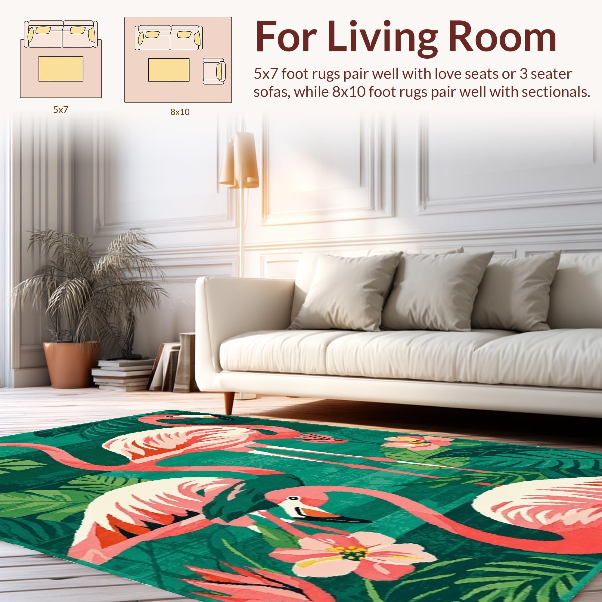 Ultra Soft Area Rug, Non Slip, Stain Resistant, Washable Area Rugs for Living Room, Bedroom, Chic Summer Tropical Composition(Pink) Overview: