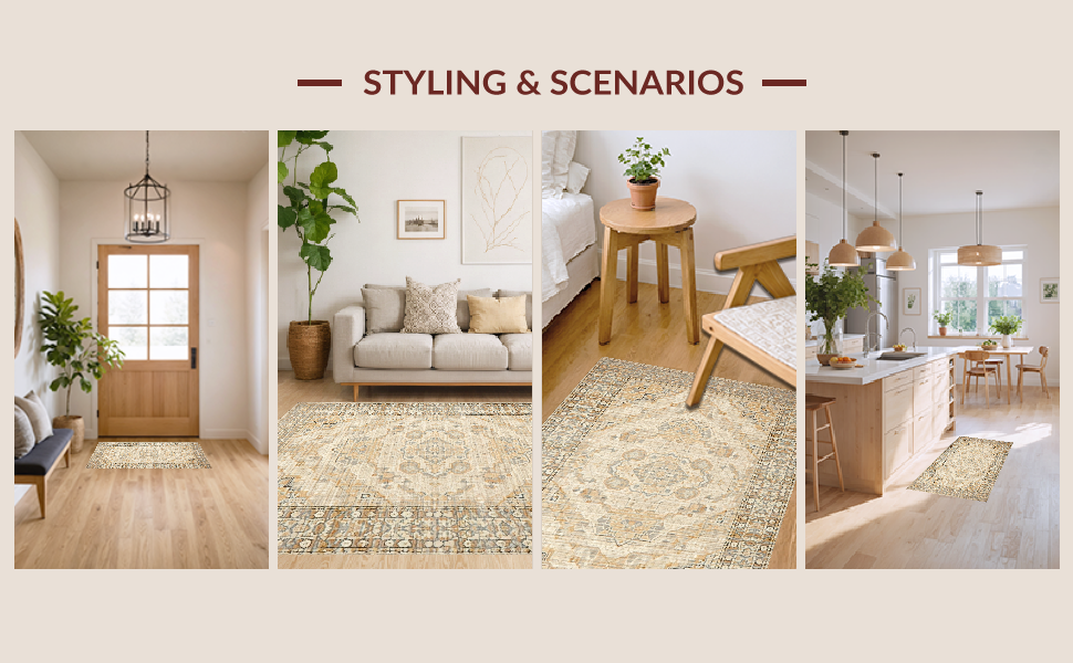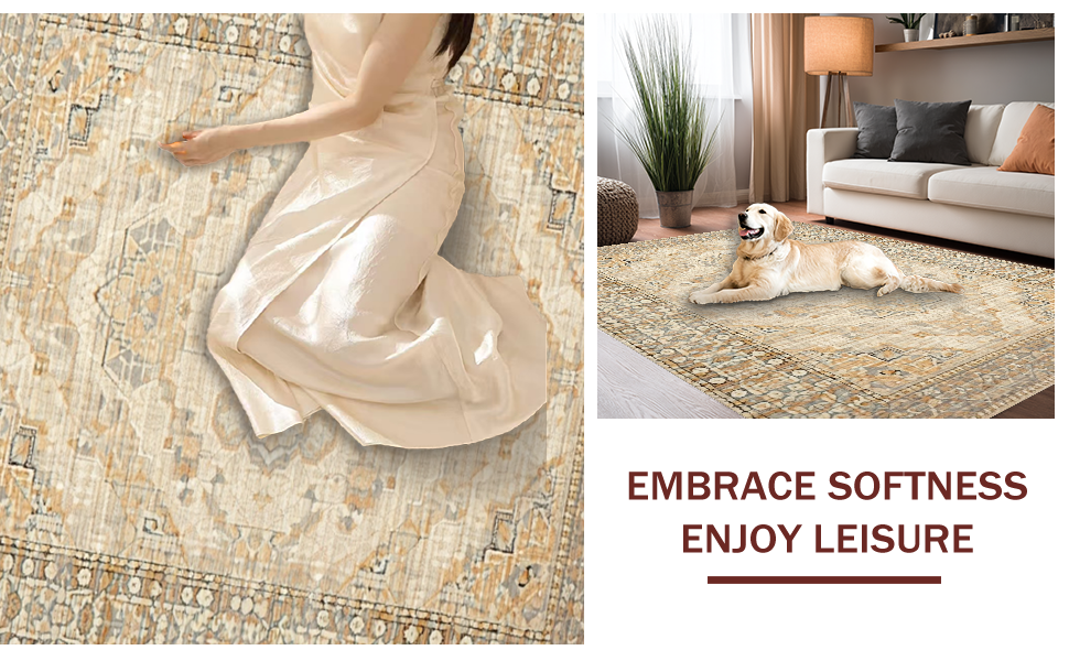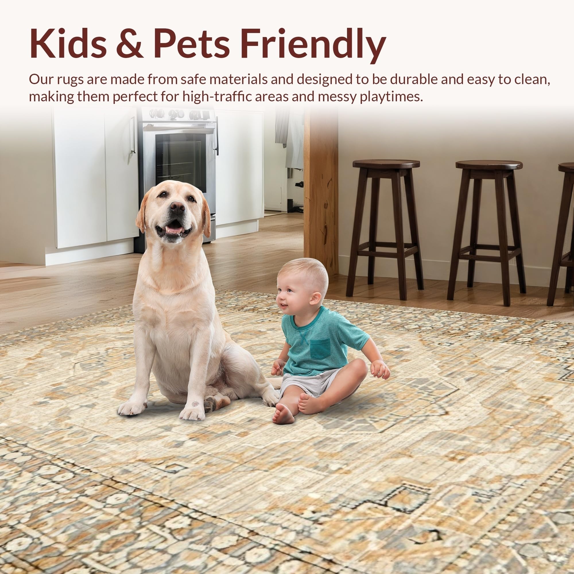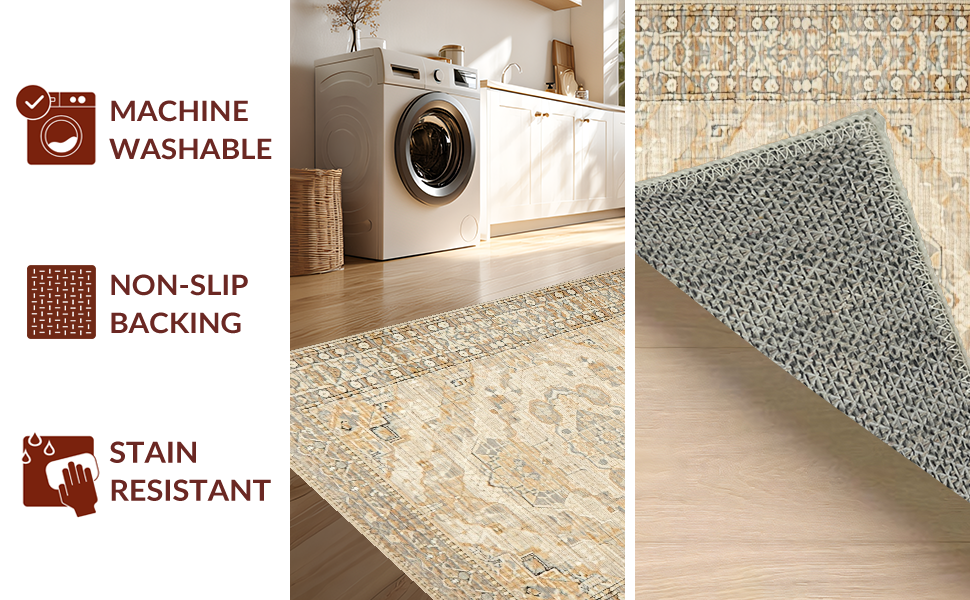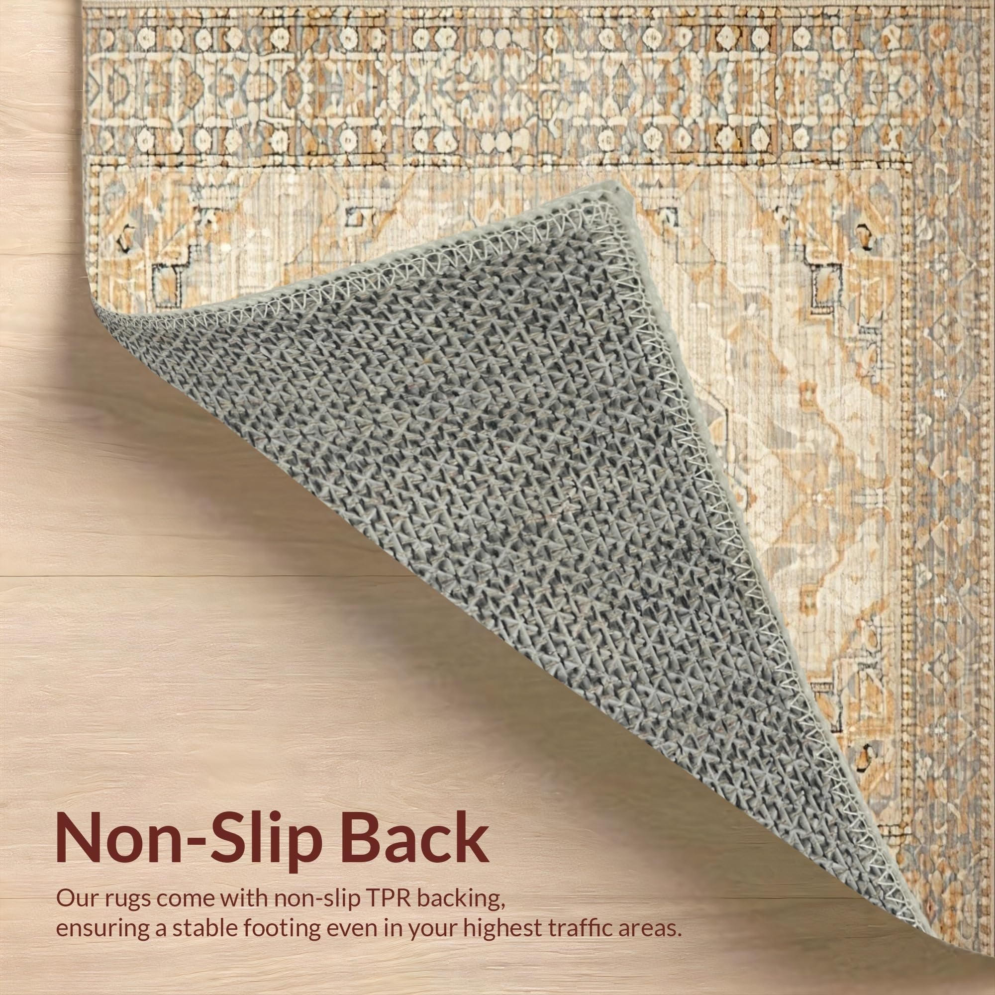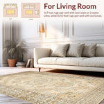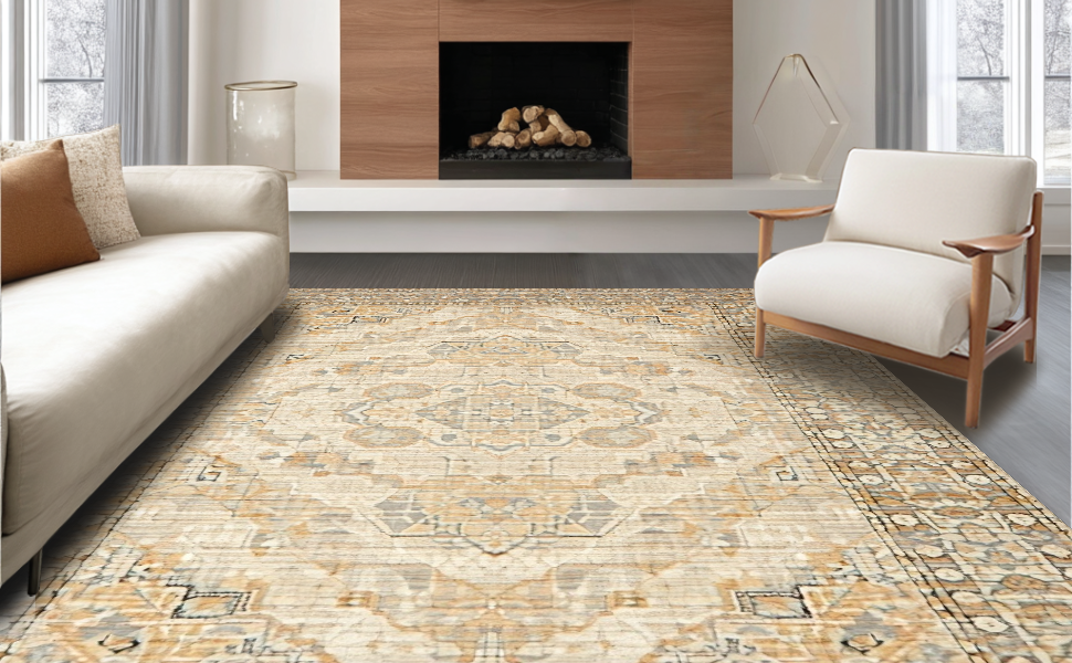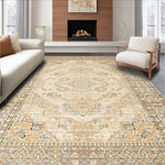 Ultra Soft Area Rug, Non Slip, Stain Resistant, Washable Area Rugs for Living Room, Bedroom, Chic Symmetrical Medallion Elements(Beige) Overview: