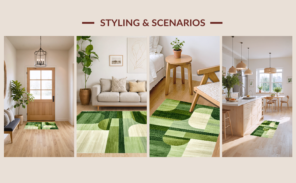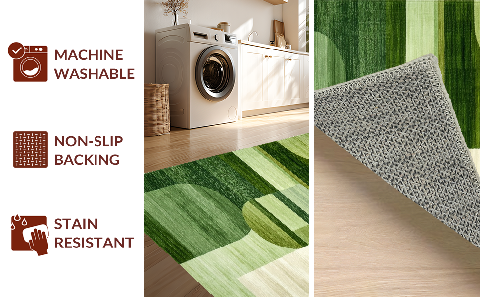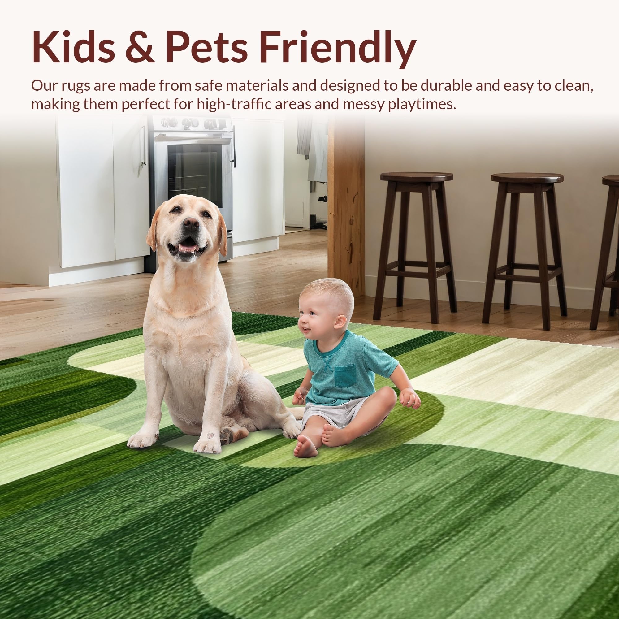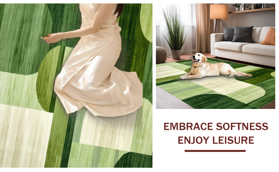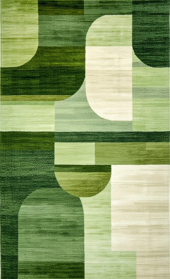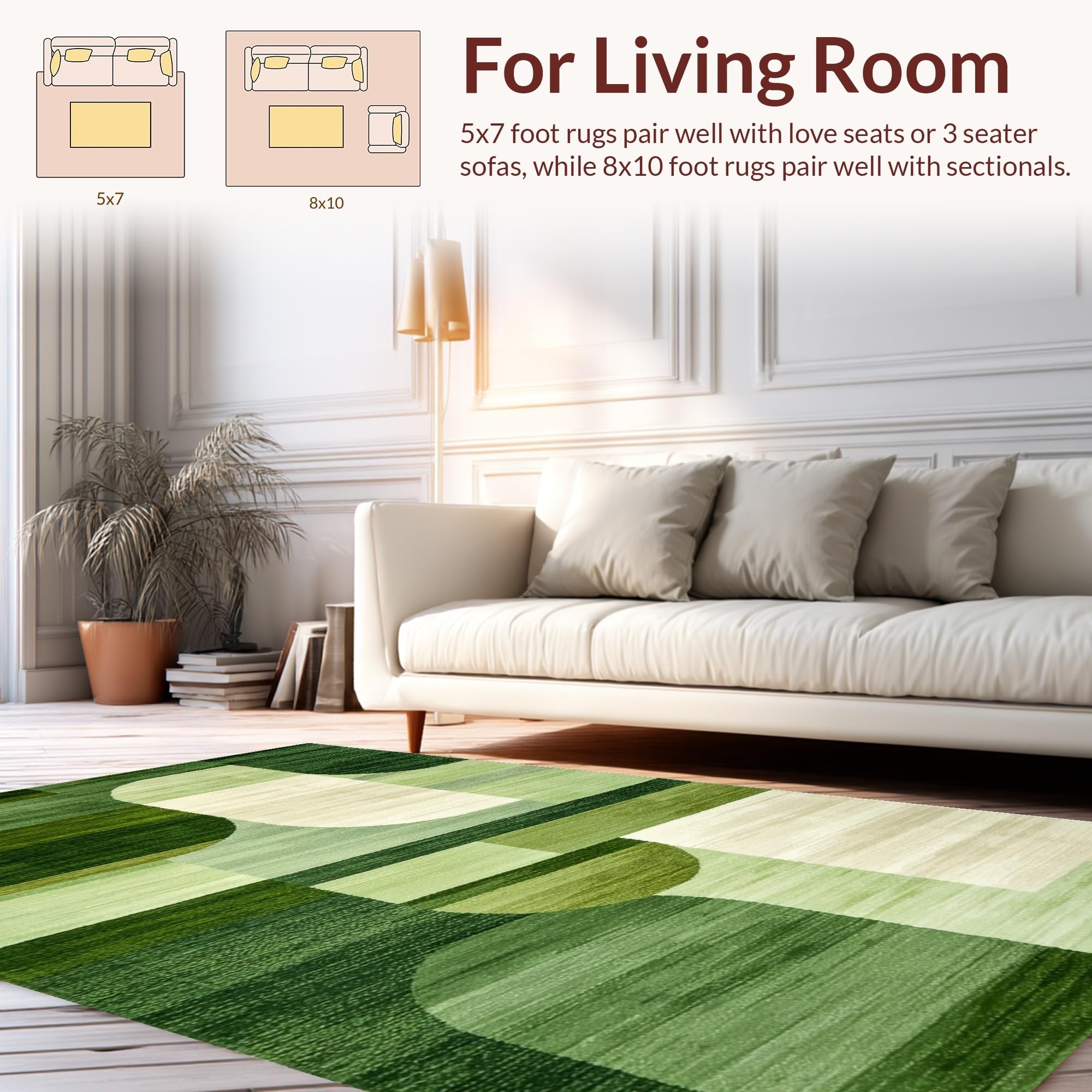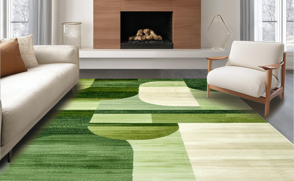 Ultra Soft Area Rug, Non Slip, Stain Resistant, Washable Area Rugs for Living Room, Bedroom, Chic Symmetrical Oceanic Lines(Green) Overview:
