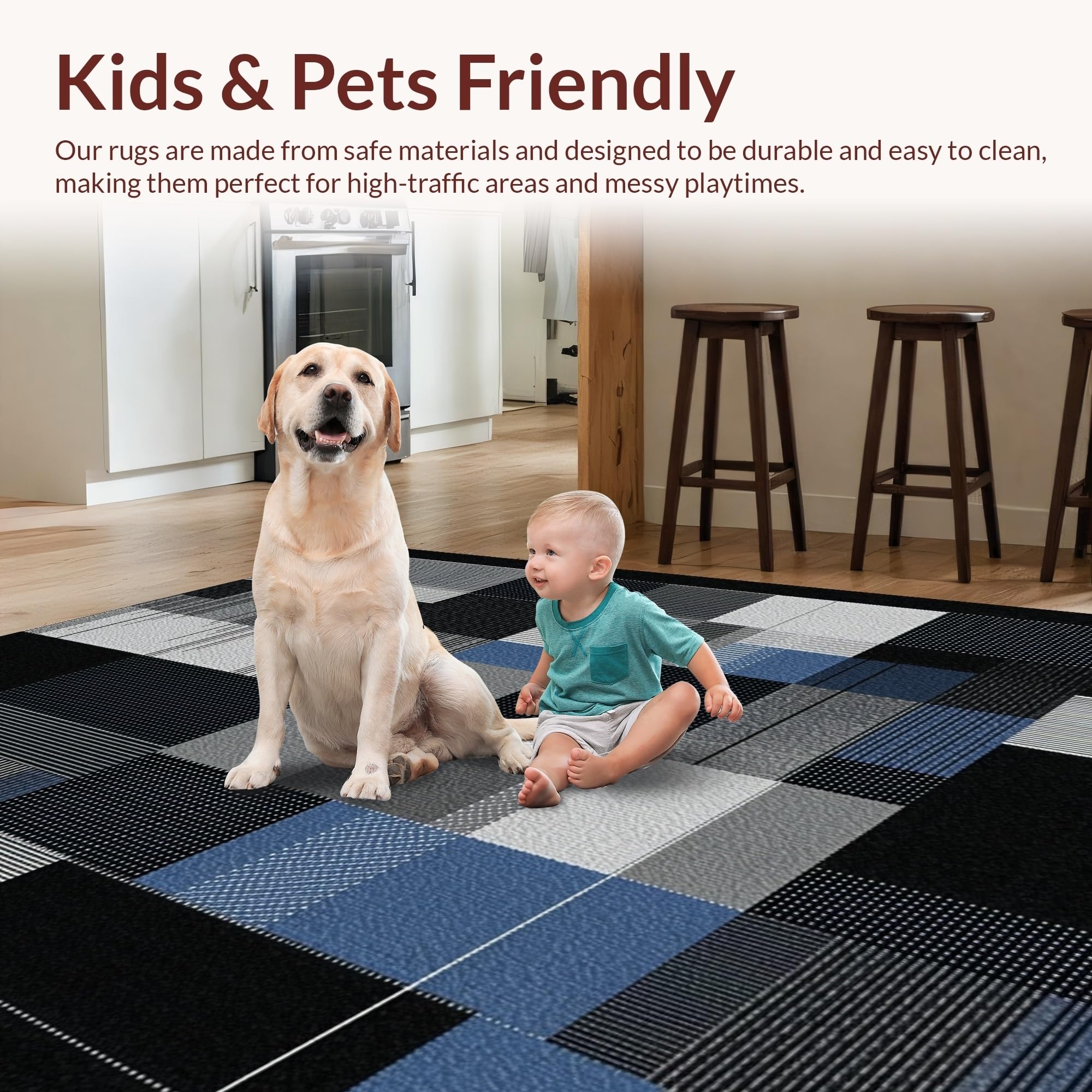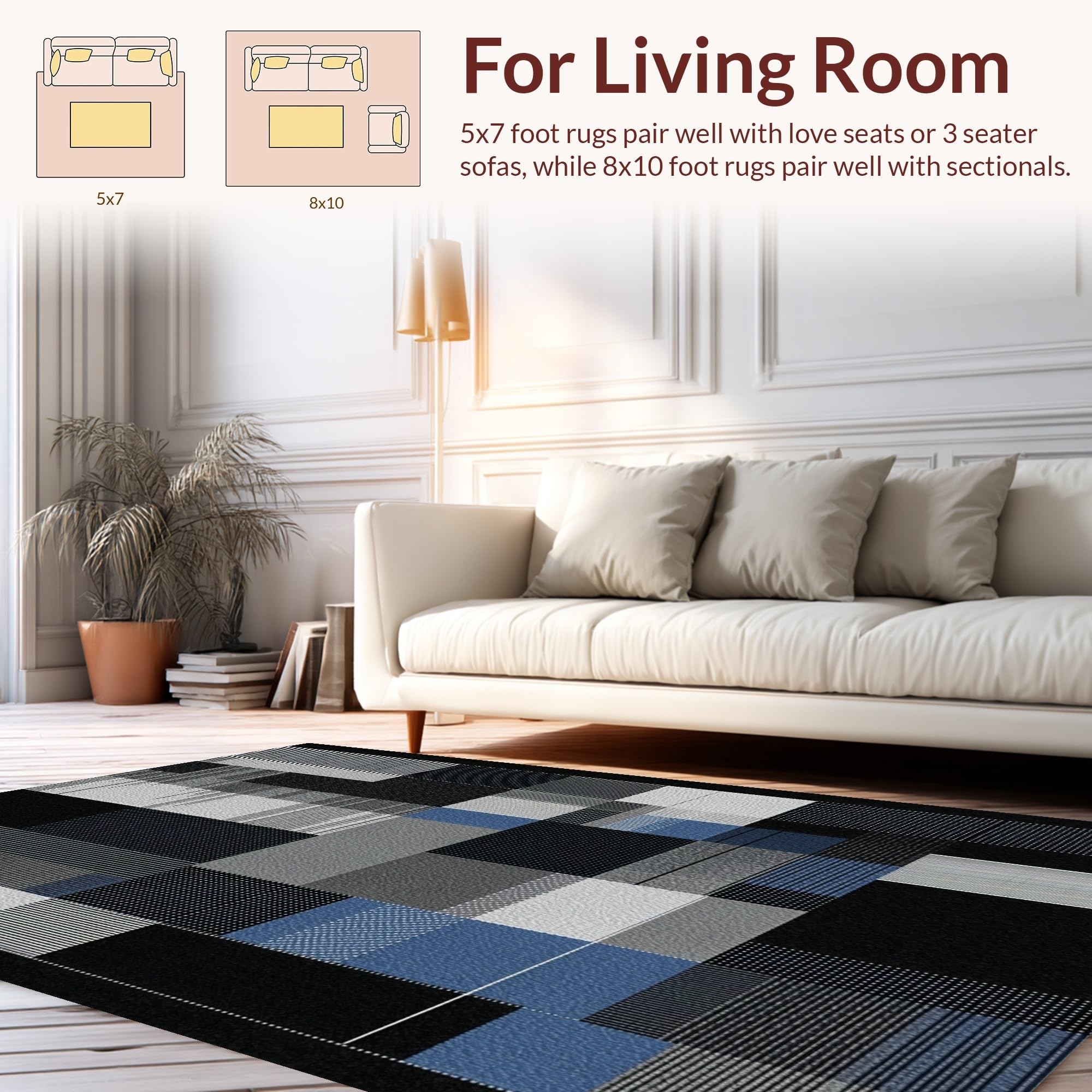 Ultra Soft Area Rug, Non Slip, Stain Resistant, Washable Area Rugs for Living Room, Bedroom, Chic Tech-Inspired Gaming Pattern(Black) Overview:
