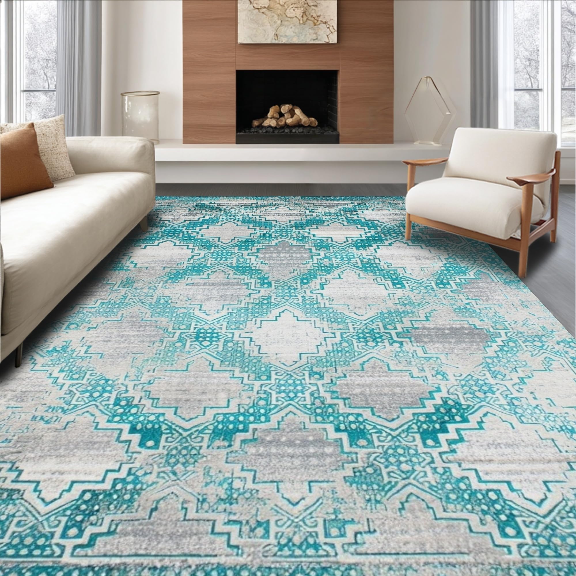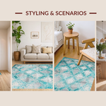 Ultra Soft Area Rug, Non Slip, Stain Resistant, Washable Area Rugs for Living Room, Bedroom, Chic Textured Coastal Color Palette(Green) Overview: