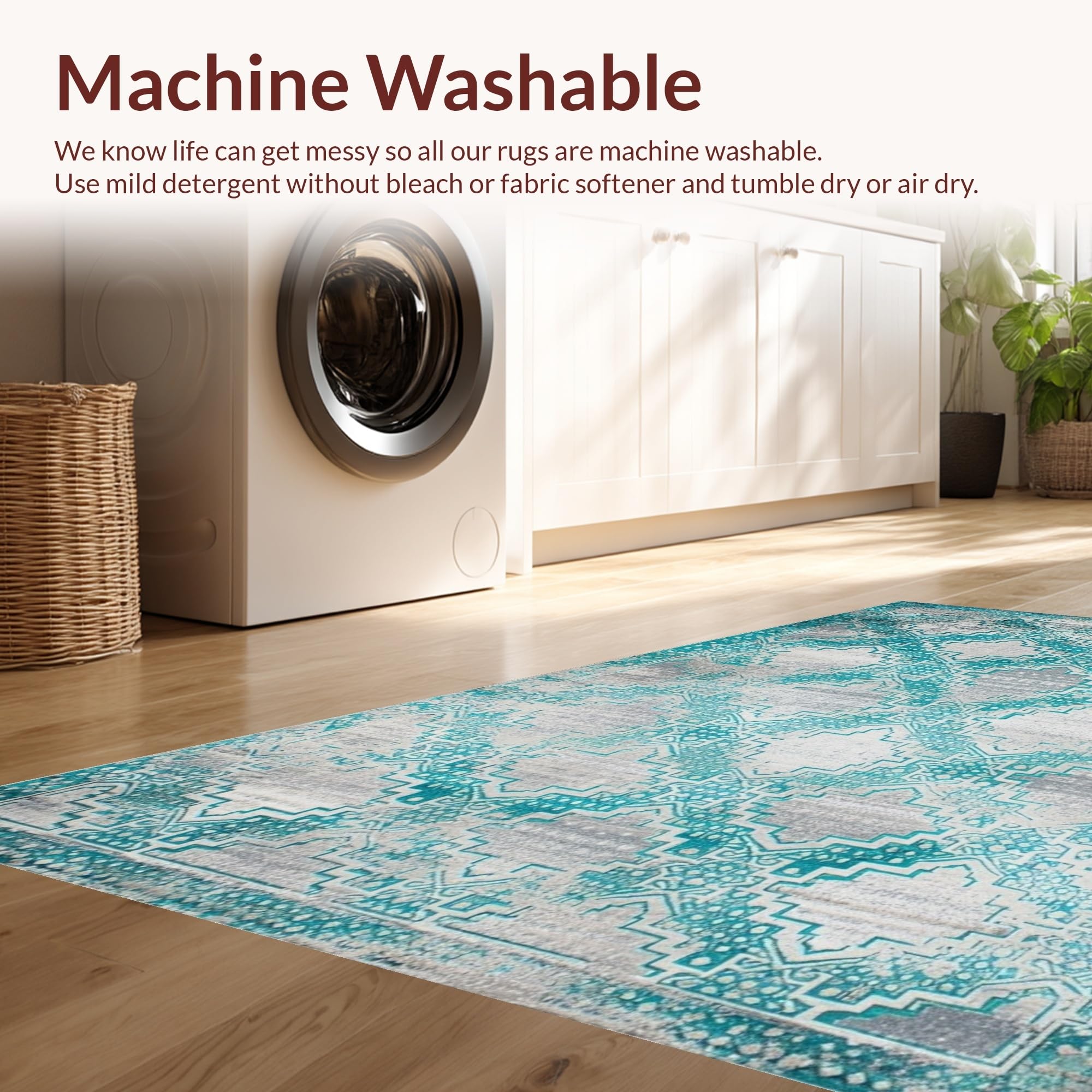 - Machine Washable: Our rugs can be easily thrown in the wash machine.
