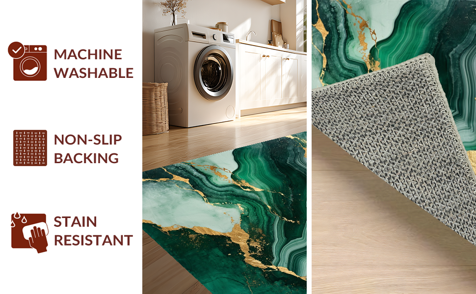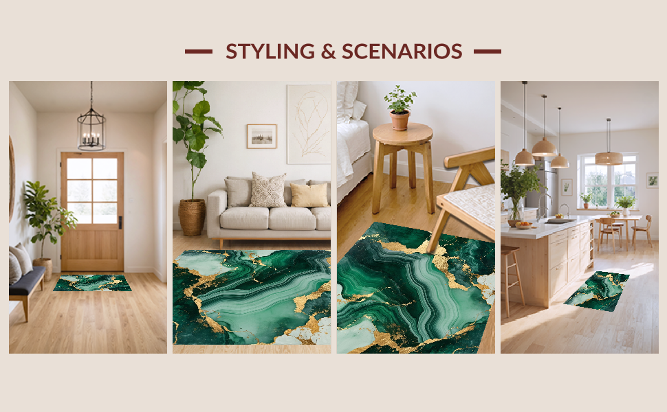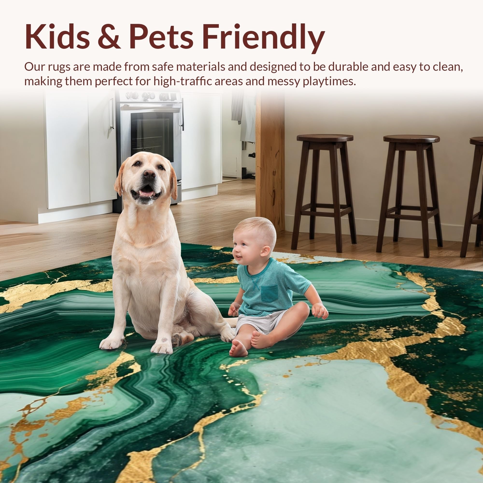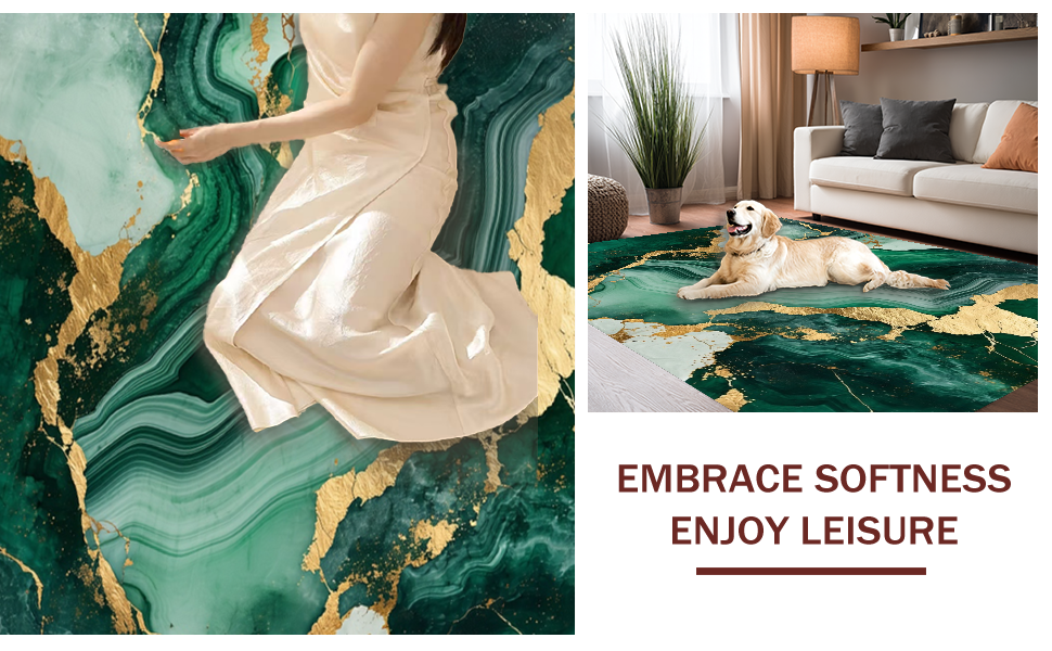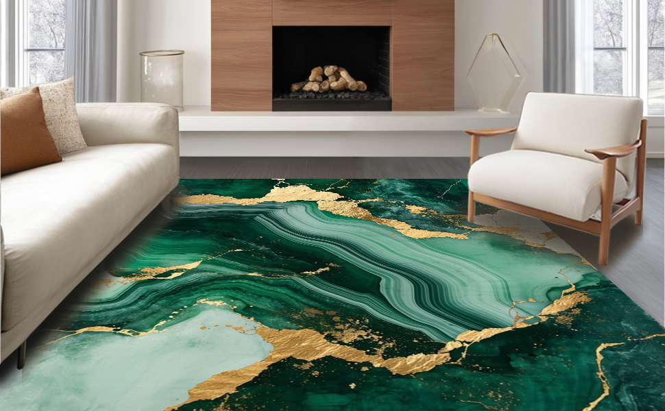 Ultra Soft Area Rug, Non Slip, Stain Resistant, Washable Area Rugs for Living Room, Bedroom, Chic Textured Marble Design Elements(Green) Overview:
