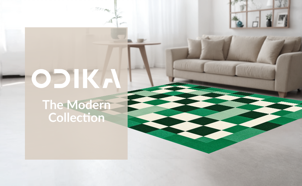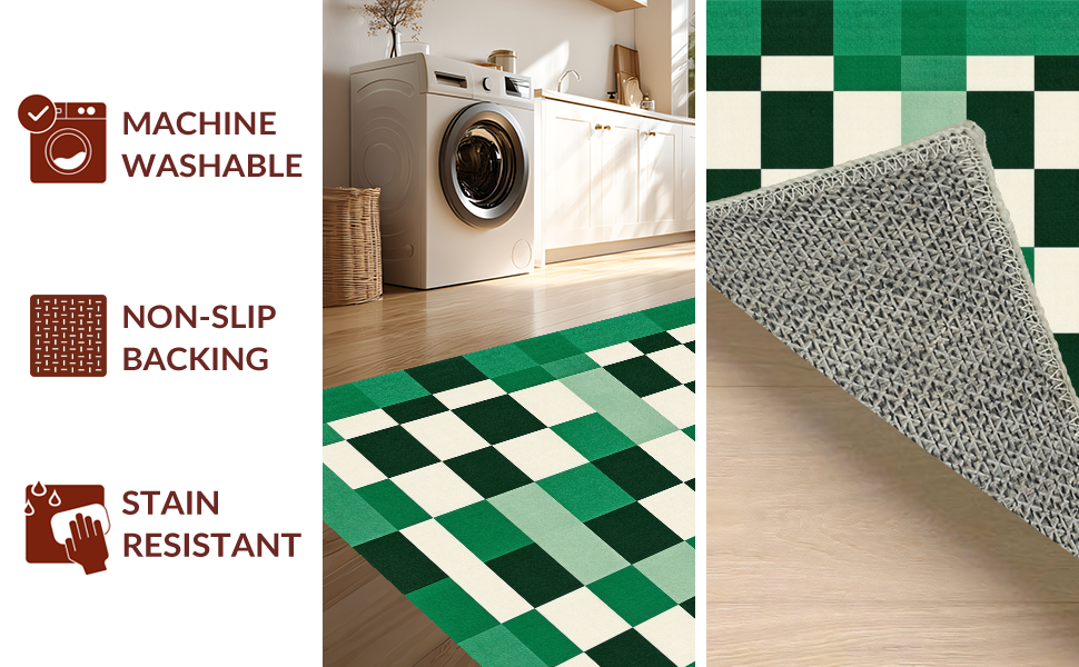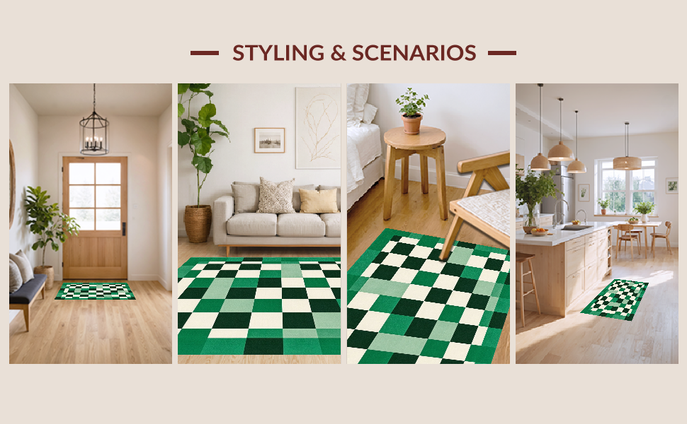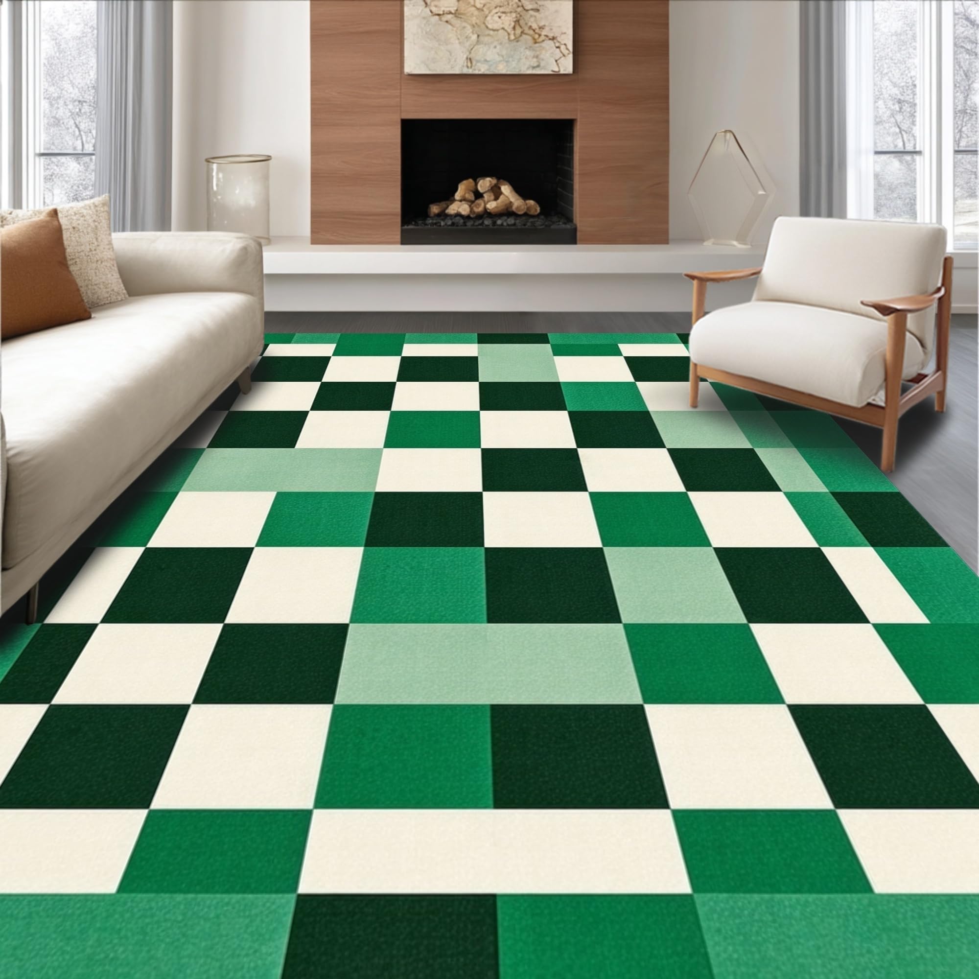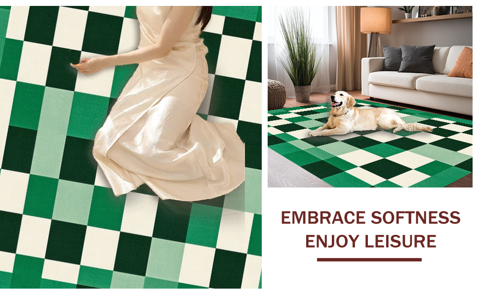 Ultra Soft Area Rug, Non Slip, Stain Resistant, Washable Area Rugs for Living Room, Bedroom, Chic Textured Retro Checker Motif(Green) Overview: