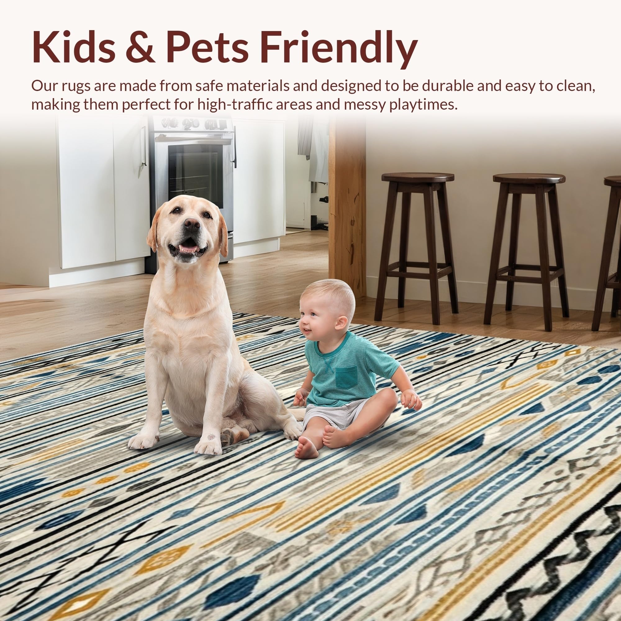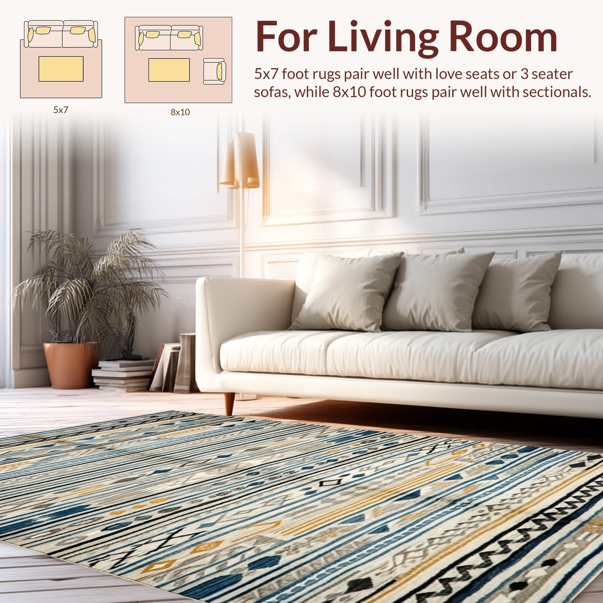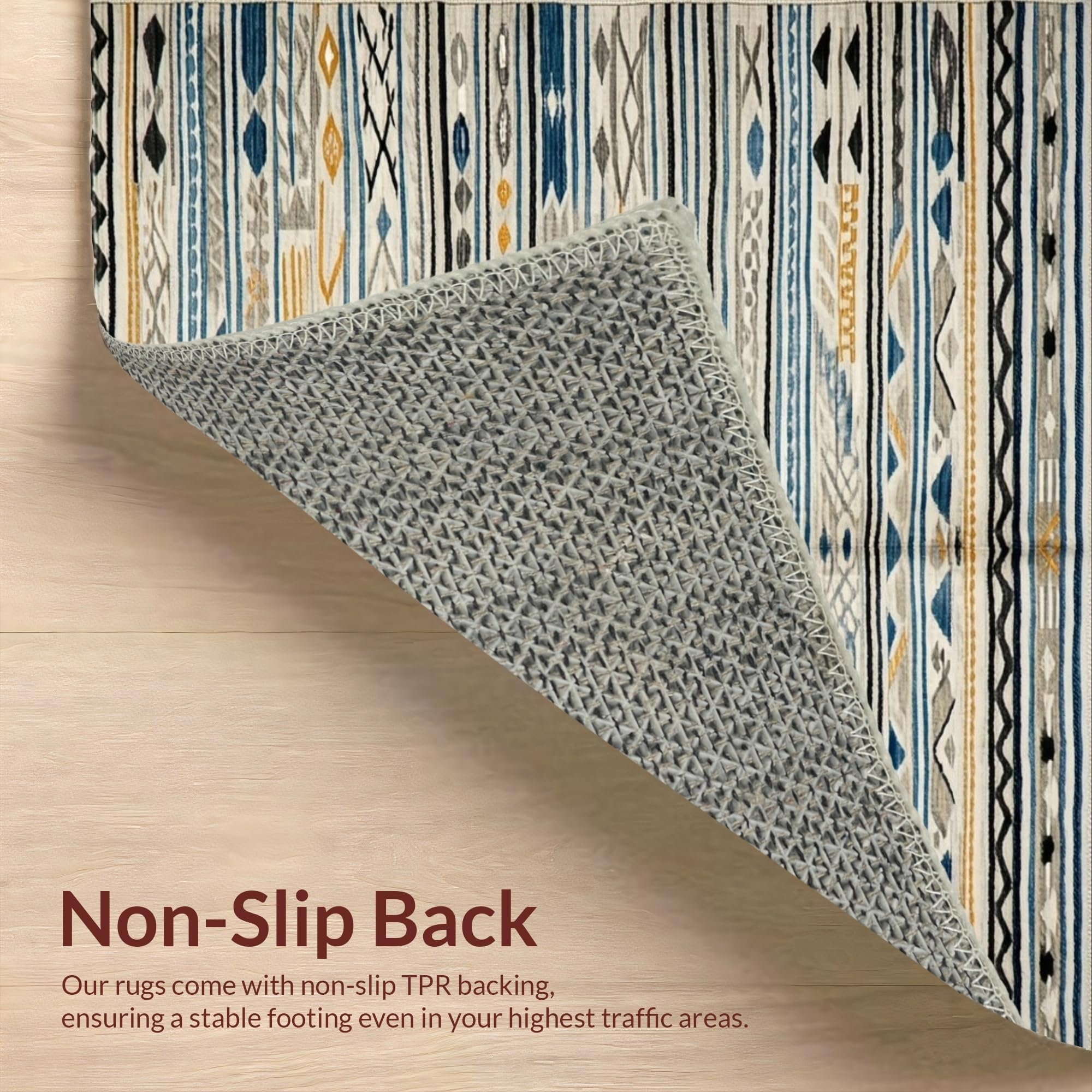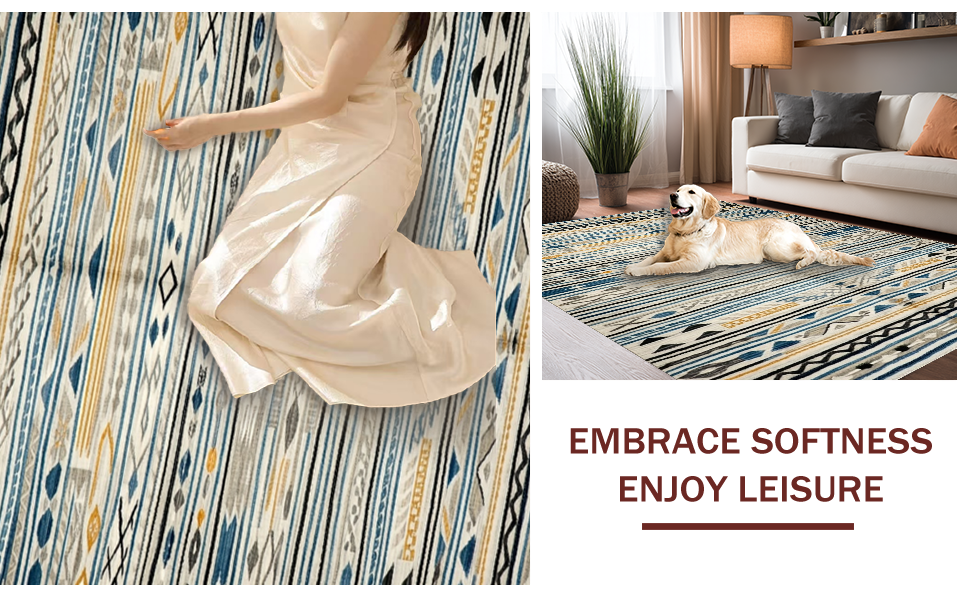 Ultra Soft Area Rug, Non Slip, Stain Resistant, Washable Area Rugs for Living Room, Bedroom, Chic Textured Symmetrical Pattern(Blue) Overview: