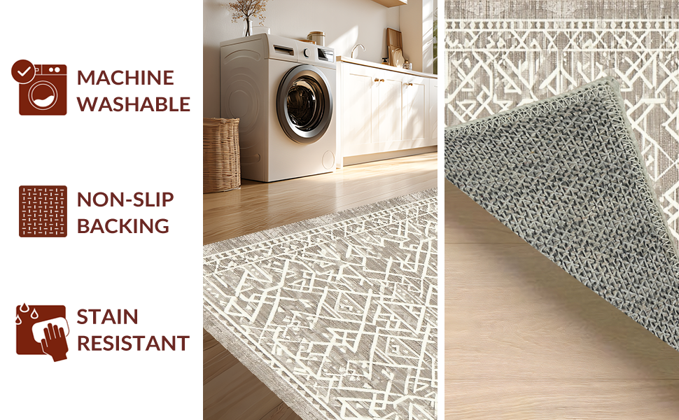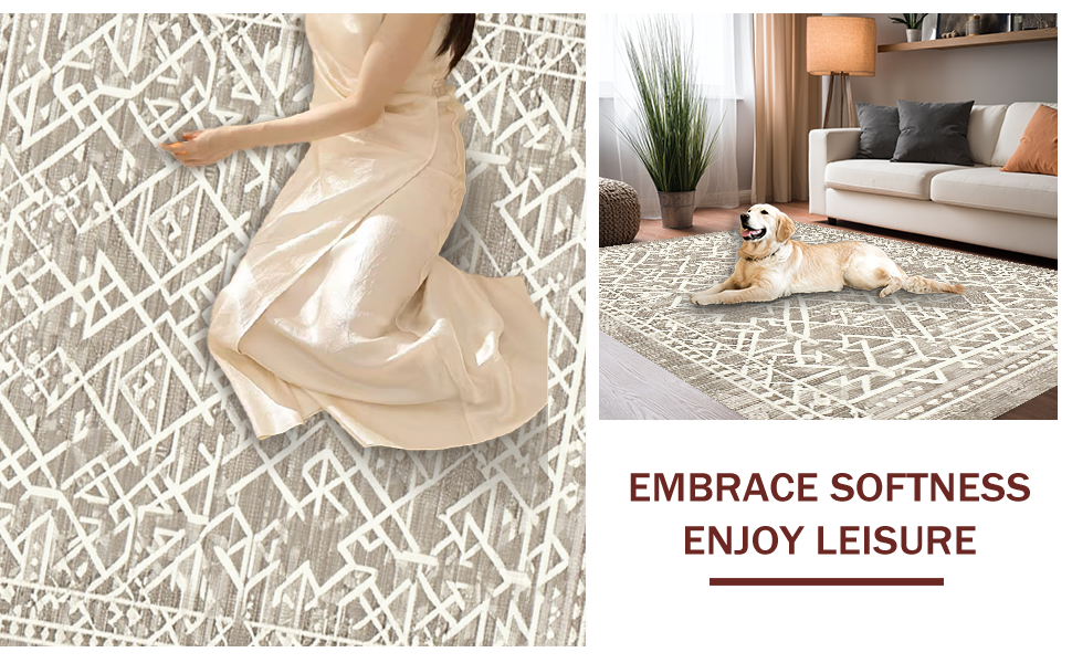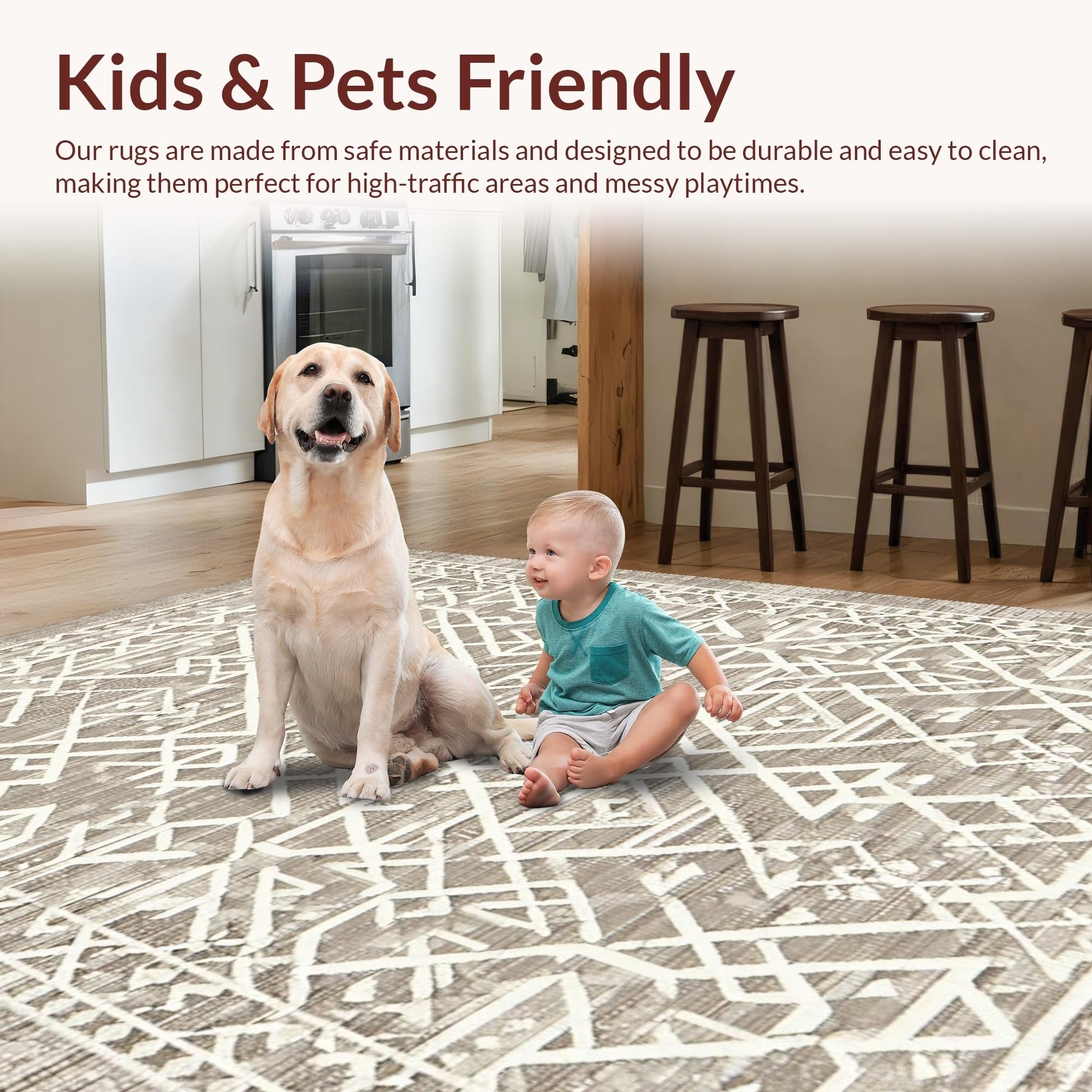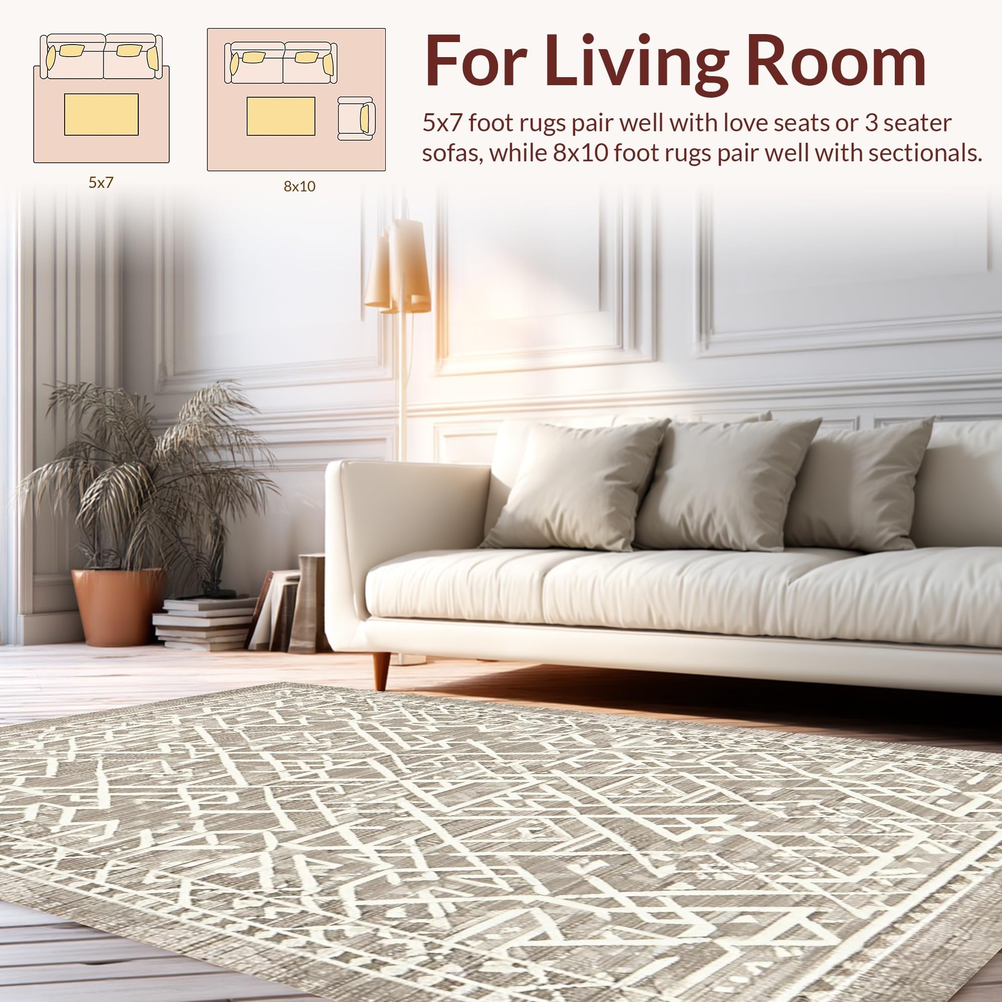 Ultra Soft Area Rug, Non Slip, Stain Resistant, Washable Area Rugs for Living Room, Bedroom, Chic Textured Tribal Motif Design(Beige) Overview: