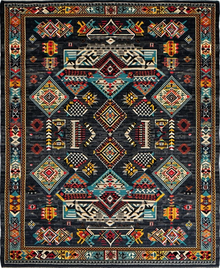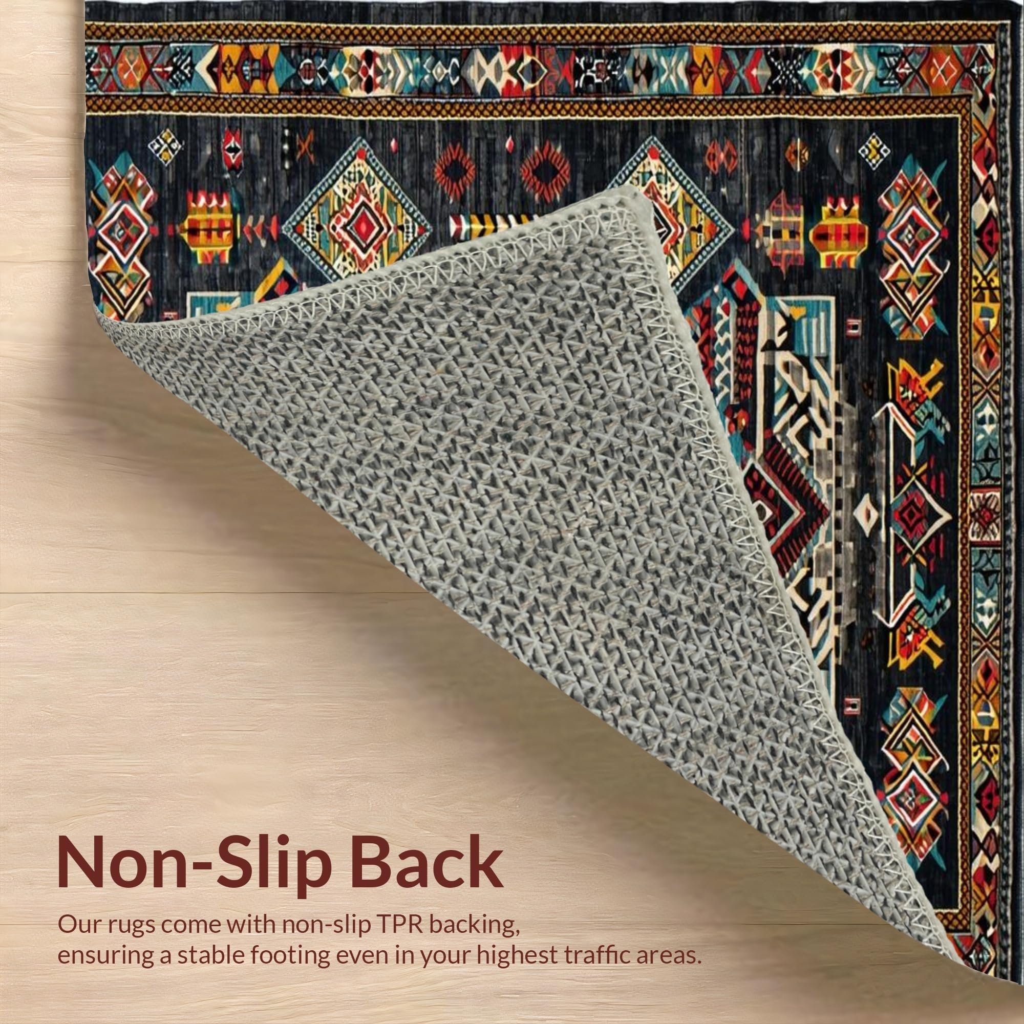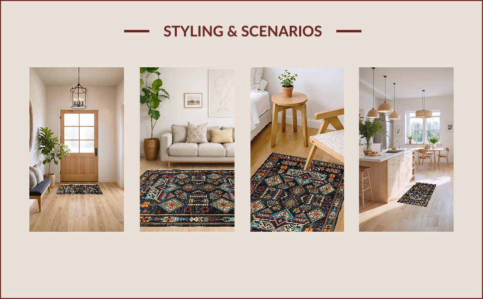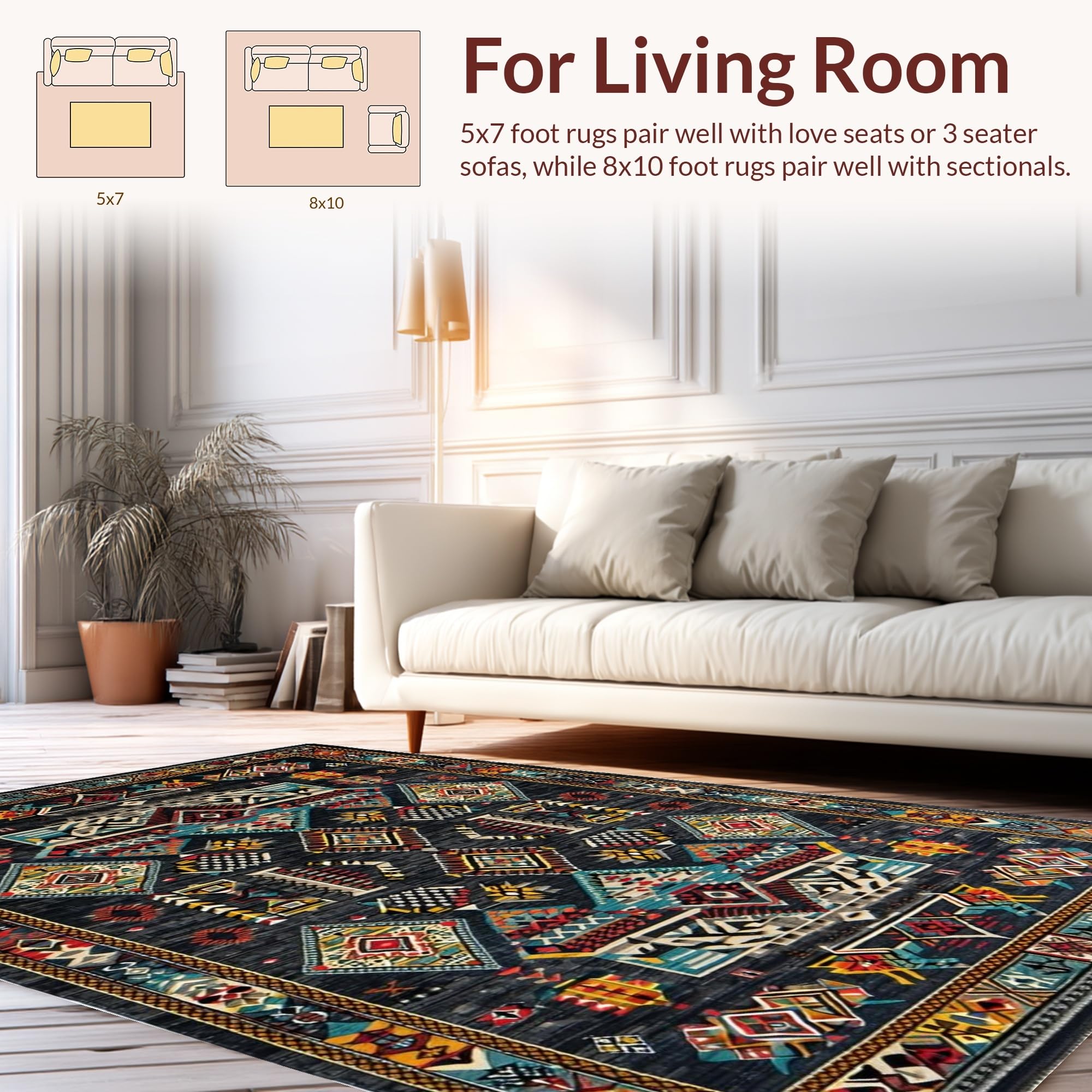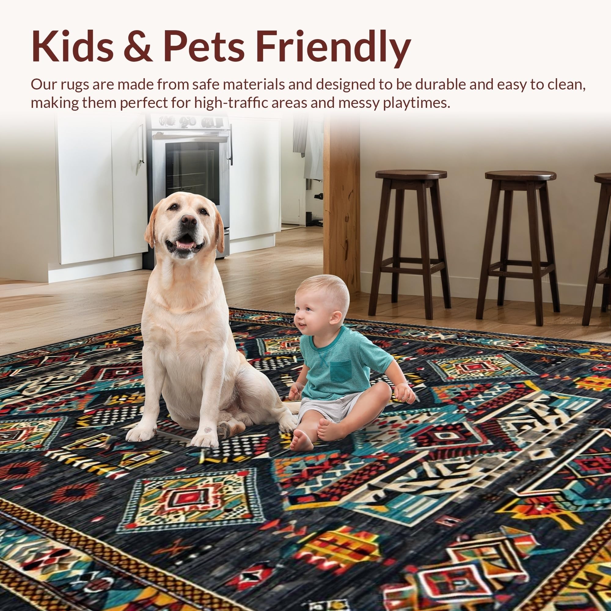 Ultra Soft Area Rug, Non Slip, Stain Resistant, Washable Area Rugs for Living Room, Bedroom, Chic Tiled Black Design Scheme(Black) Overview: