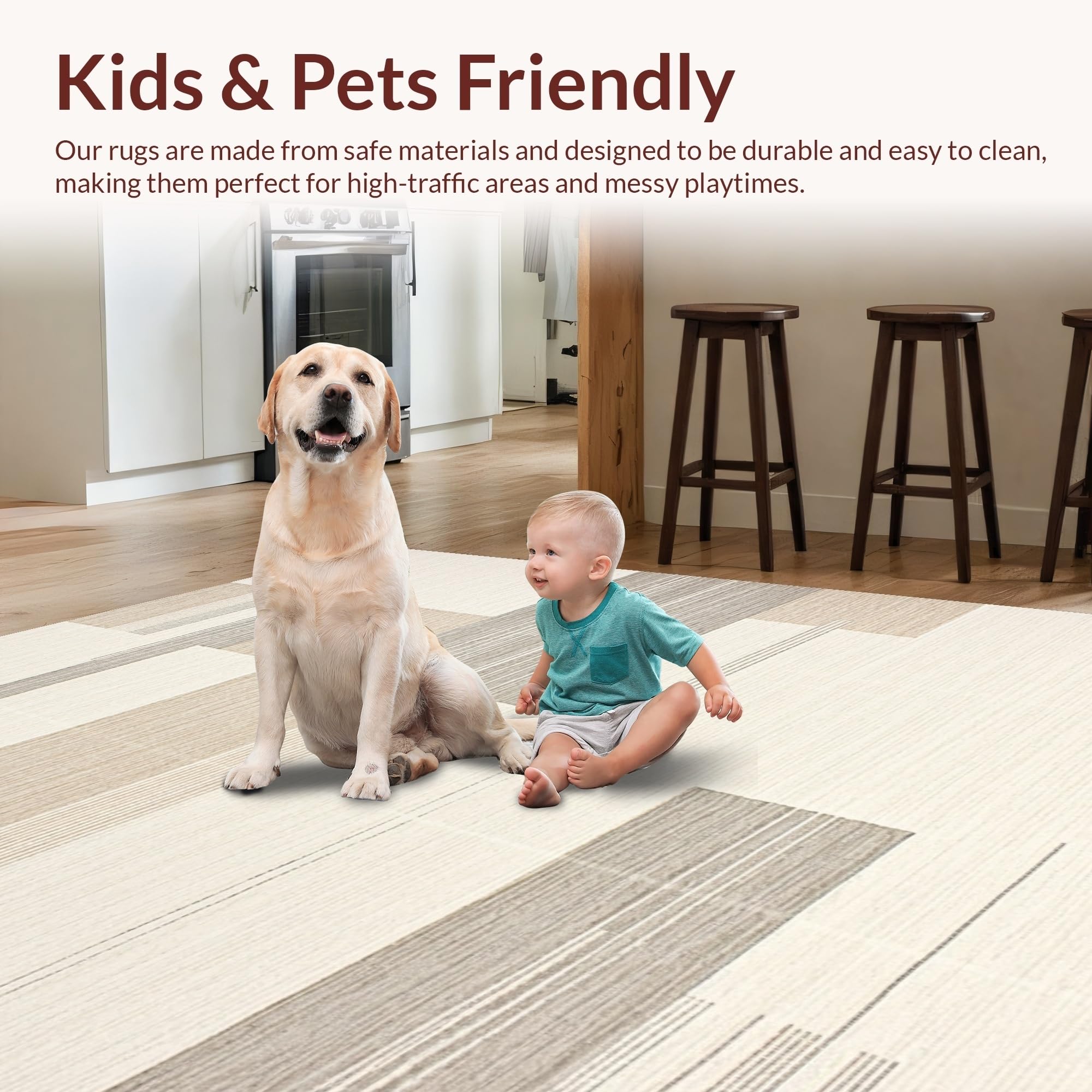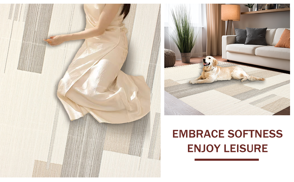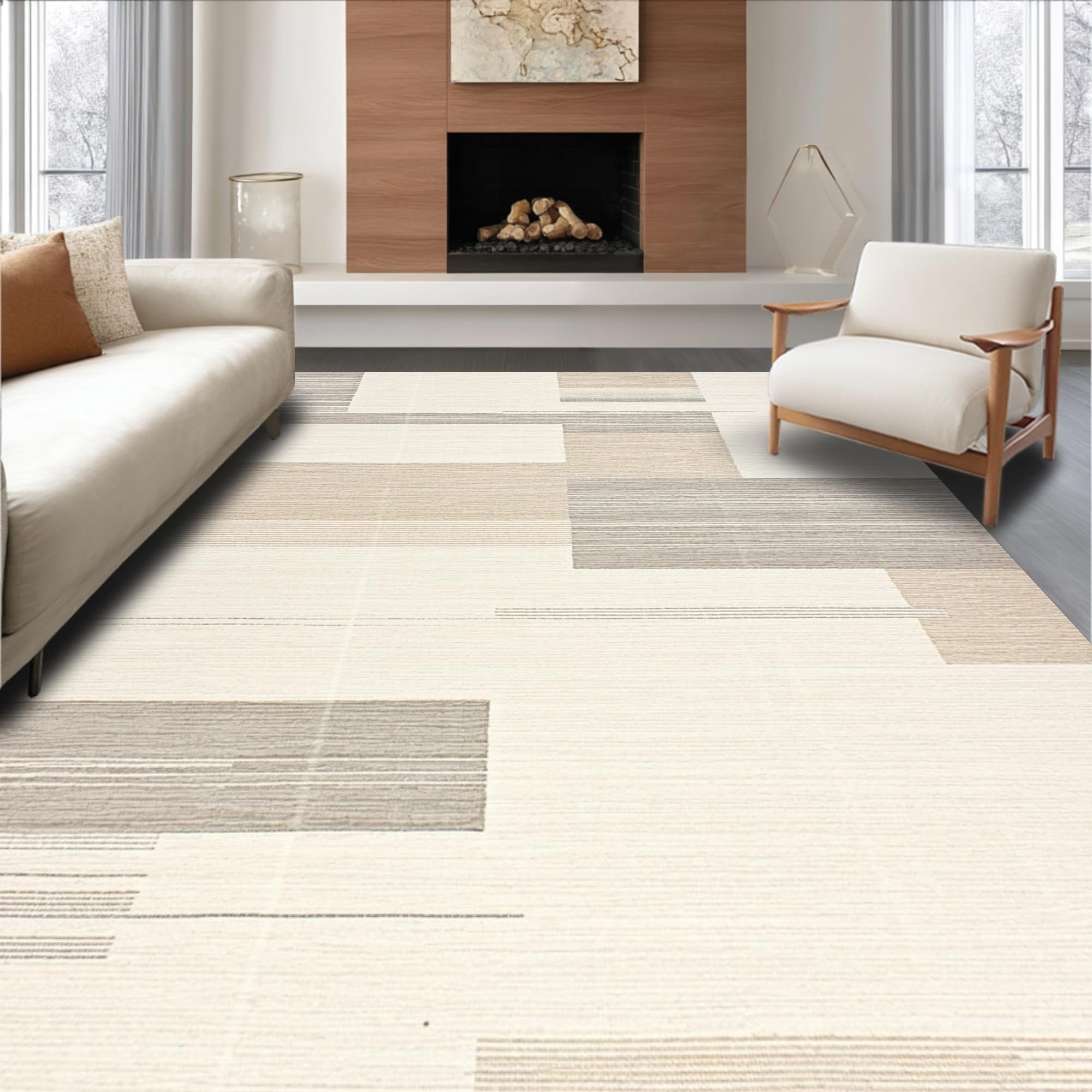 Ultra Soft Area Rug, Non Slip, Stain Resistant, Washable Area Rugs for Living Room, Bedroom, Chic Tone-on-Tone Modern Texture(Beige) Overview: