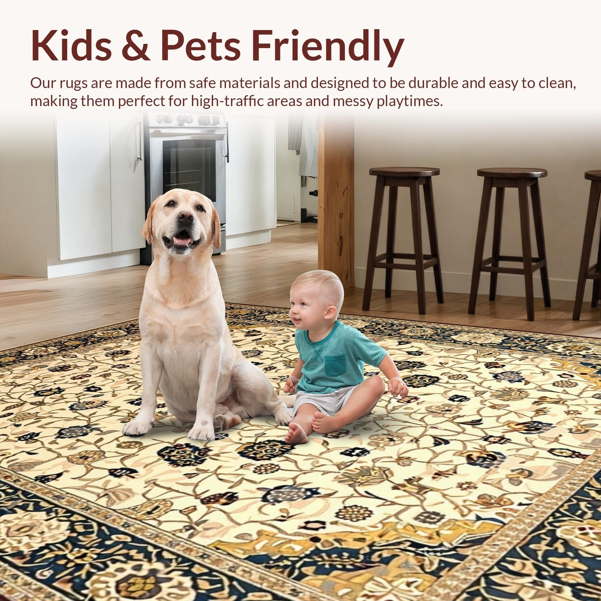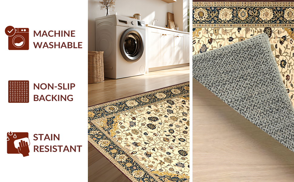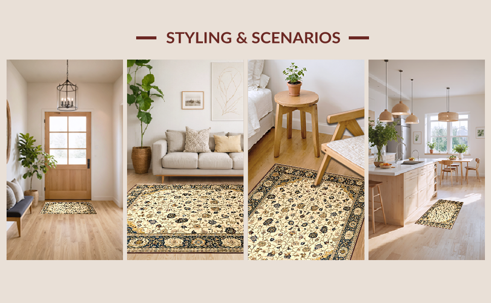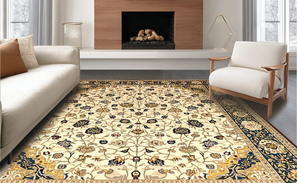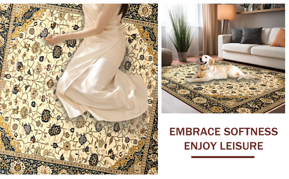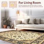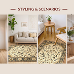 Ultra Soft Area Rug, Non Slip, Stain Resistant, Washable Area Rugs for Living Room, Bedroom, Chic Transitional Floral Elements(Beige) Overview: