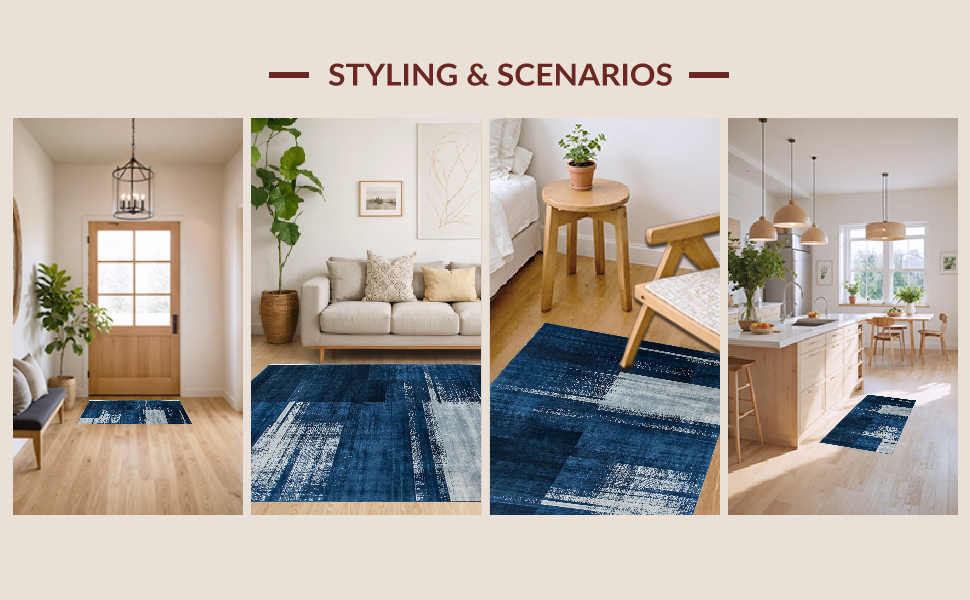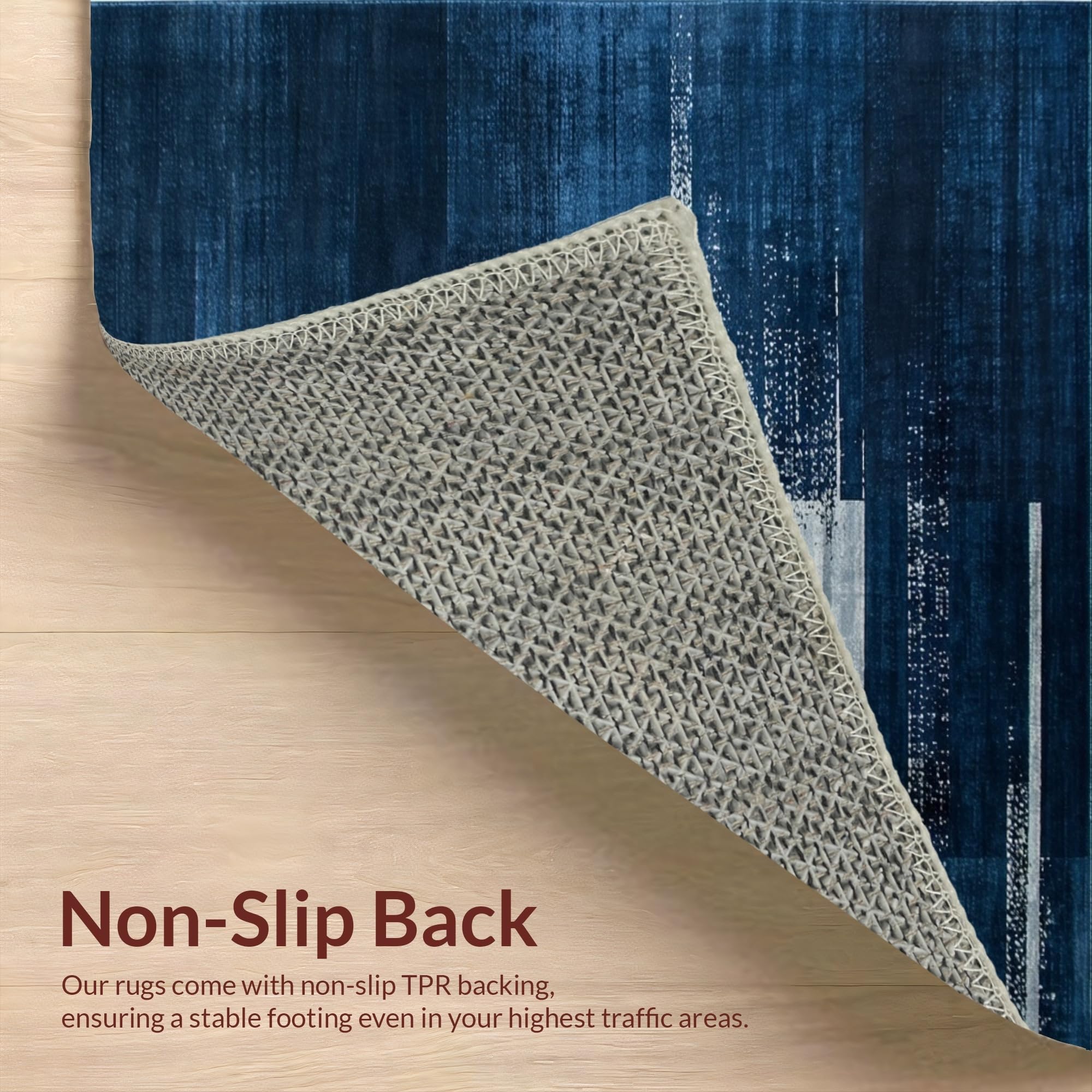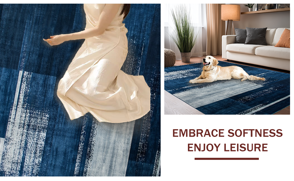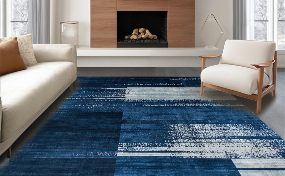 Ultra Soft Area Rug, Non Slip, Stain Resistant, Washable Area Rugs for Living Room, Bedroom, Chic Transitional Fluid Art Motif(Blue) Overview: