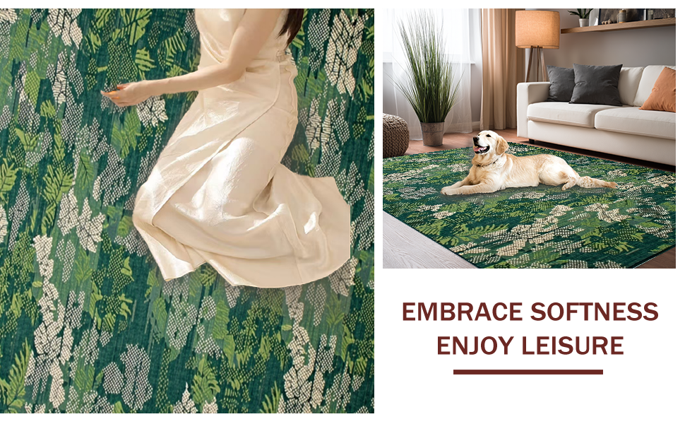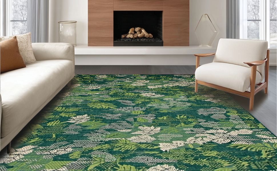 Ultra Soft Area Rug, Non Slip, Stain Resistant, Washable Area Rugs for Living Room, Bedroom, Chic Transitional Ogee Style(Green) Overview: