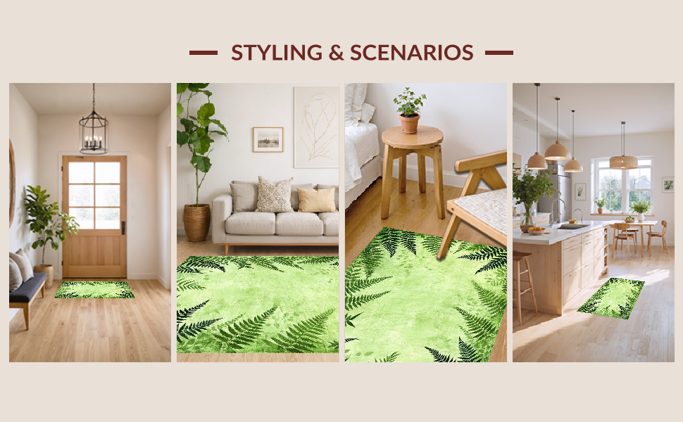 Ultra Soft Area Rug, Non Slip, Stain Resistant, Washable Area Rugs for Living Room, Bedroom, Chic Transitional Soft Absorbent Set(Green) Overview:
