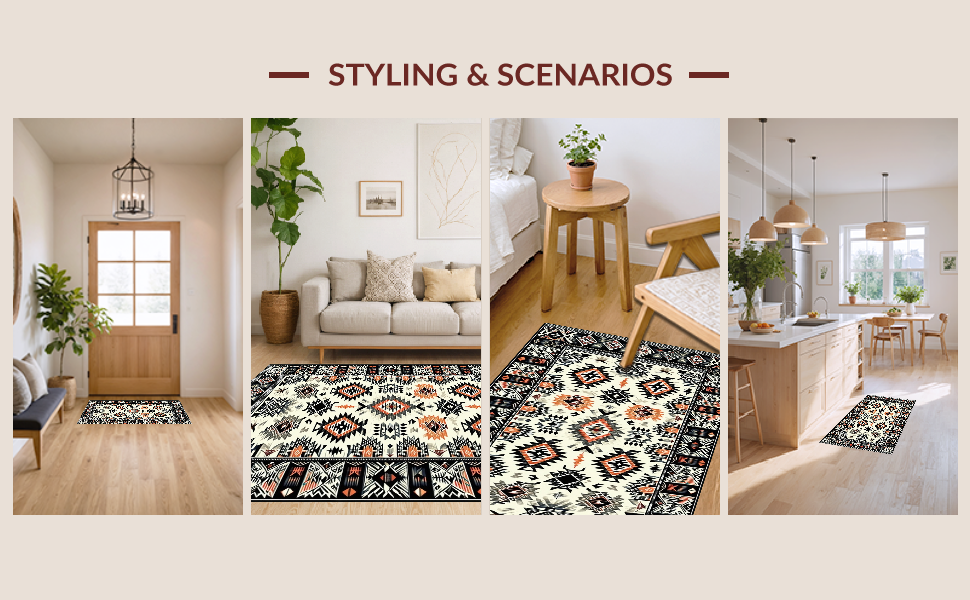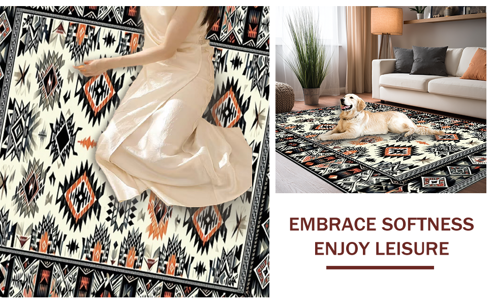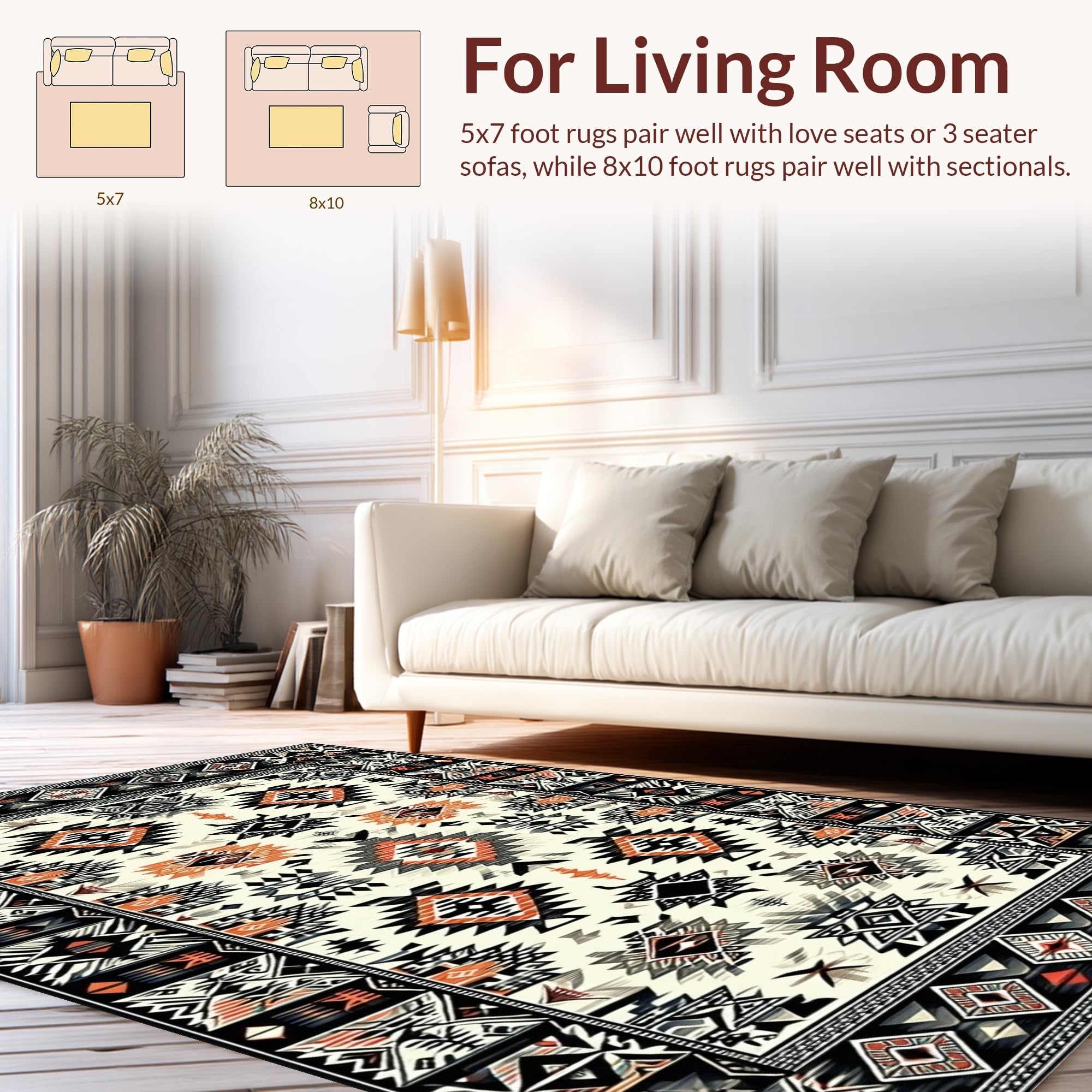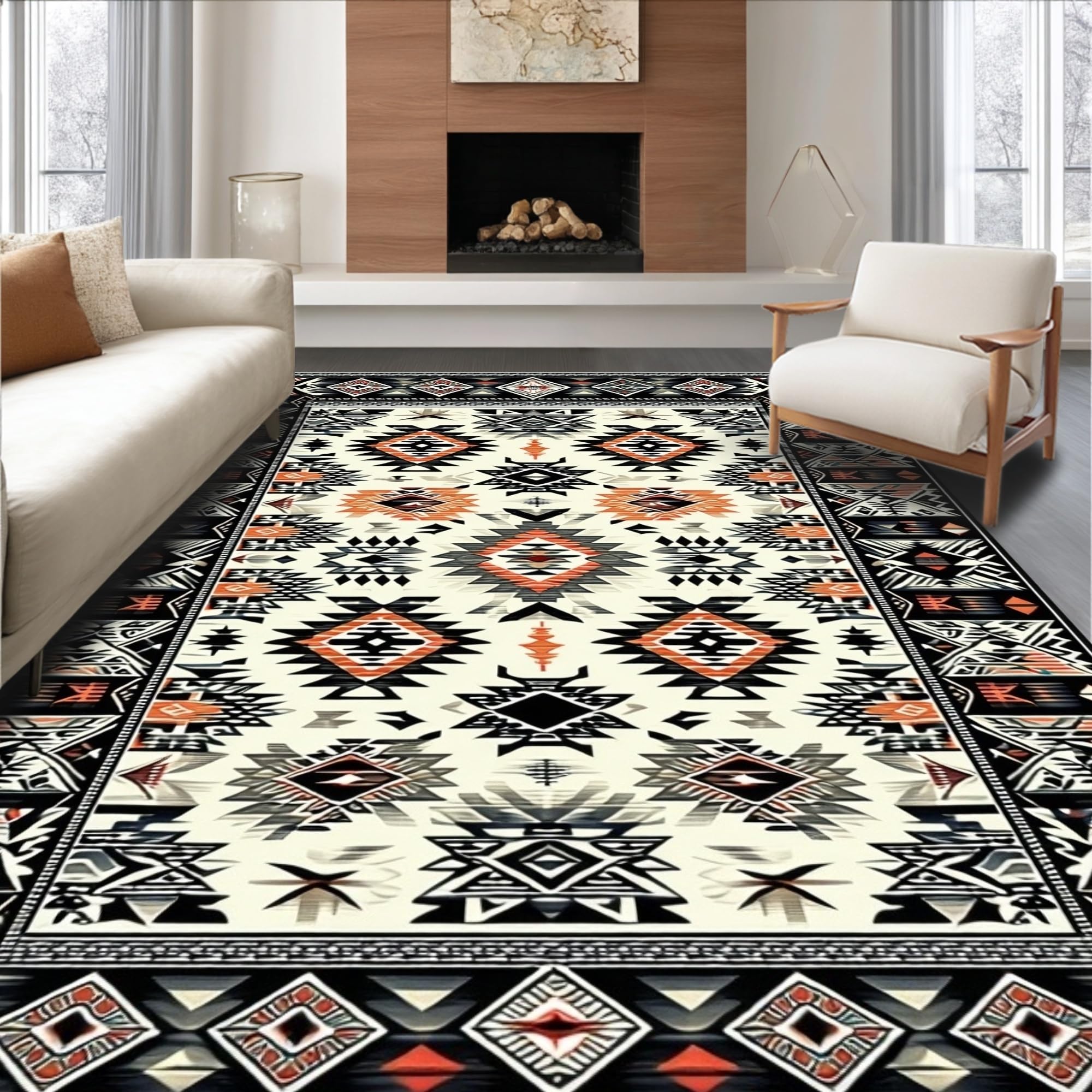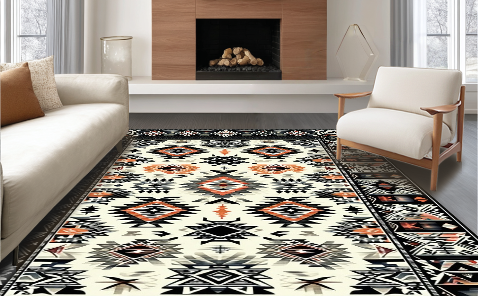 Ultra Soft Area Rug, Non Slip, Stain Resistant, Washable Area Rugs for Living Room, Bedroom, Chic Tribal Tiled Composition(Gray) Overview: