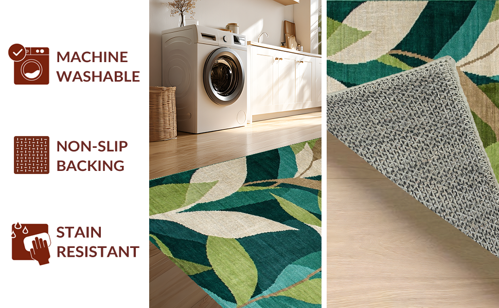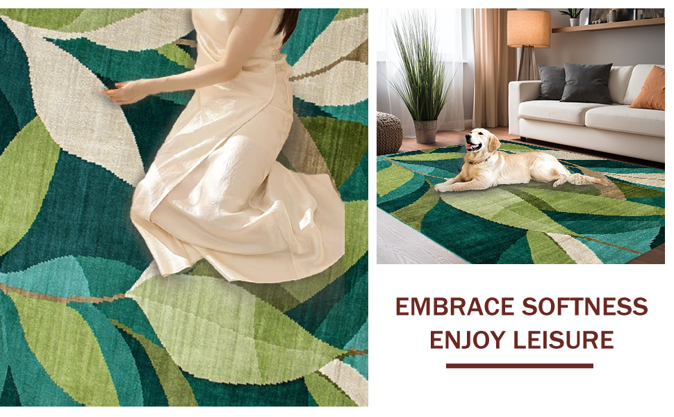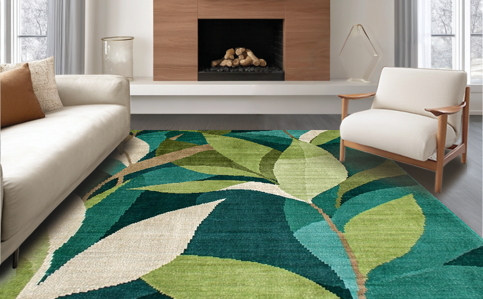 Ultra Soft Area Rug, Non Slip, Stain Resistant, Washable Area Rugs for Living Room, Bedroom, Chic Tropical Oasis Decor(Green) Overview: