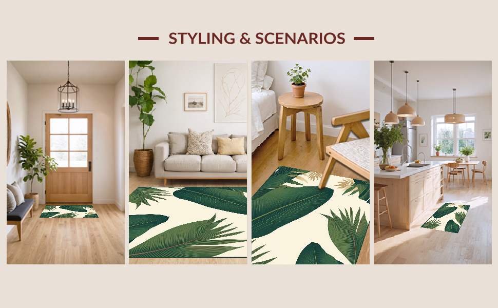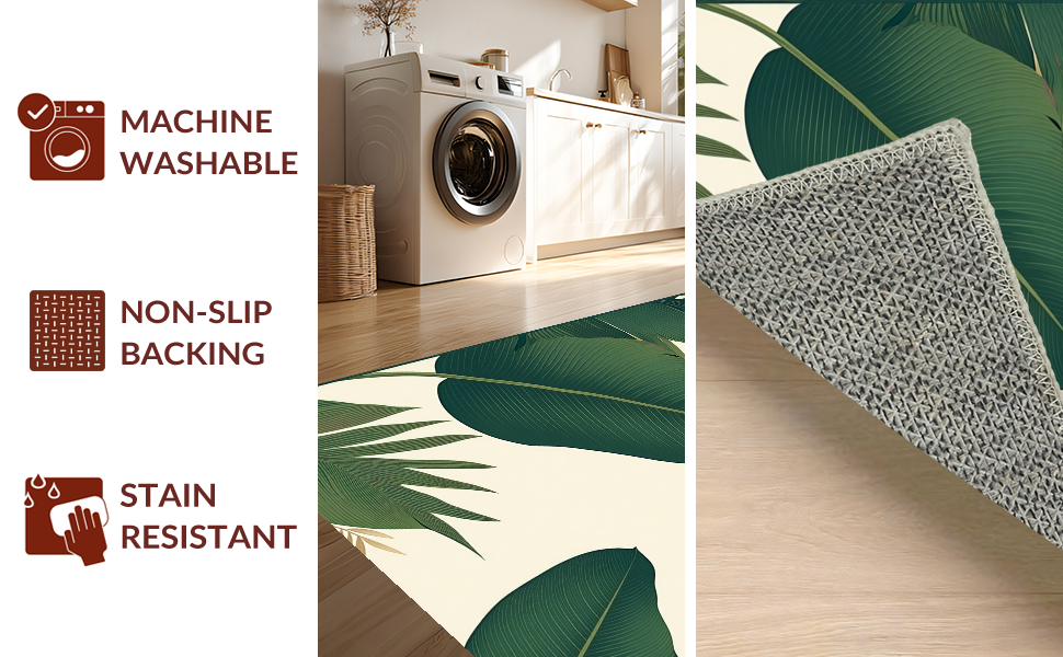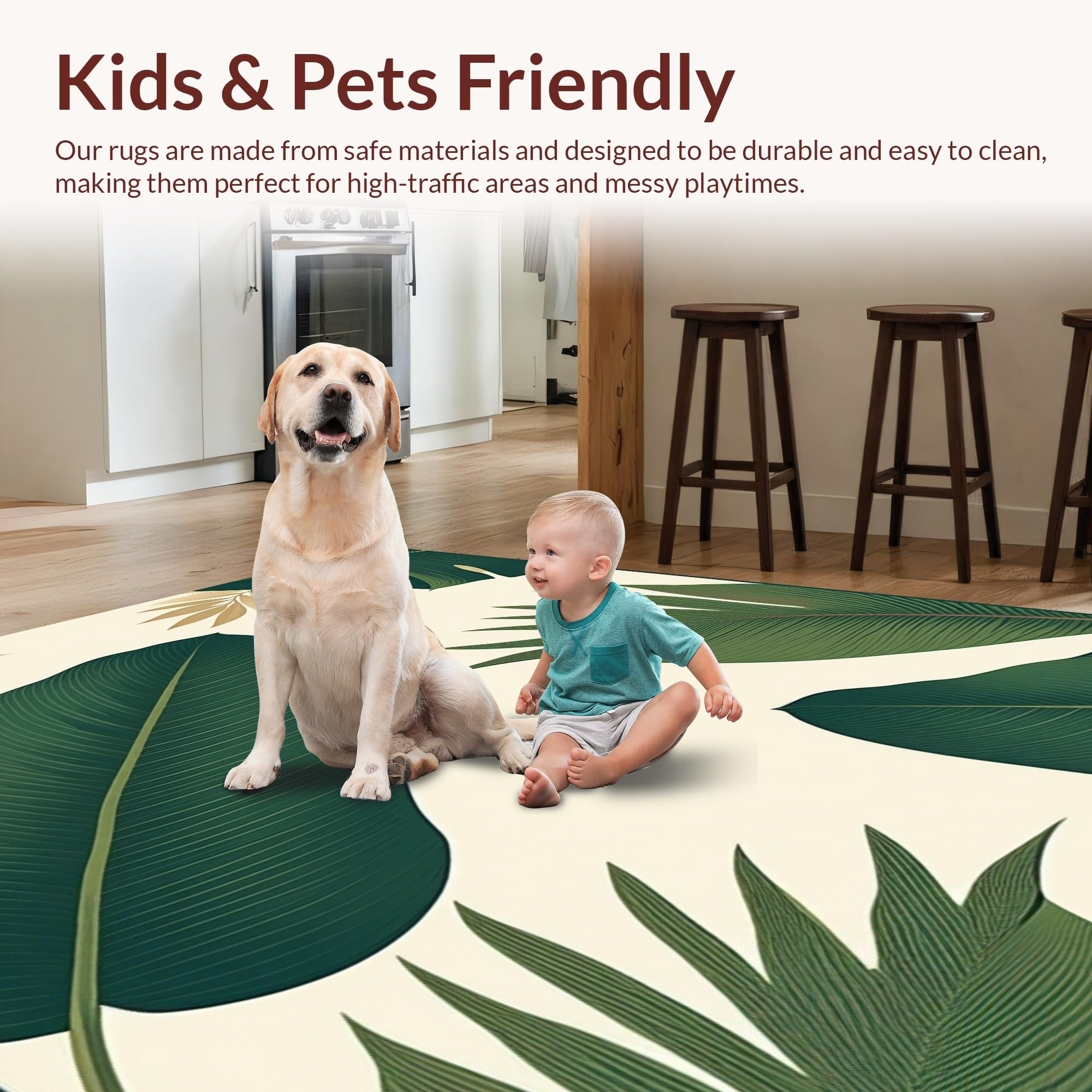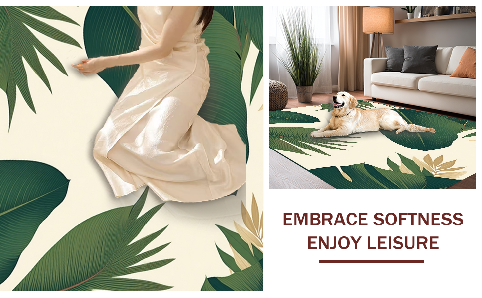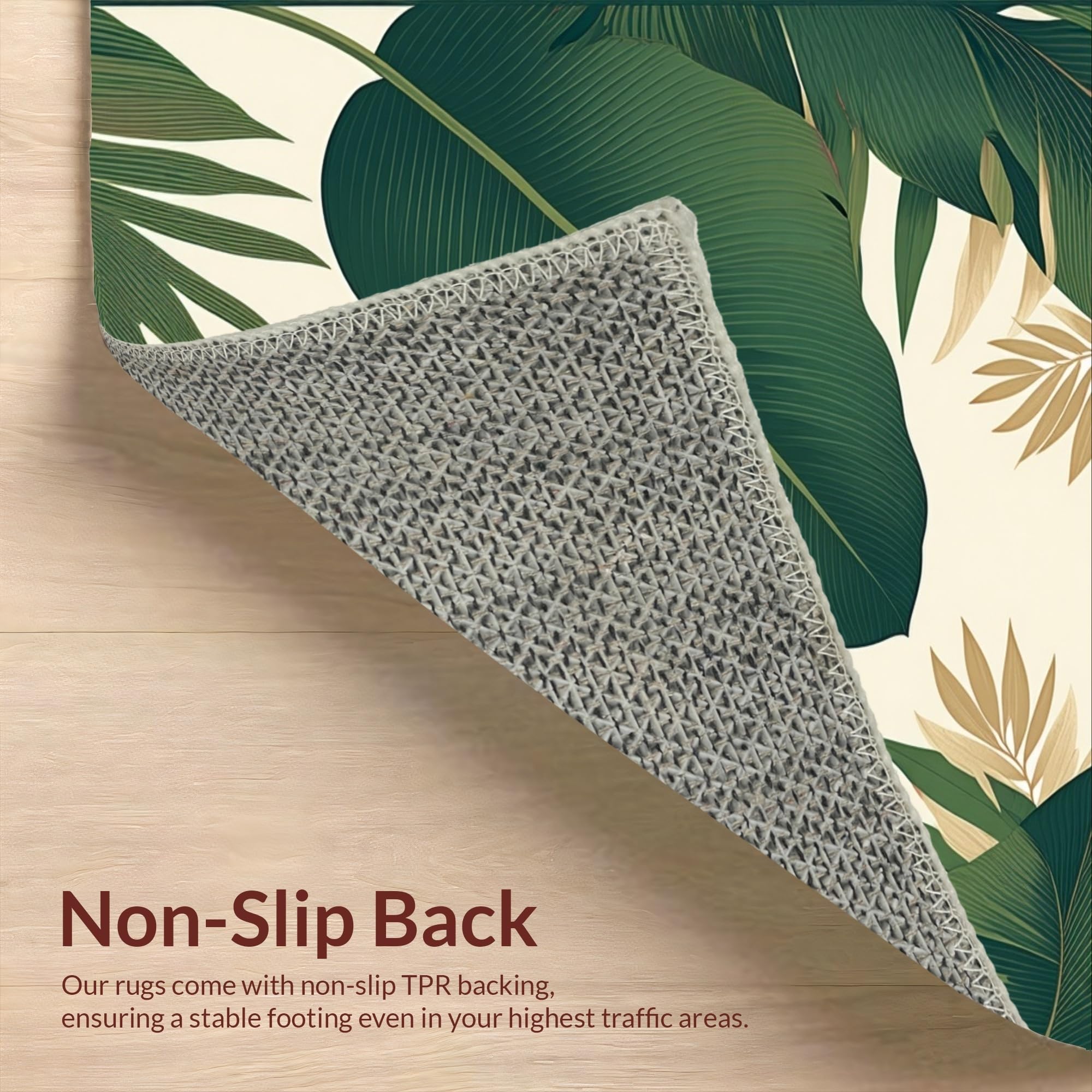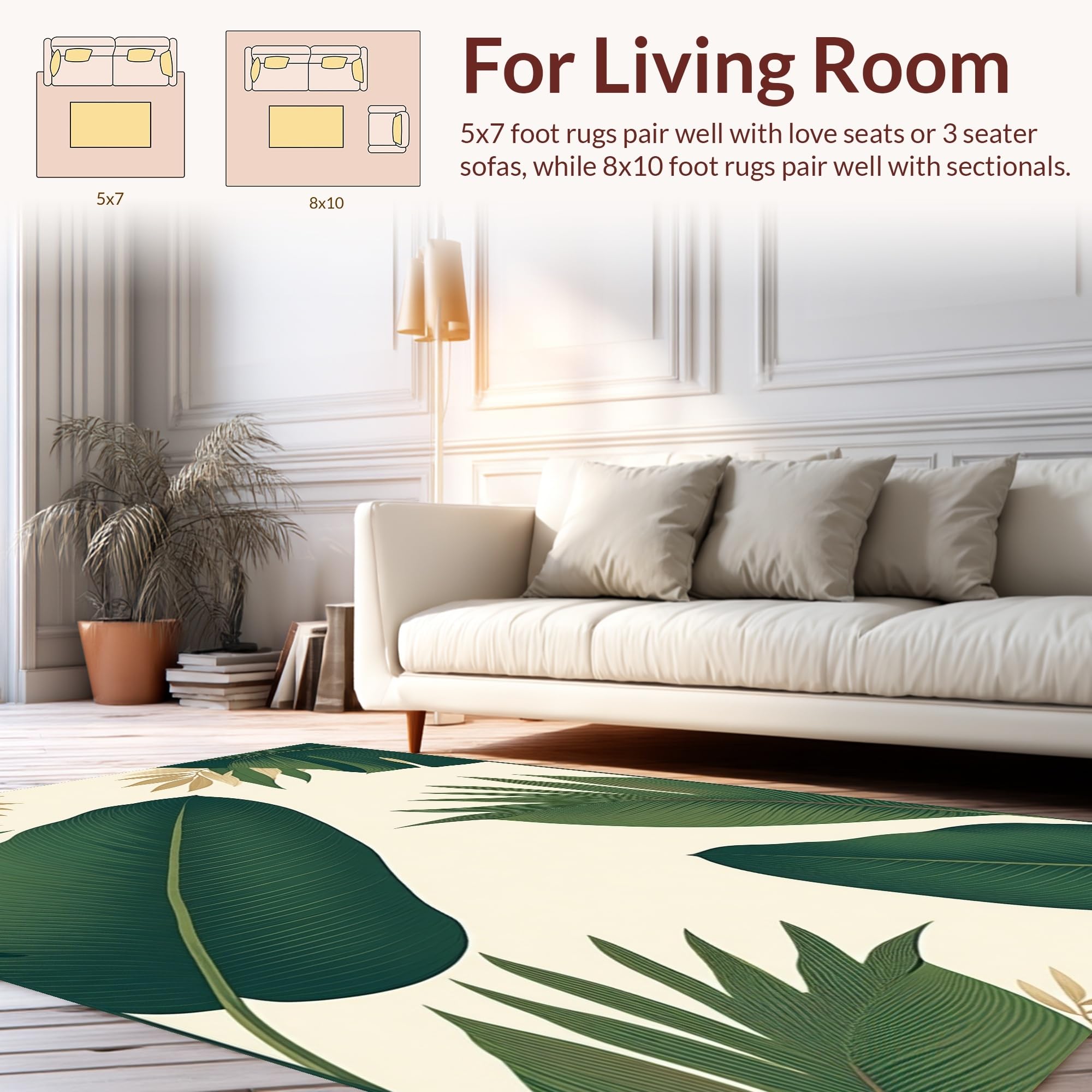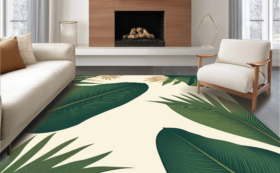 Ultra Soft Area Rug, Non Slip, Stain Resistant, Washable Area Rugs for Living Room, Bedroom, Chic Tropical Oasis Feel(Green) Overview: