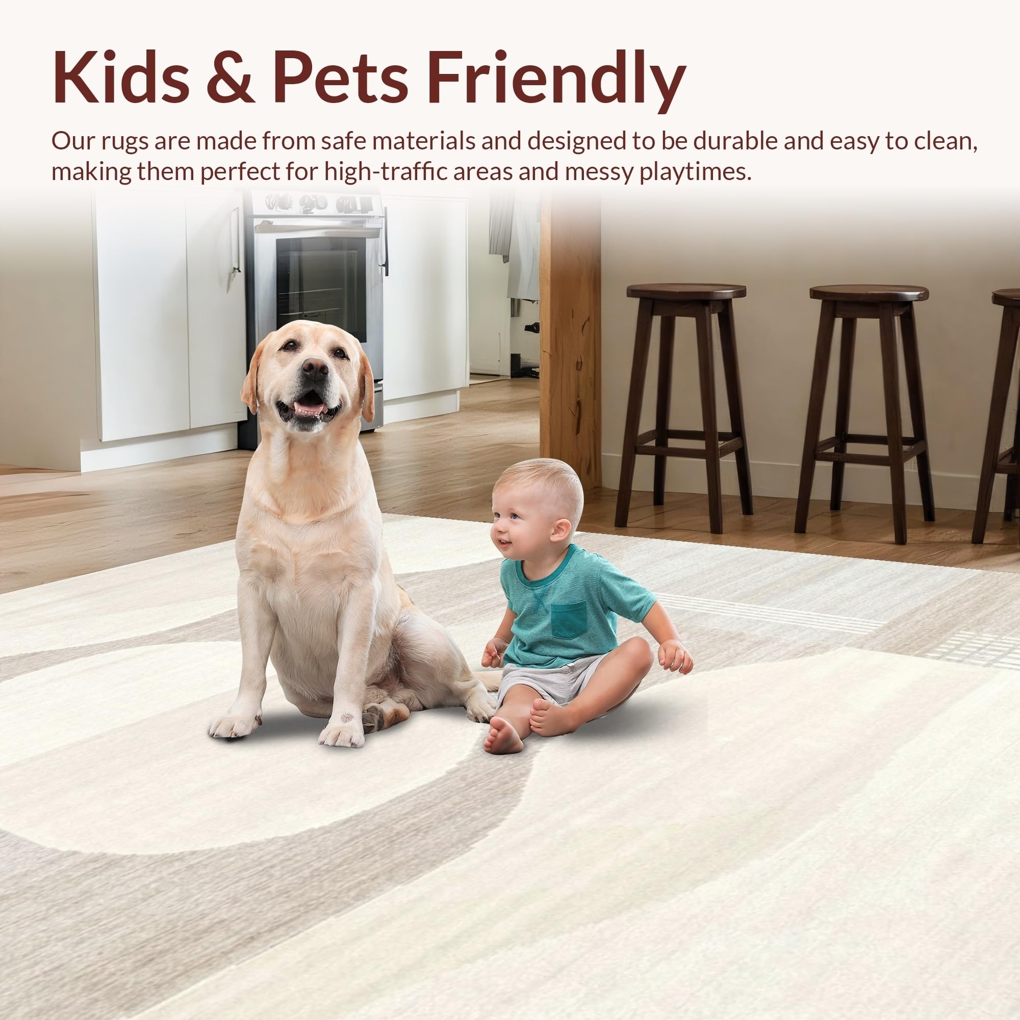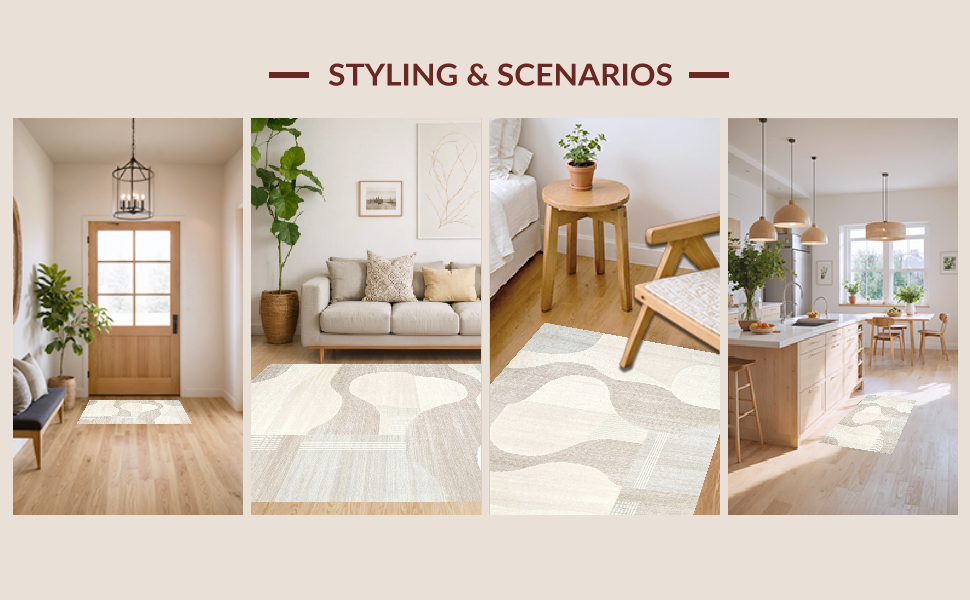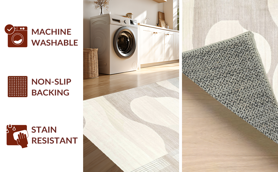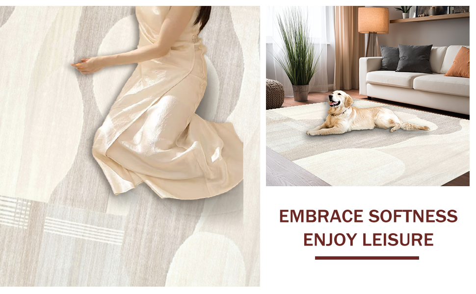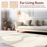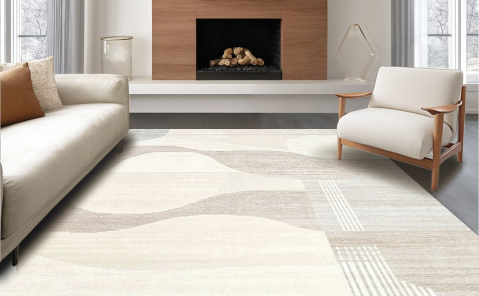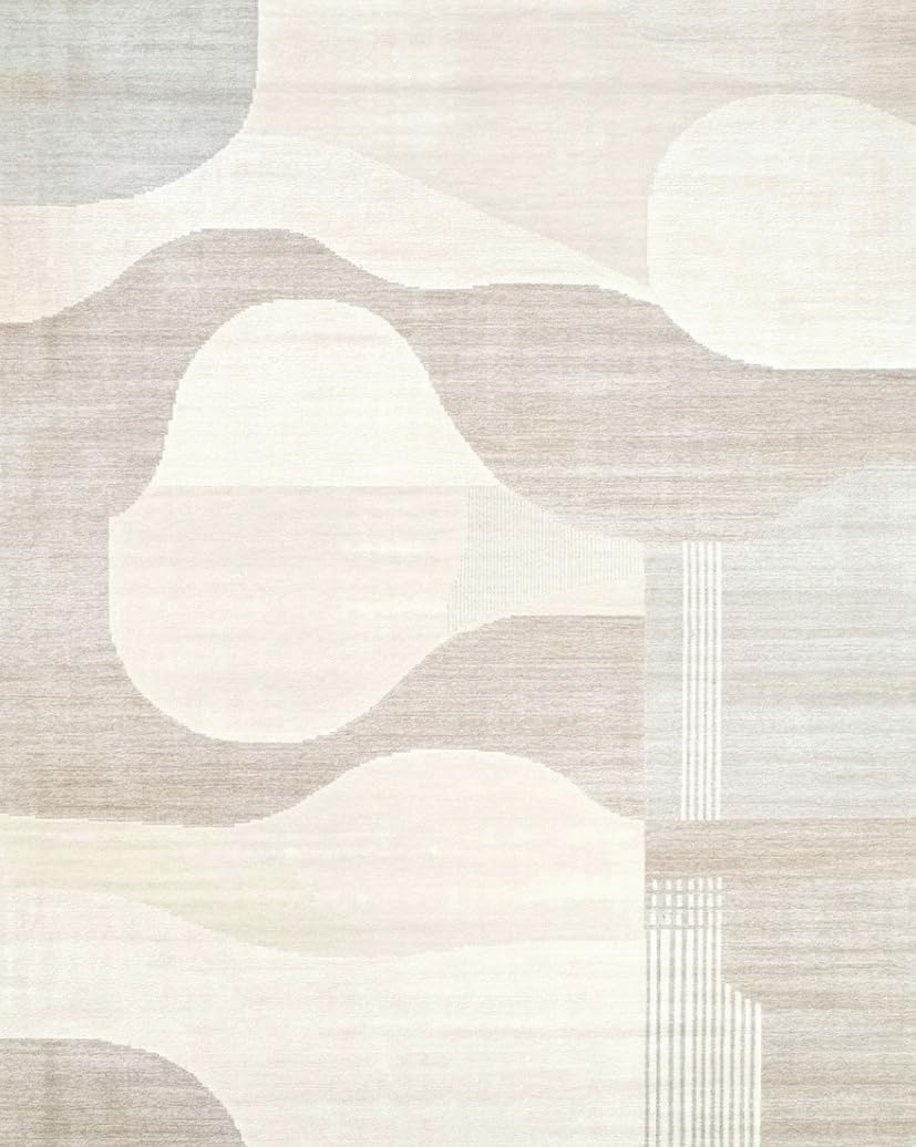 Ultra Soft Area Rug, Non Slip, Stain Resistant, Washable Area Rugs for Living Room, Bedroom, Chic Two-Tone Abstract Linear Motif(Beige) Overview: