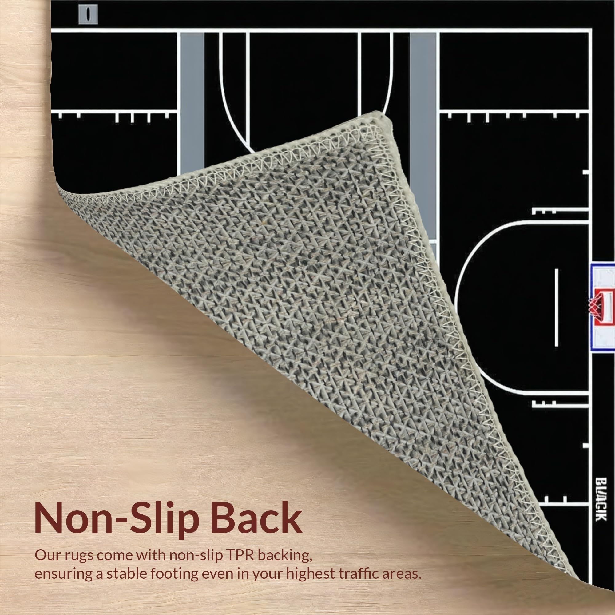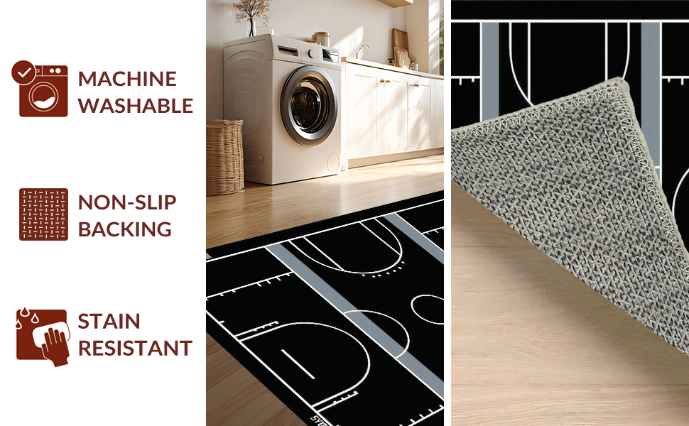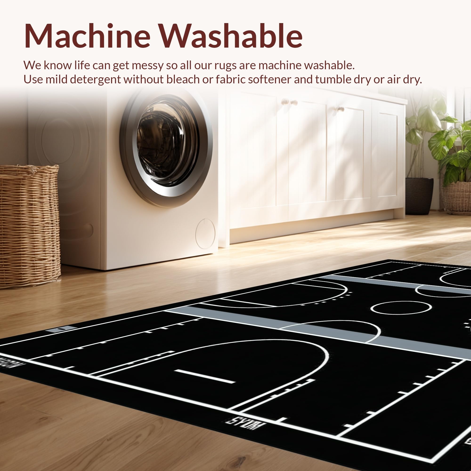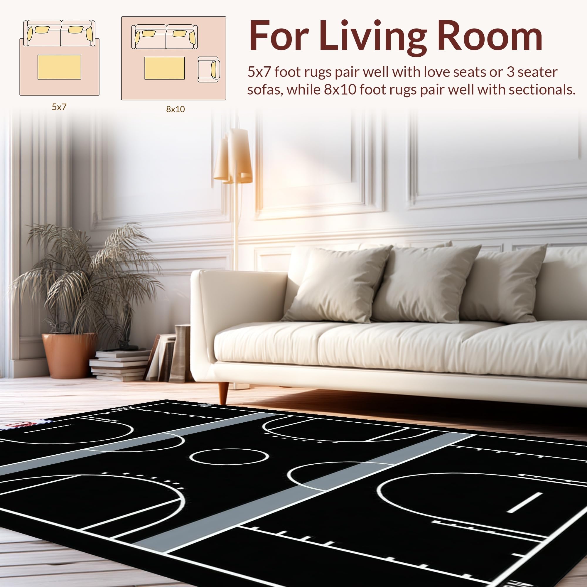 Ultra Soft Area Rug, Non Slip, Stain Resistant, Washable Area Rugs for Living Room, Bedroom, Chic Urban Basketball Style(Black) Overview:
