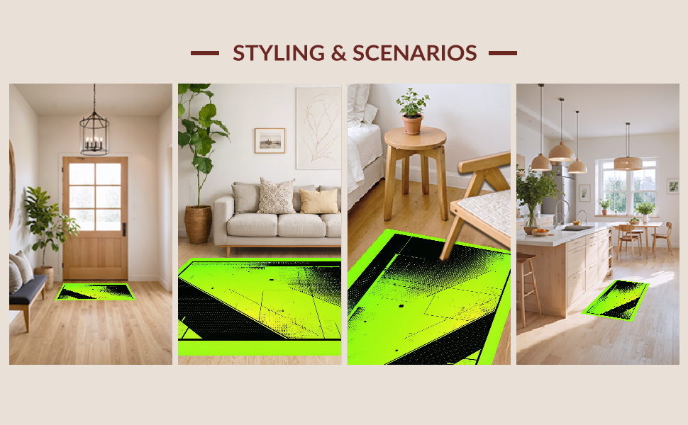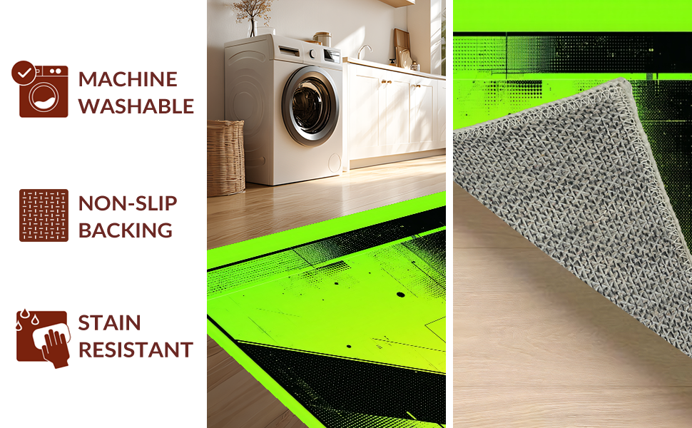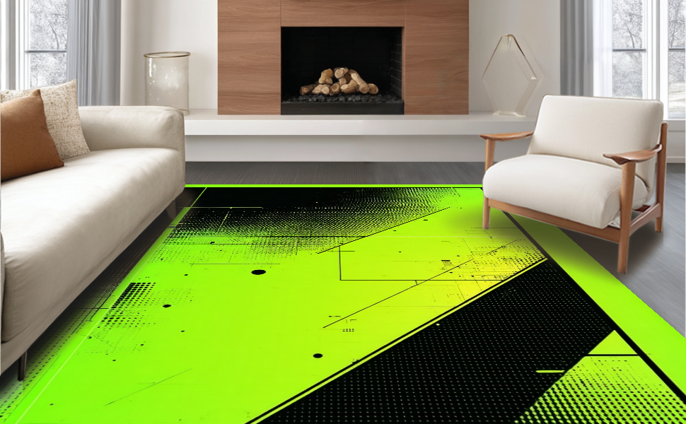 Ultra Soft Area Rug, Non Slip, Stain Resistant, Washable Area Rugs for Living Room, Bedroom, Chic Urban Edge Design Style(Green) Overview:
