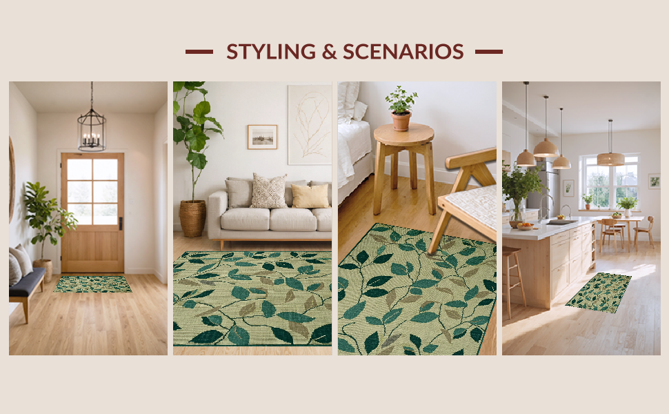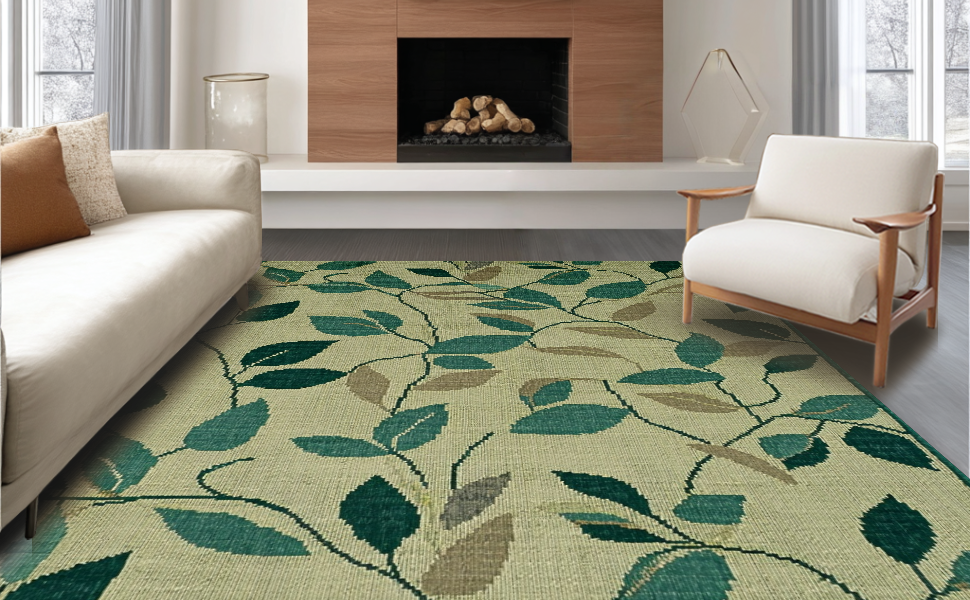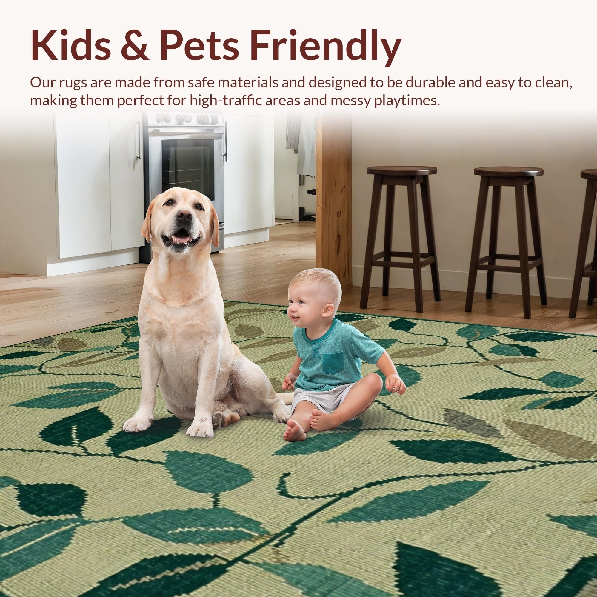 Ultra Soft Area Rug, Non Slip, Stain Resistant, Washable Area Rugs for Living Room, Bedroom, Chic Verdant Geometric Fusion(Beige) Overview: