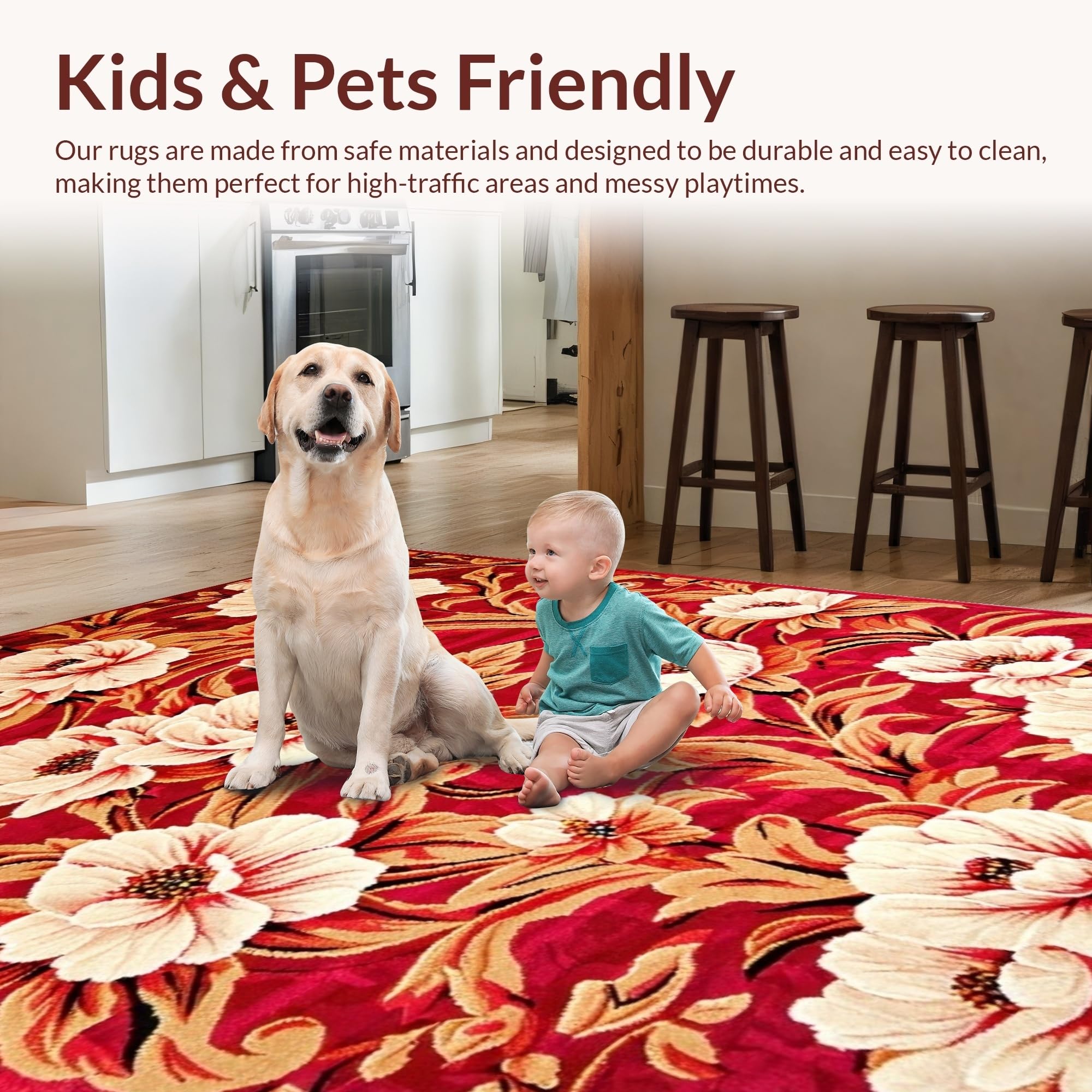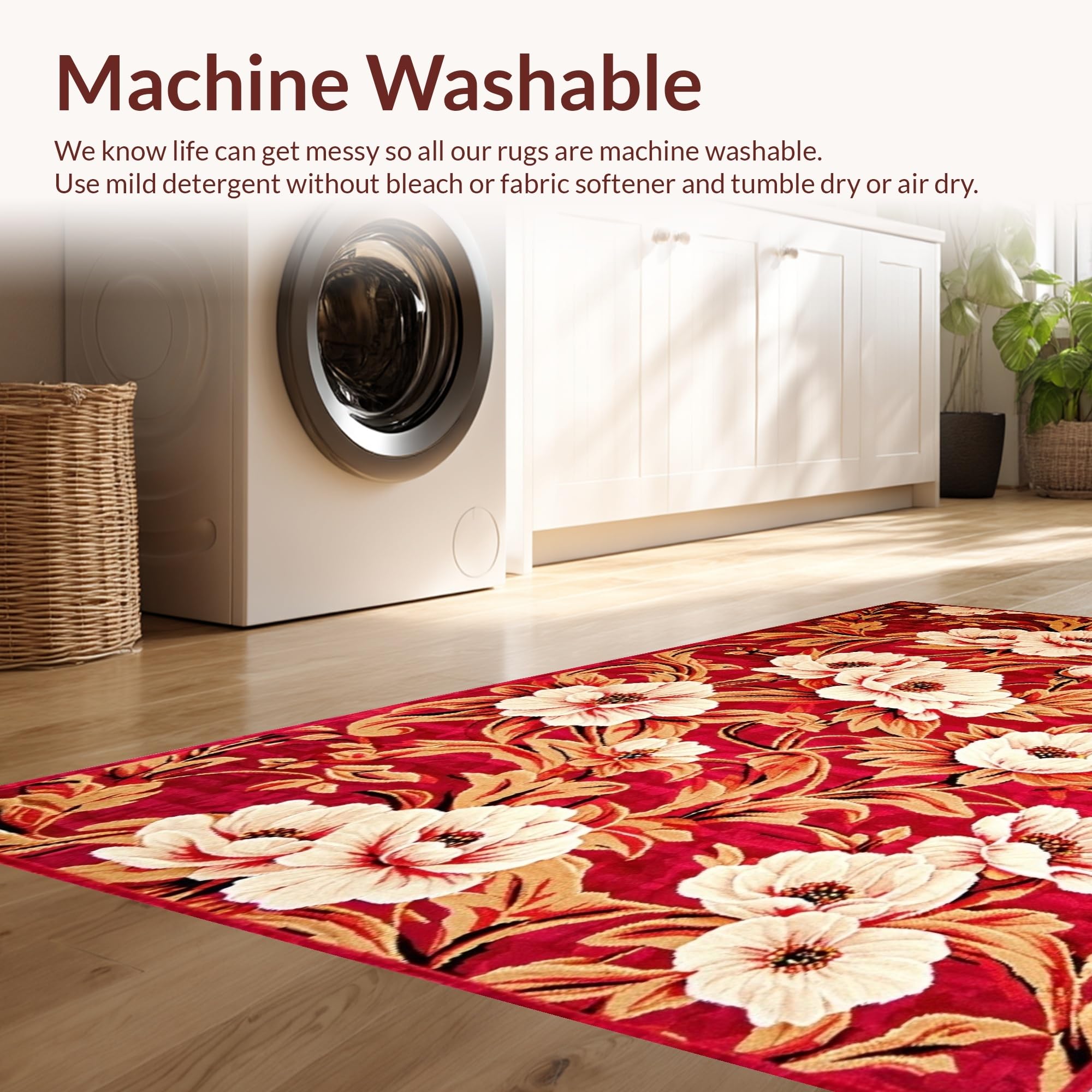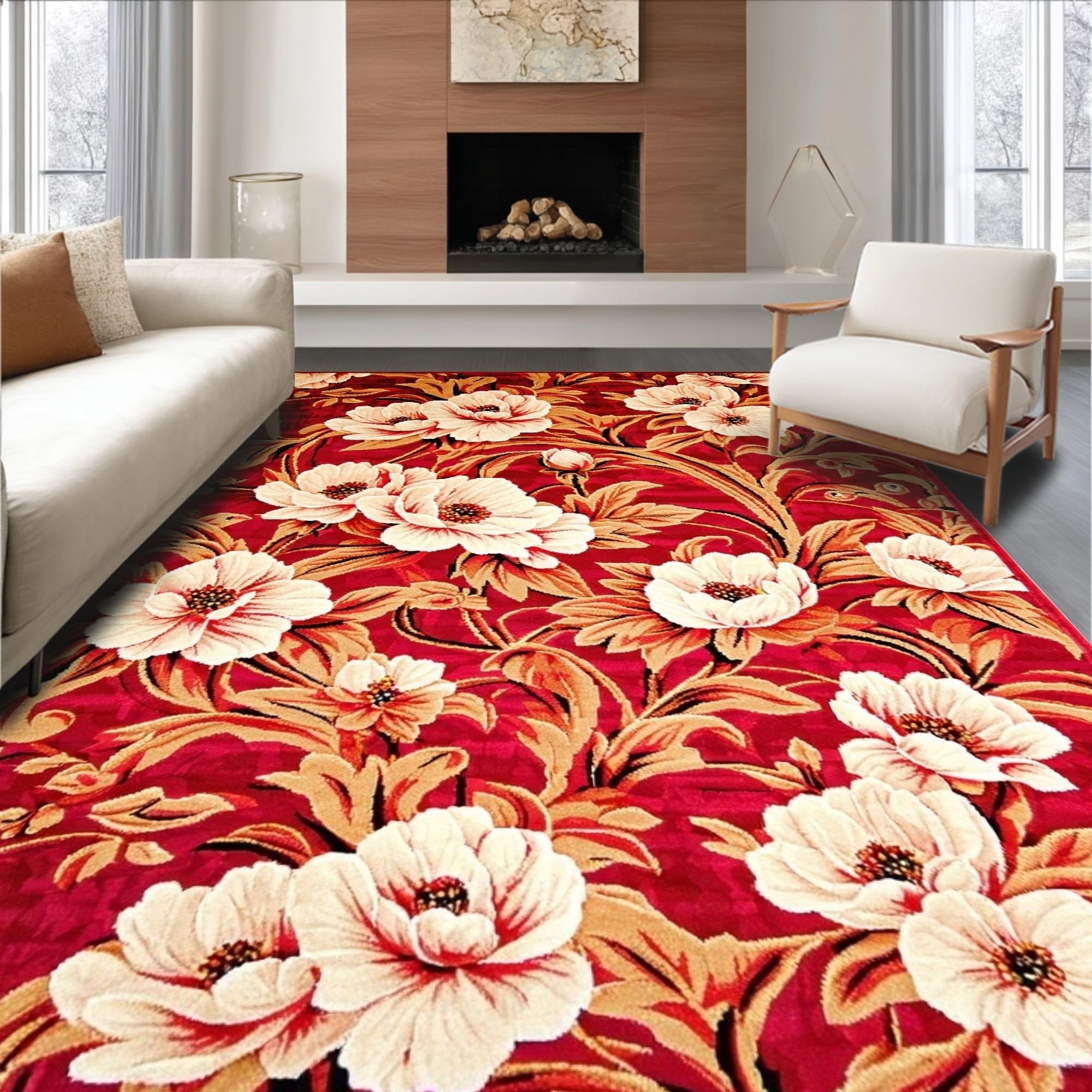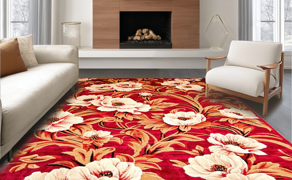 Ultra Soft Area Rug, Non Slip, Stain Resistant, Washable Area Rugs for Living Room, Bedroom, Chic Vibrant Botanical Motif(Red) Overview: