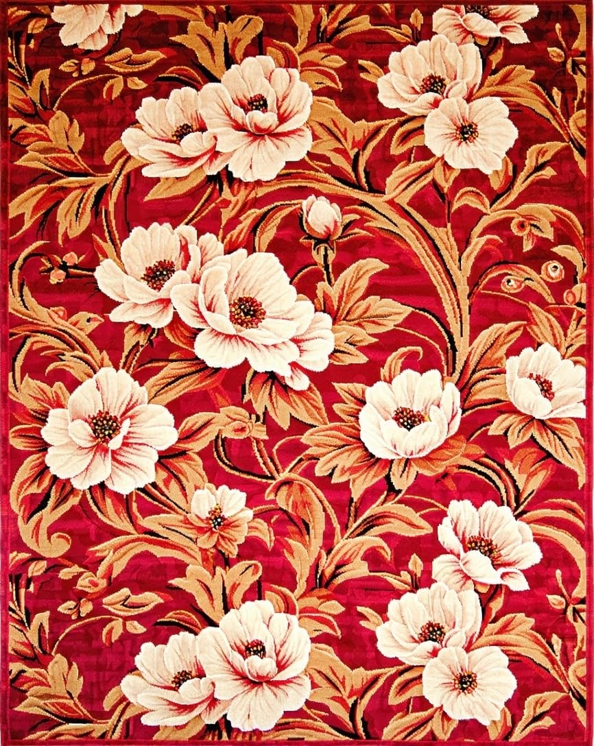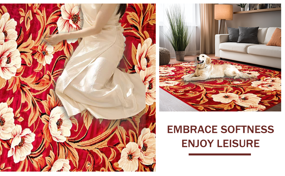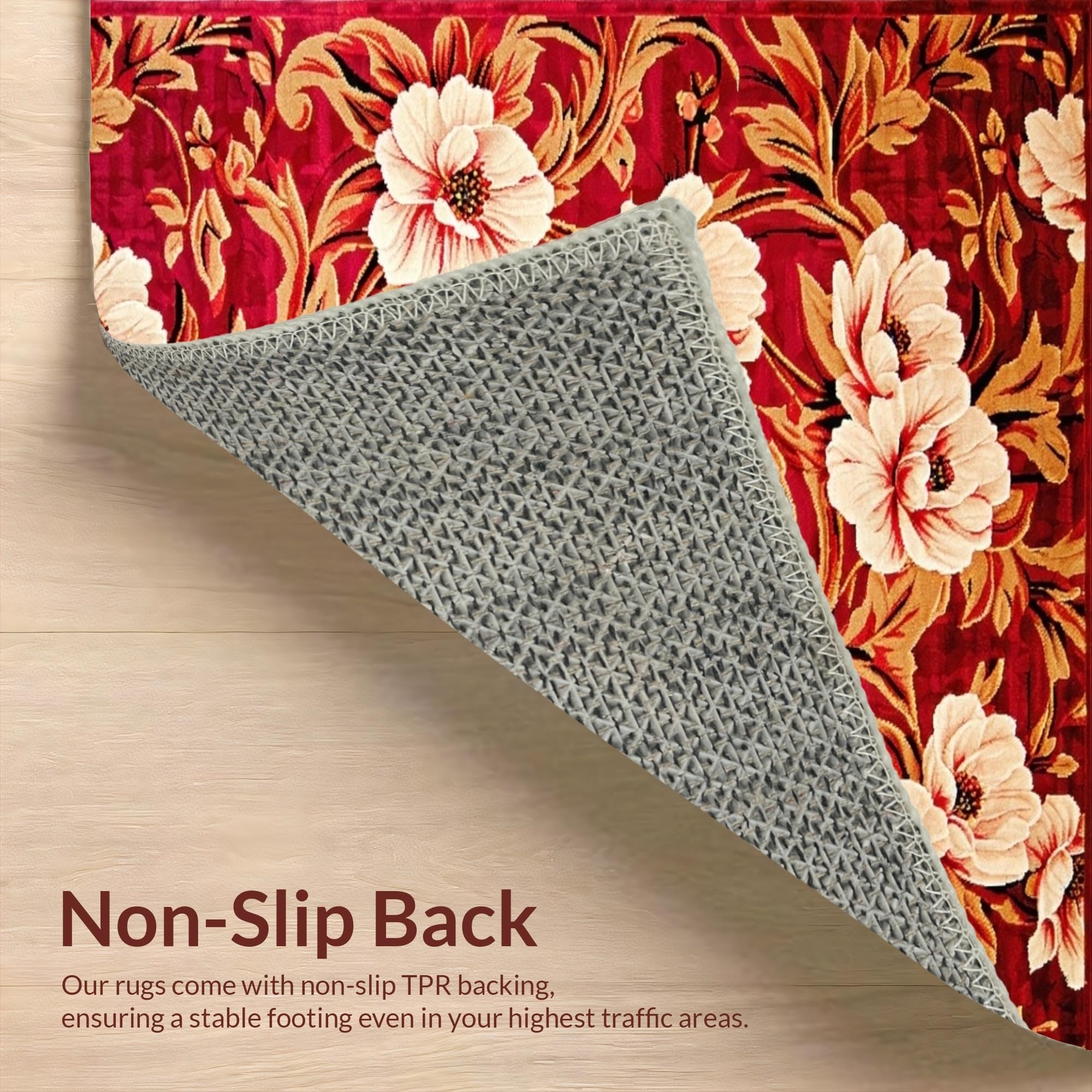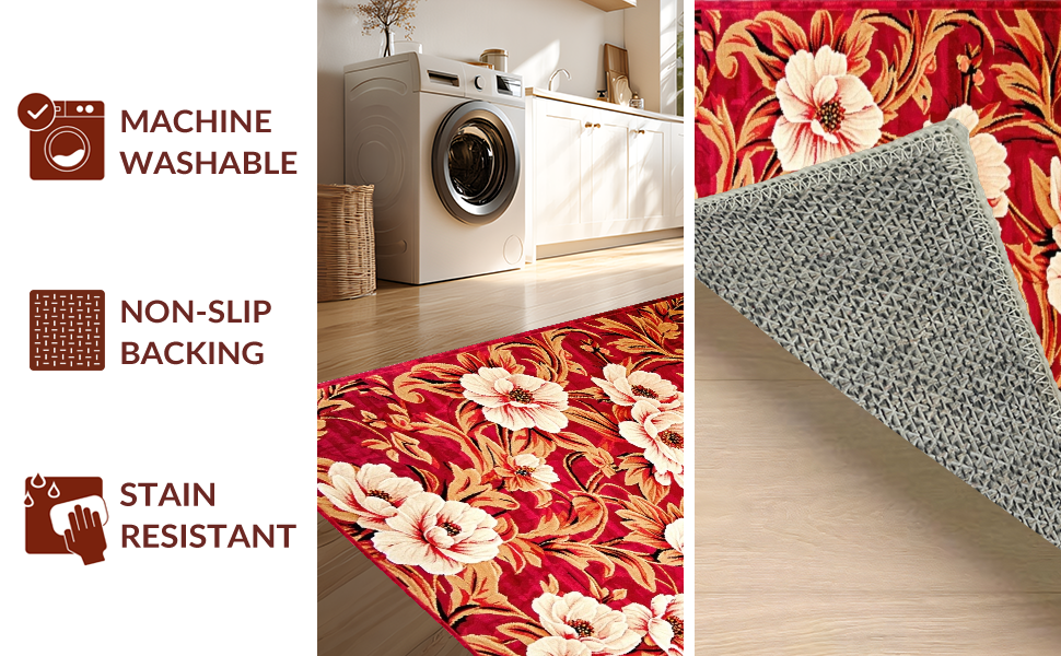 Ultra Soft Area Rug, Non Slip, Stain Resistant, Washable Area Rugs for Living Room, Bedroom, Chic Vibrant Botanical Motif(Red) Overview: