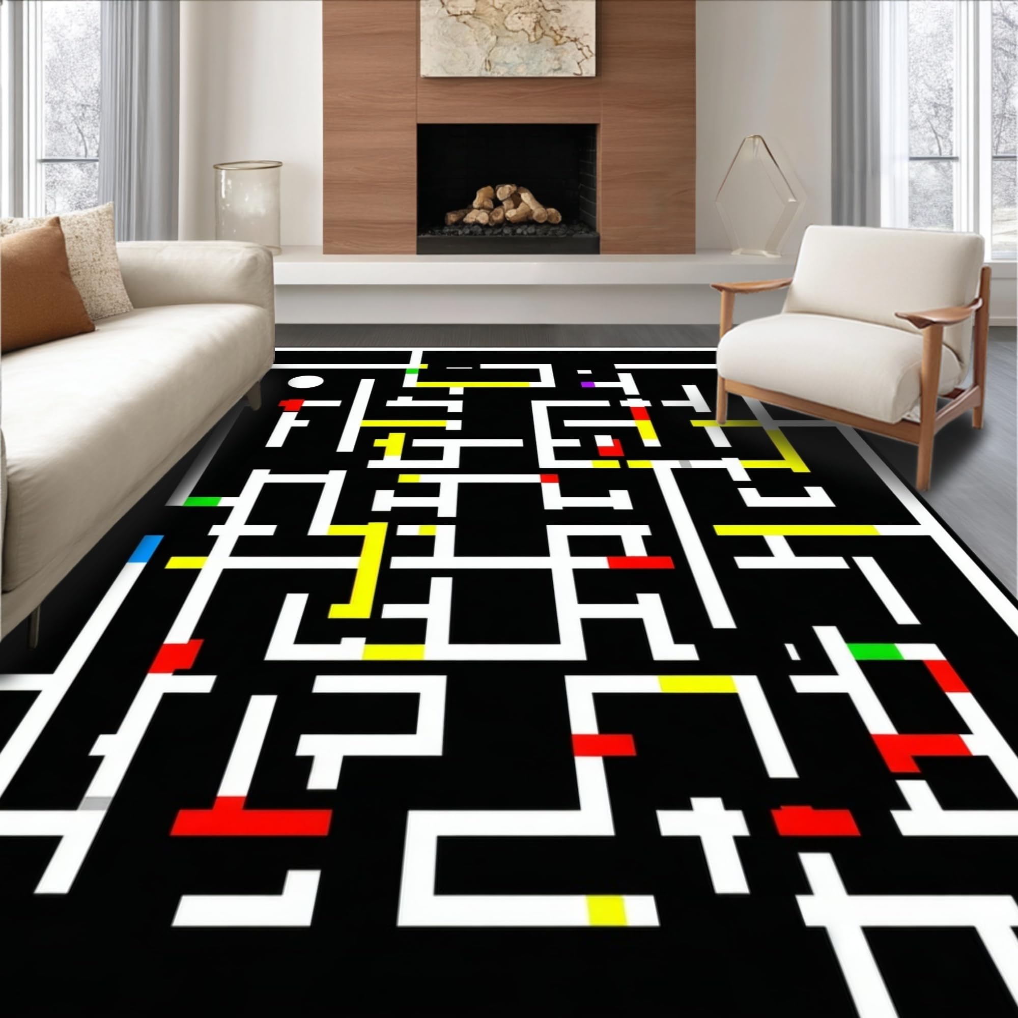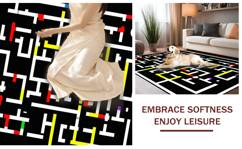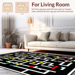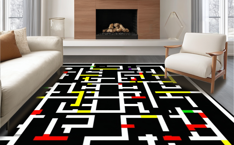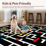 Ultra Soft Area Rug, Non Slip, Stain Resistant, Washable Area Rugs for Living Room, Bedroom, Chic Vibrant Circular Design(Black) Overview: