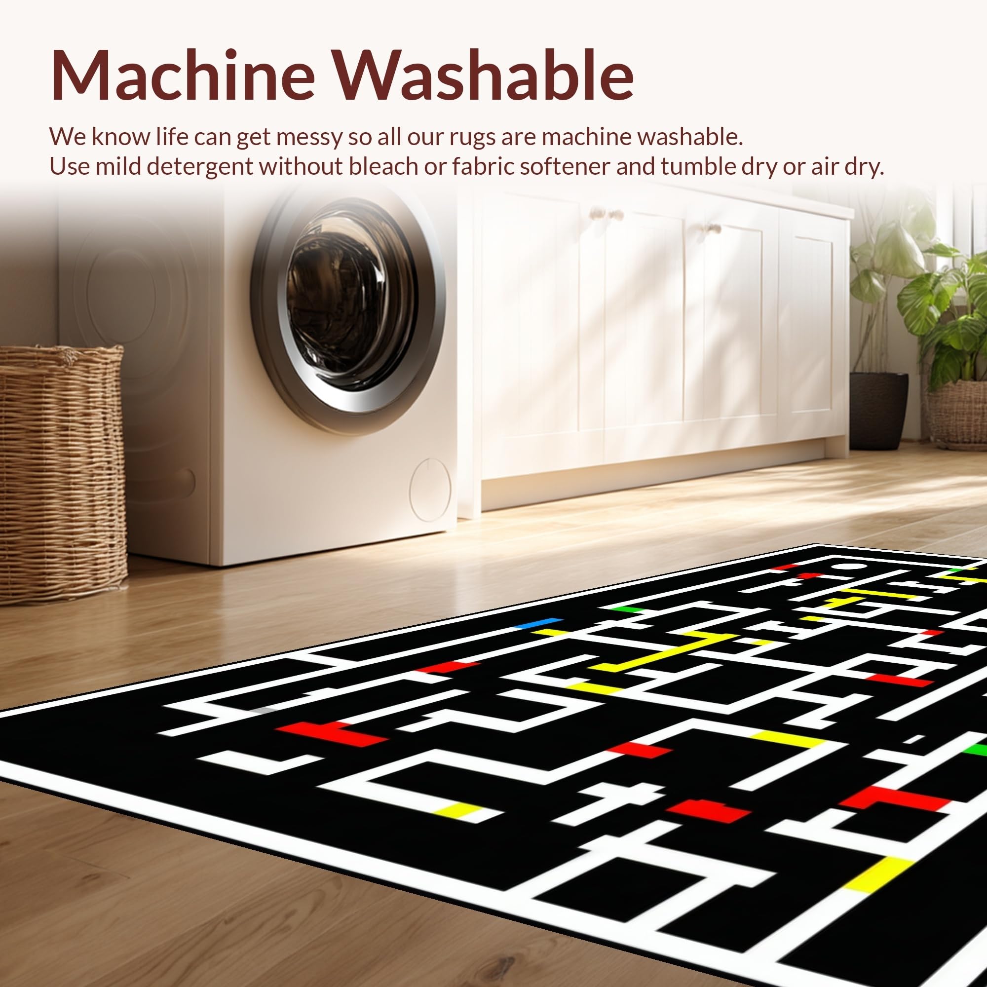- Machine Washable: Our rugs can be easily thrown in the wash machine.