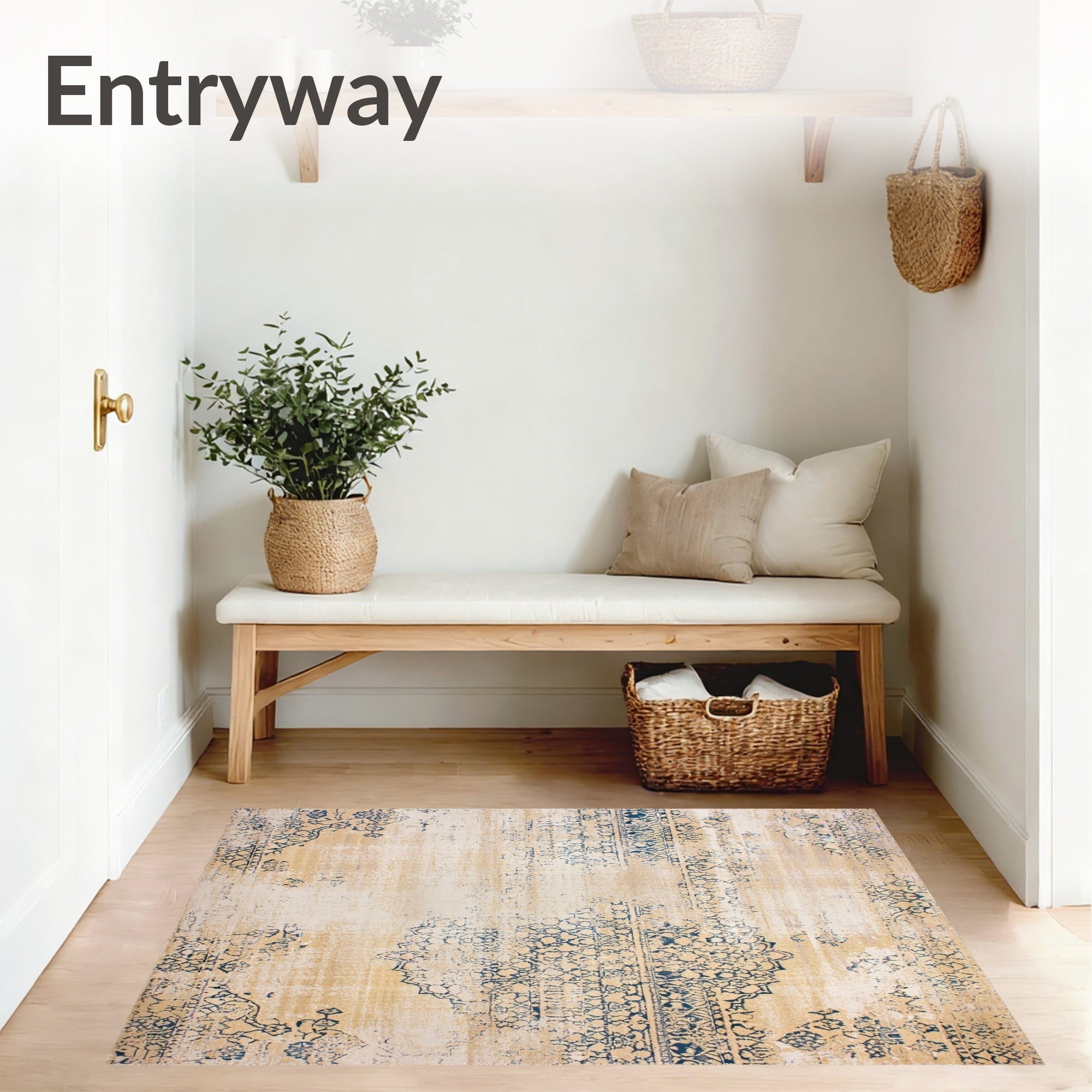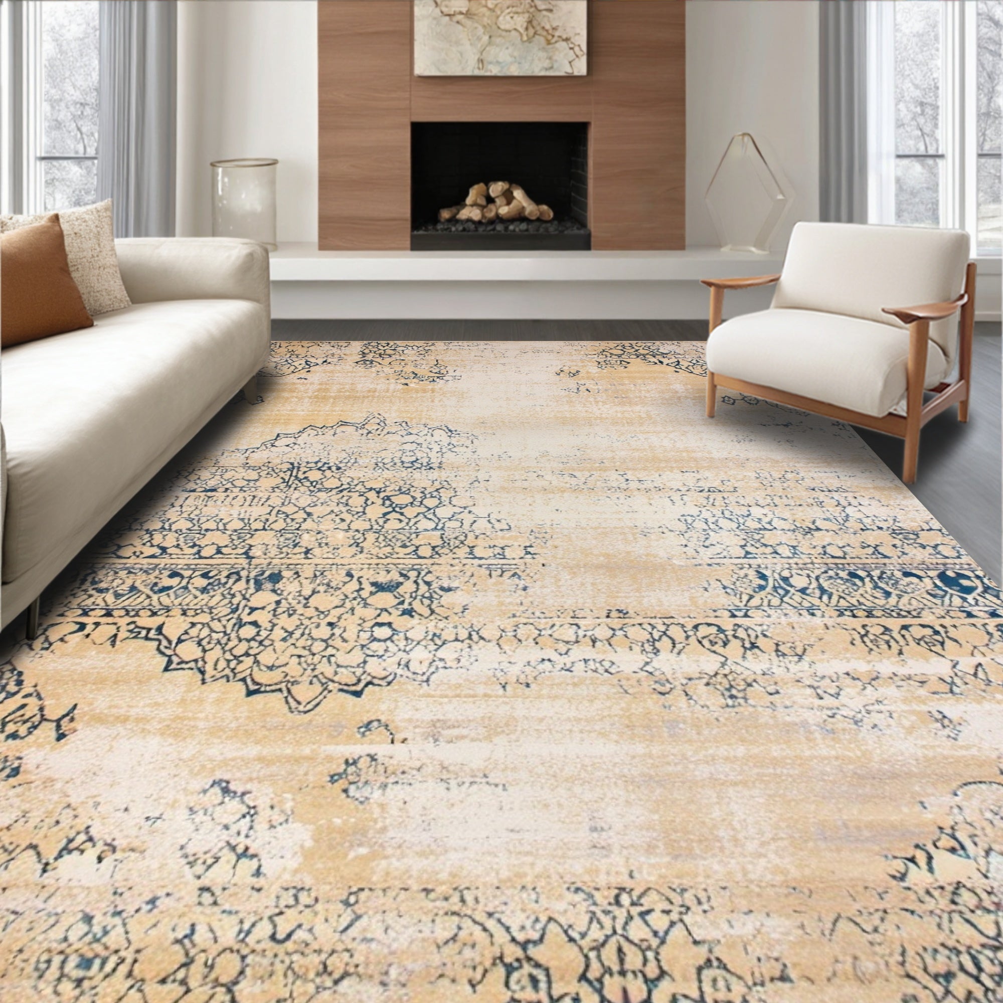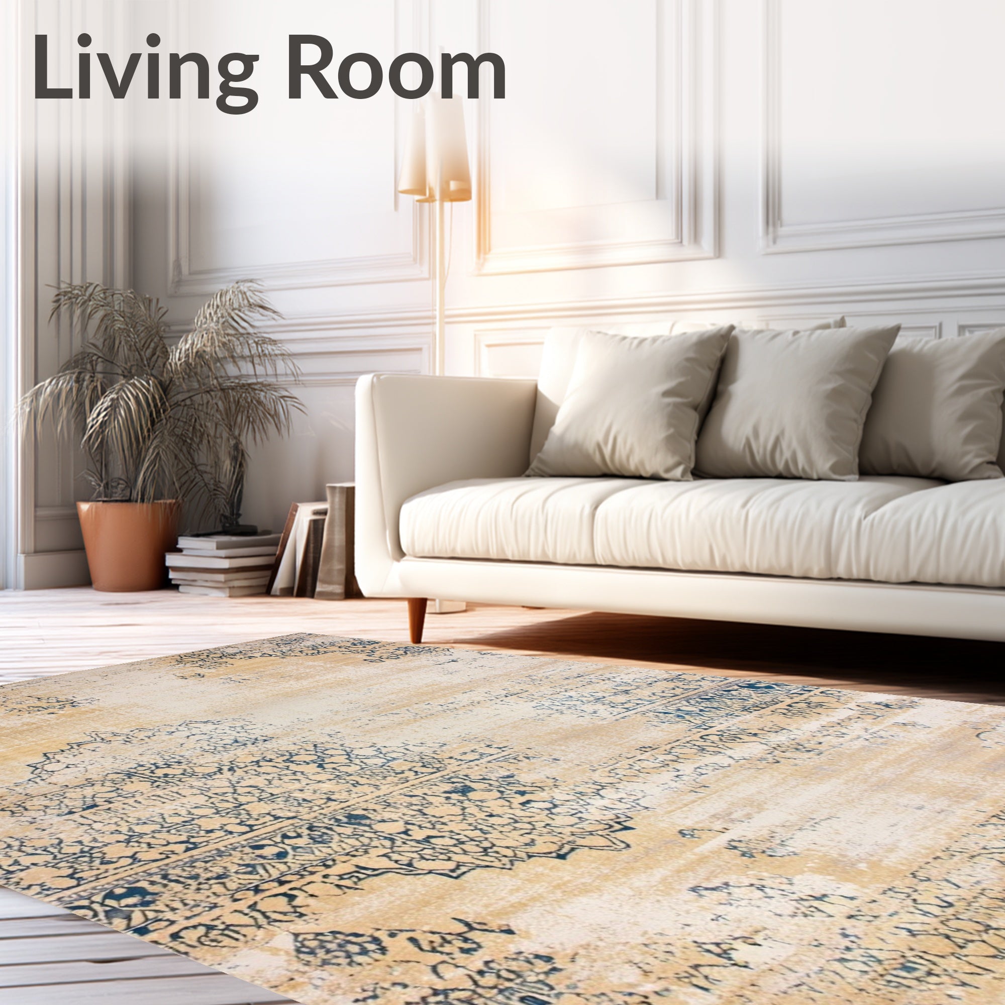 Ultra Soft Area Rug, Non Slip, Stain Resistant, Washable Area Rugs for Living Room, Bedroom, Chic Vintage Area Distressed Farmhouse Design(Beige) Overview: