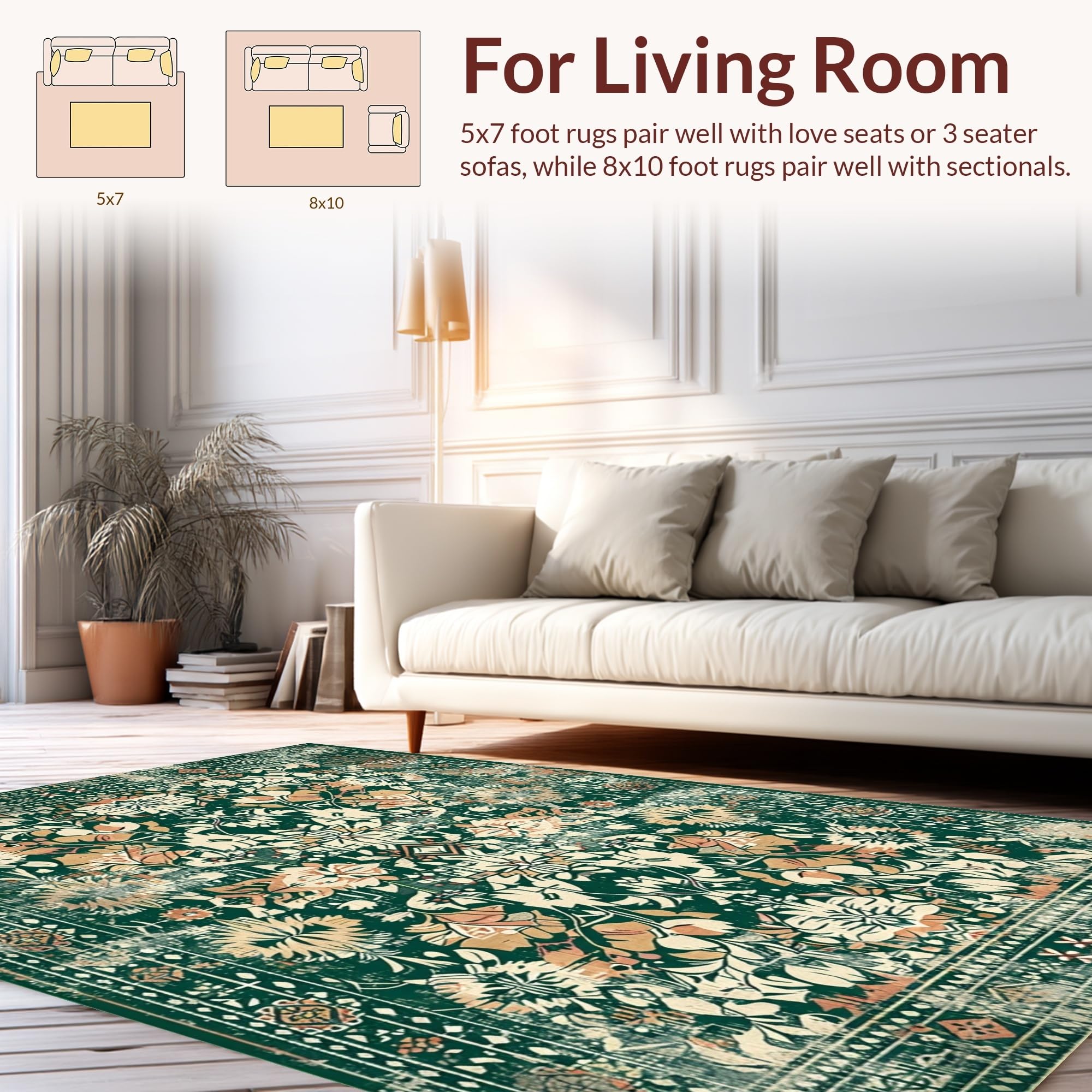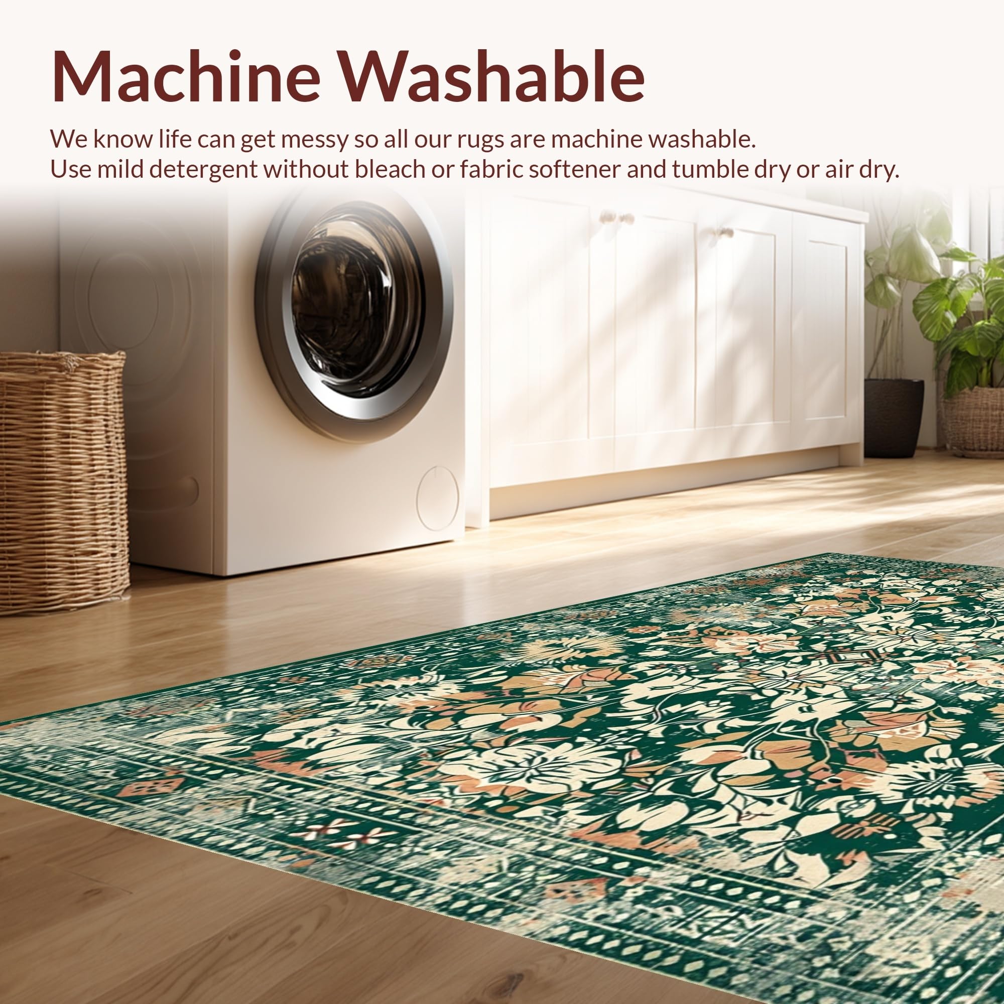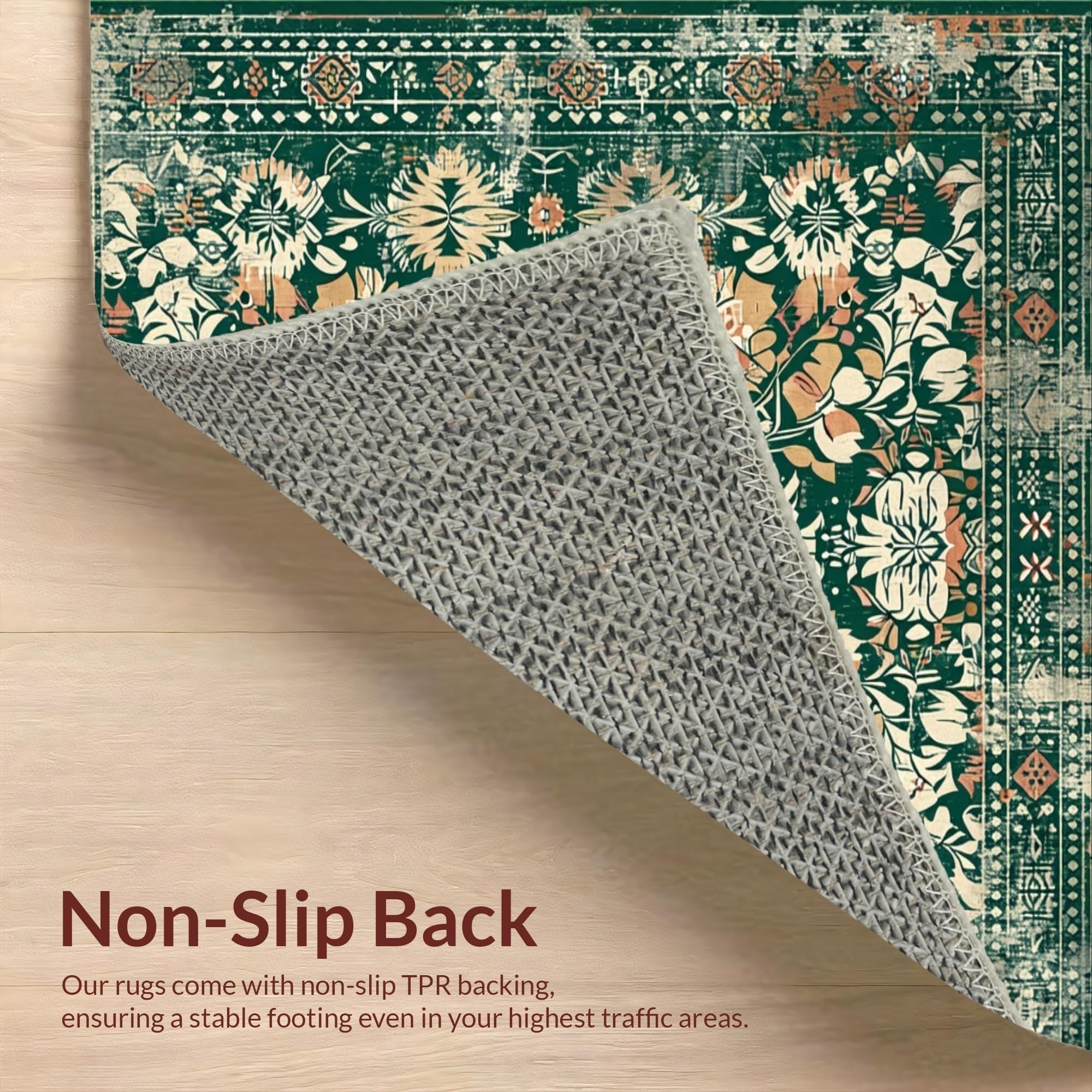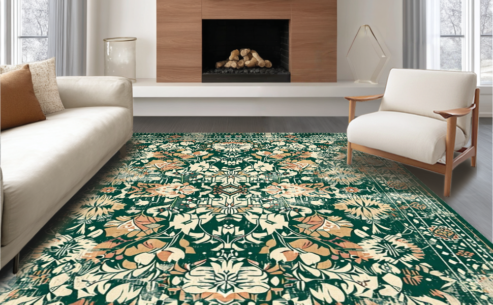 Ultra Soft Area Rug, Non Slip, Stain Resistant, Washable Area Rugs for Living Room, Bedroom, Chic Vintage Botanical Design(Green) Overview: