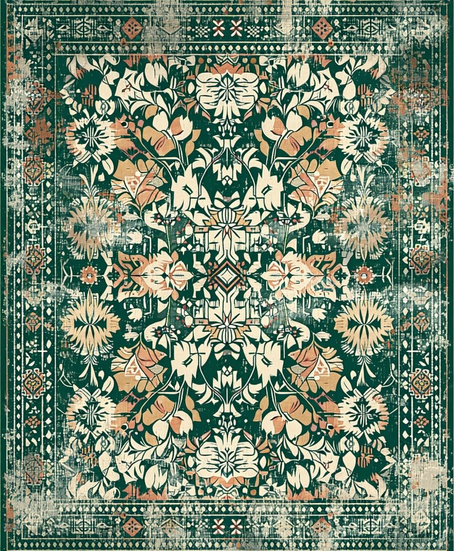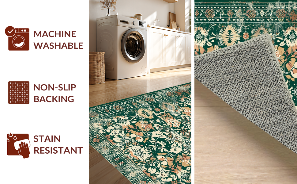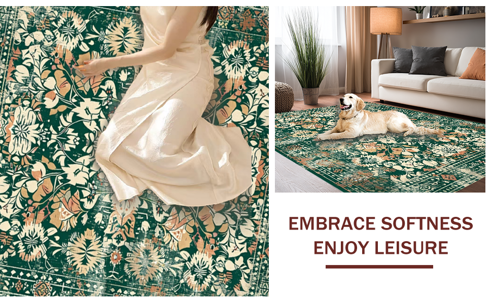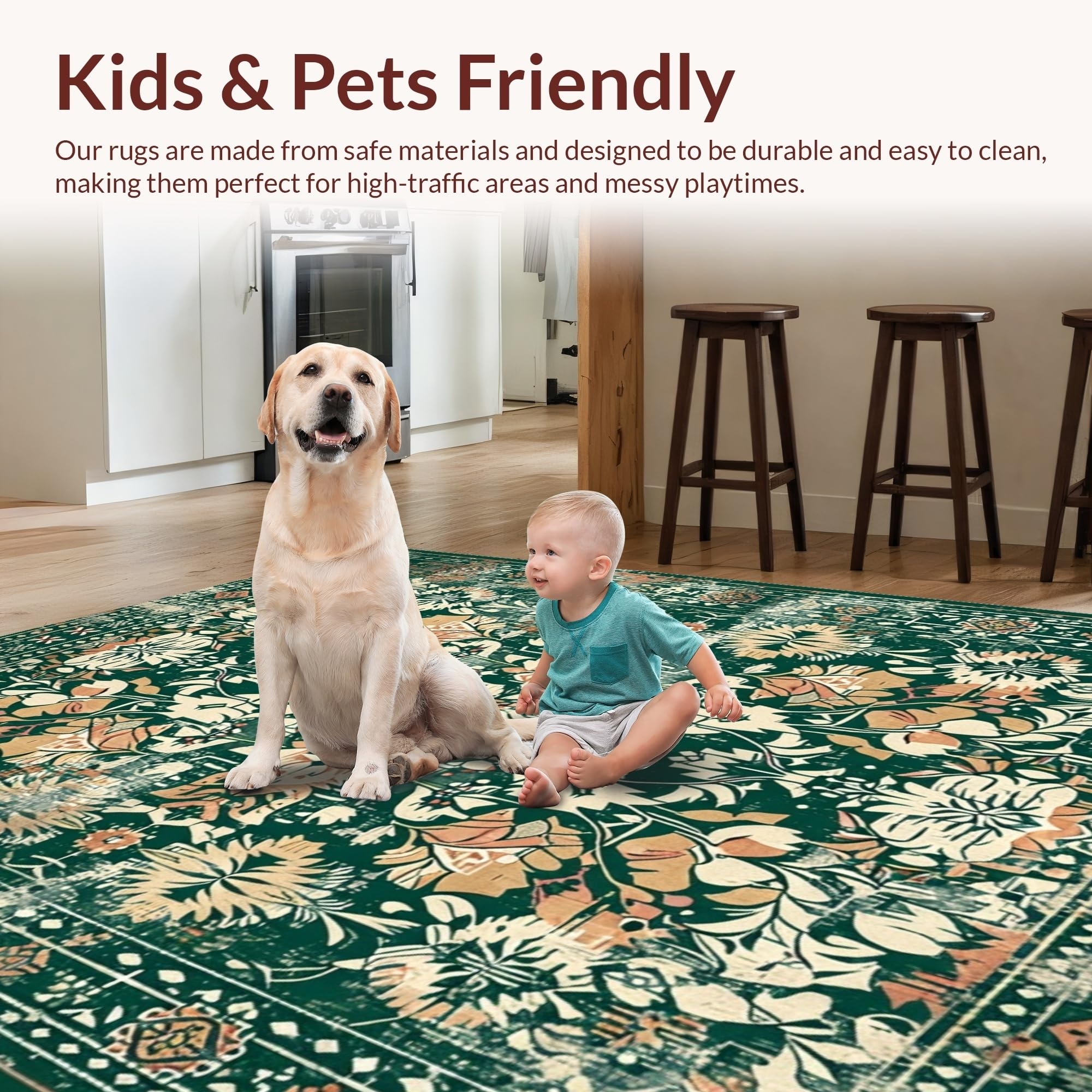 Ultra Soft Area Rug, Non Slip, Stain Resistant, Washable Area Rugs for Living Room, Bedroom, Chic Vintage Botanical Design(Green) Overview: