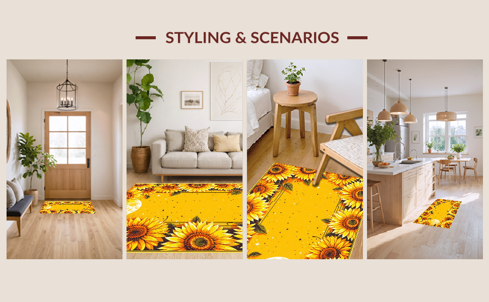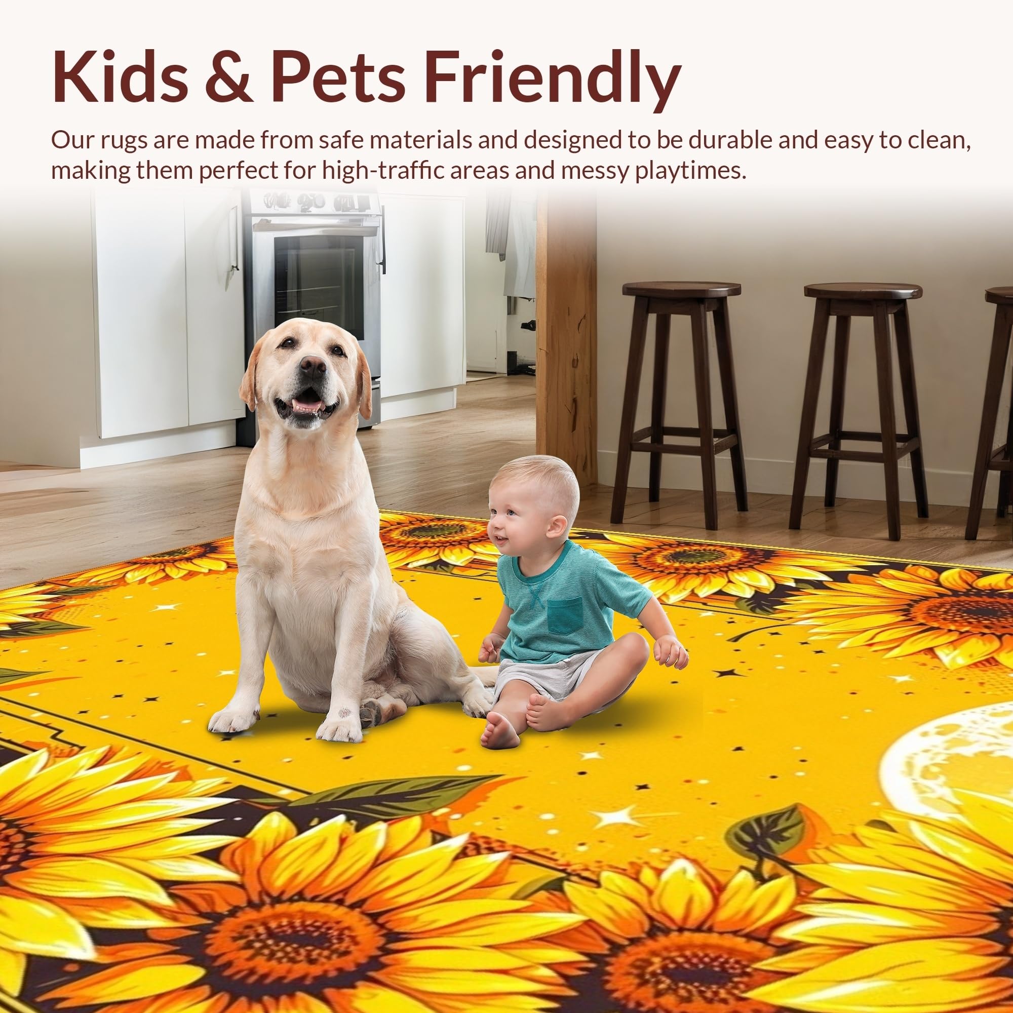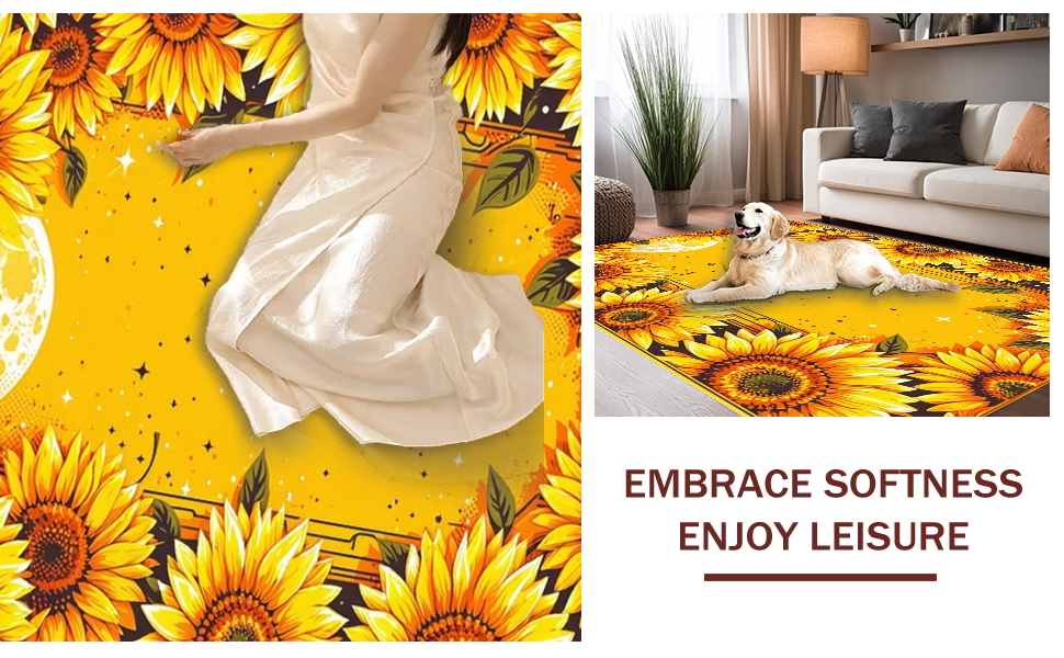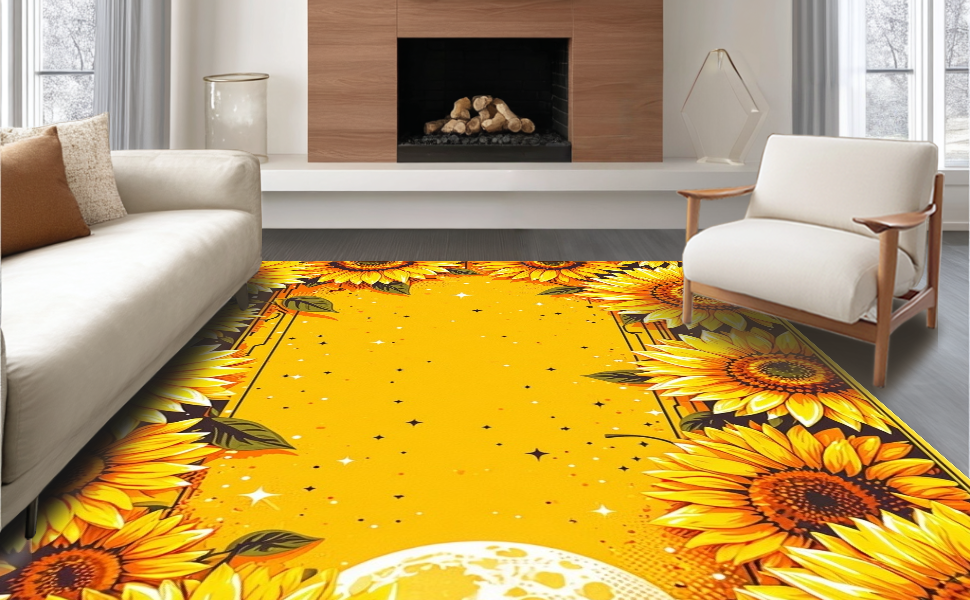 Ultra Soft Area Rug, Non Slip, Stain Resistant, Washable Area Rugs for Living Room, Bedroom, Chic Vintage Celestial Arrangement(Yellow) Overview: