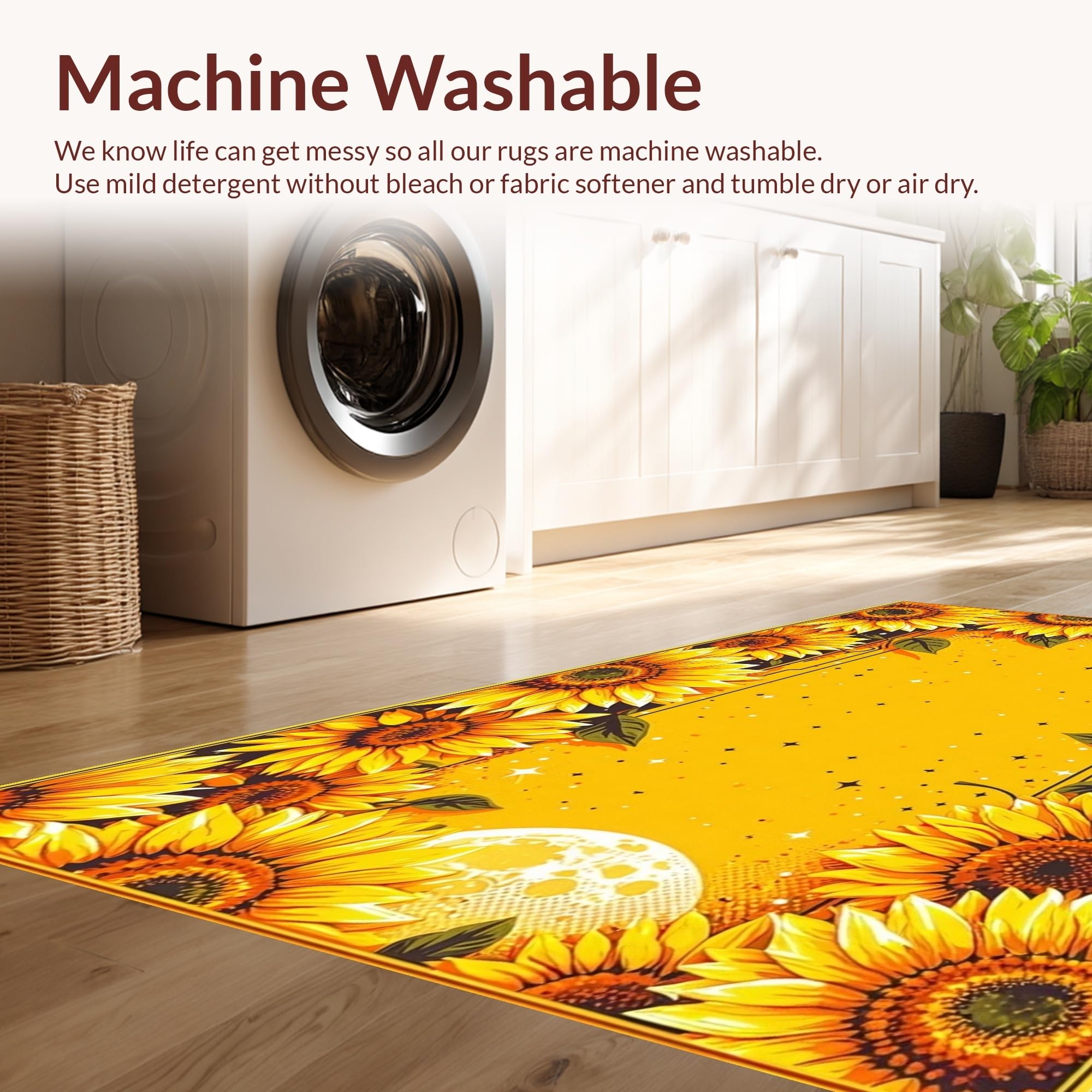 - Machine Washable: Our rugs can be easily thrown in the wash machine.
