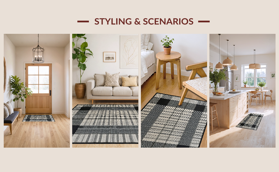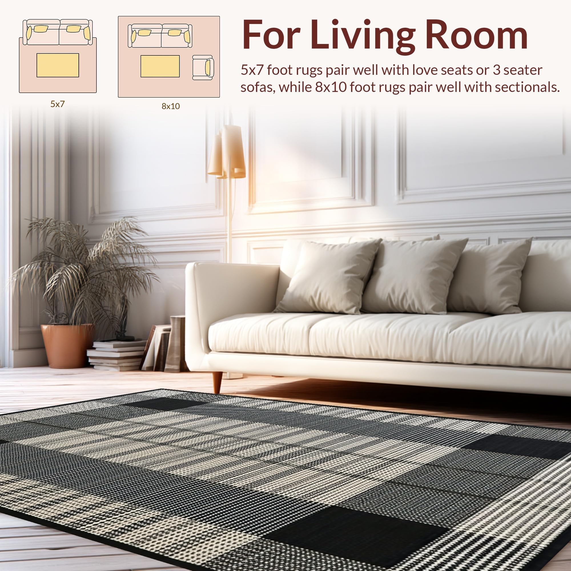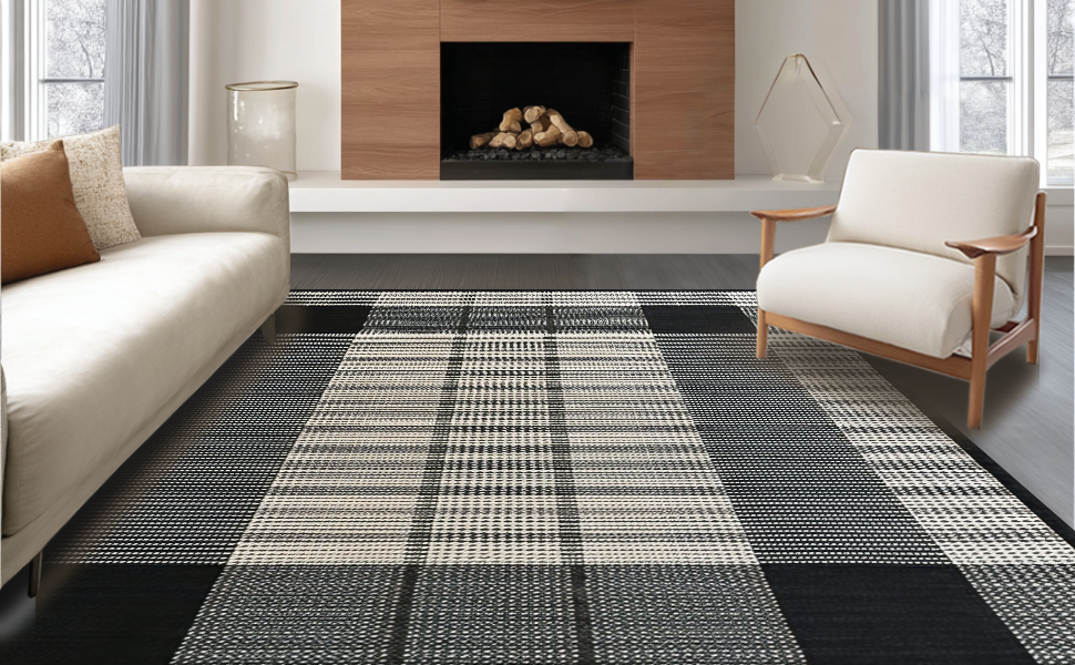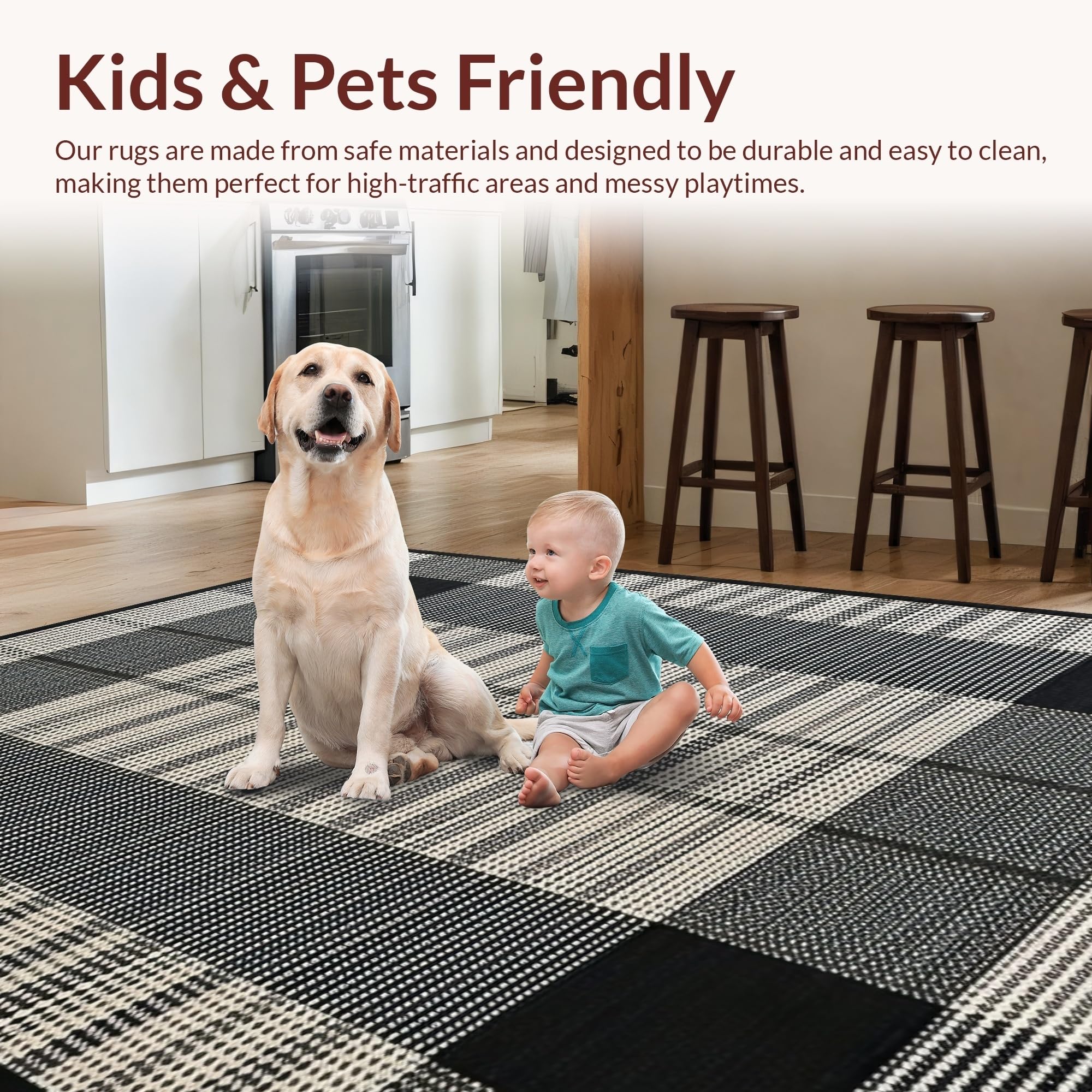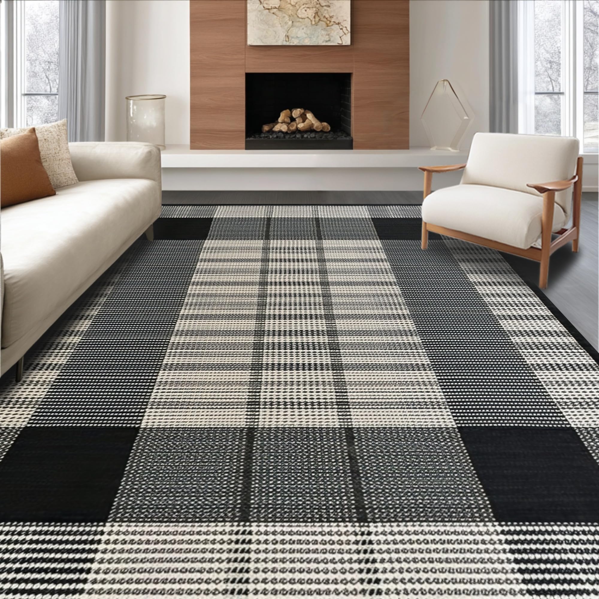 Ultra Soft Area Rug, Non Slip, Stain Resistant, Washable Area Rugs for Living Room, Bedroom, Chic Vintage Diamond Configuration(Black) Overview: