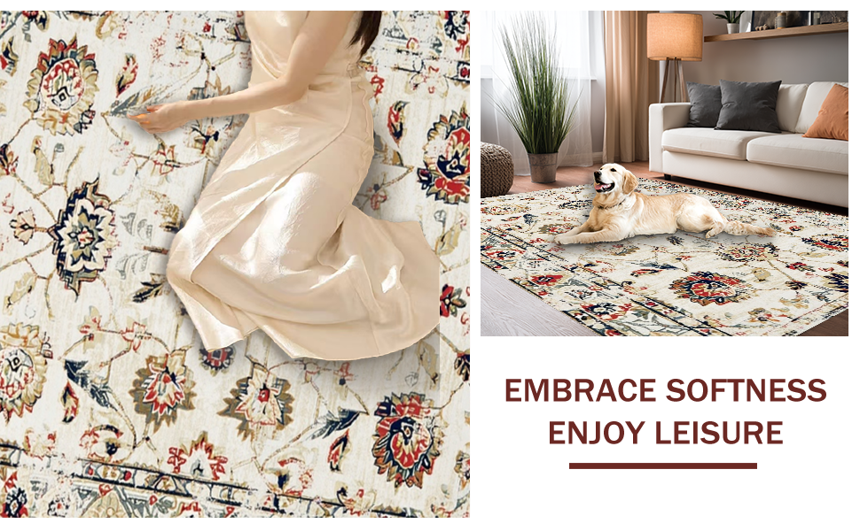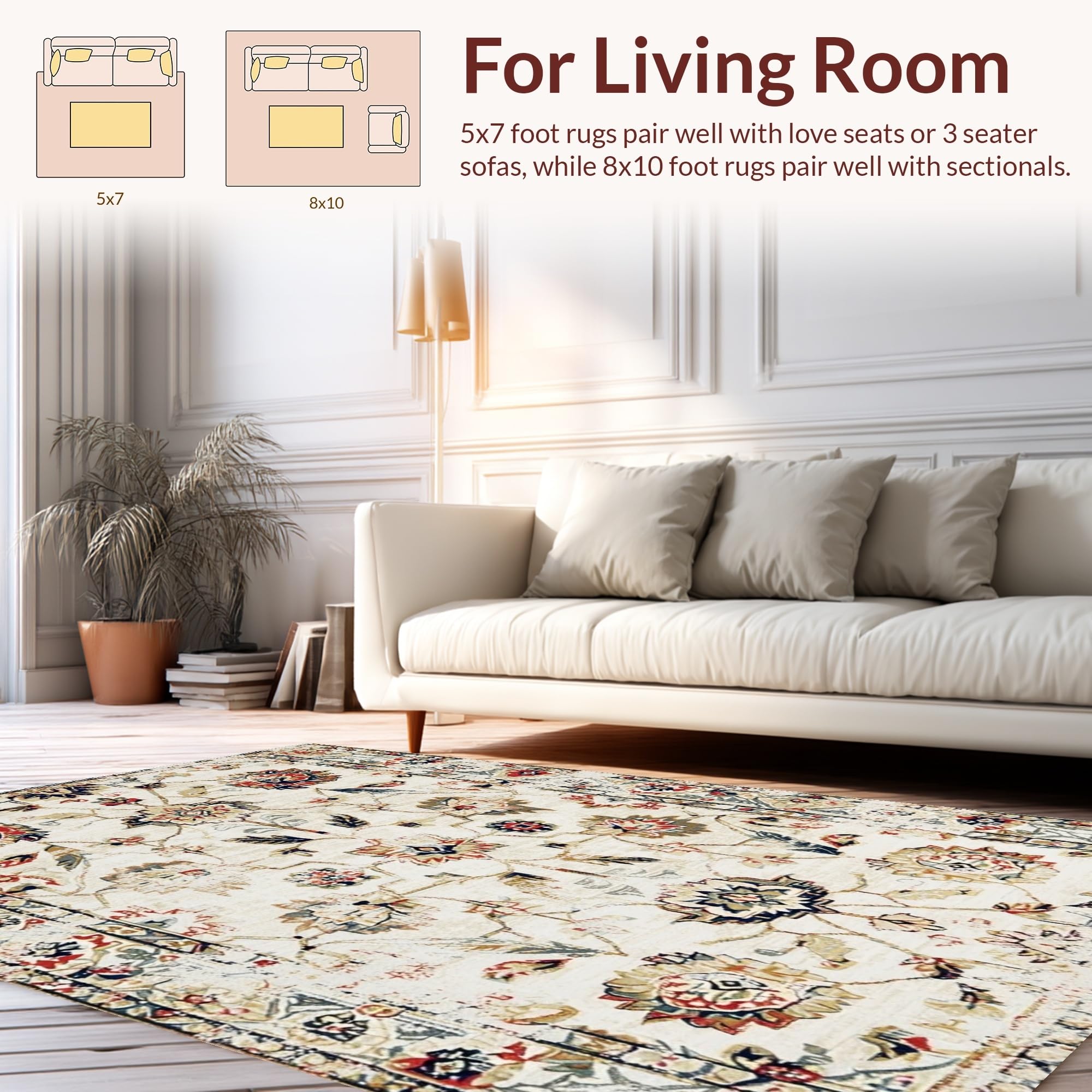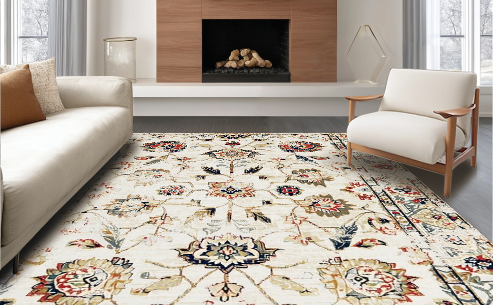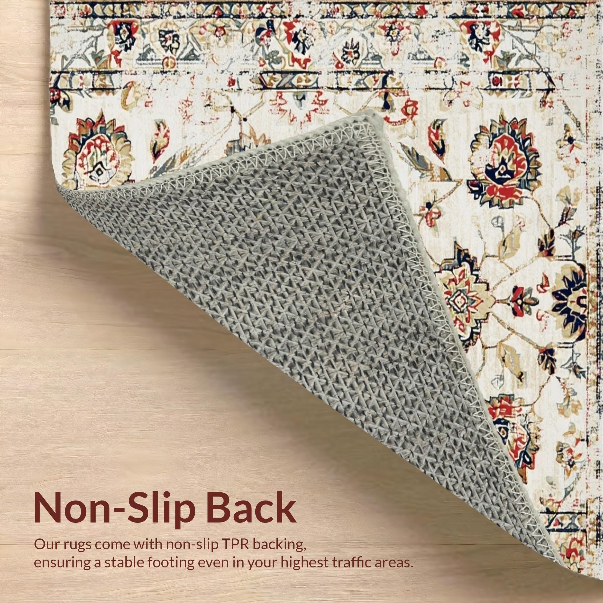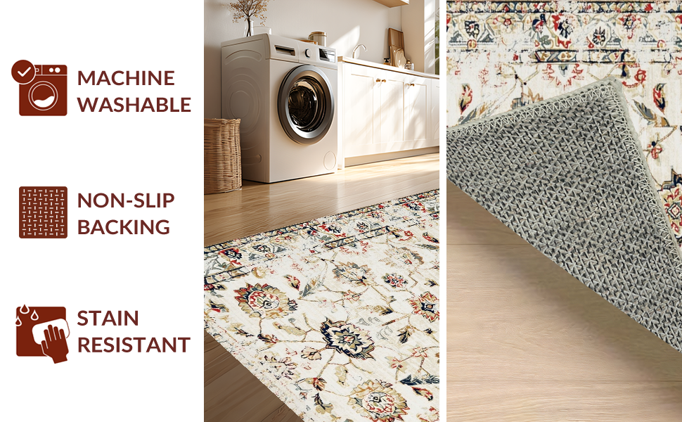 Ultra Soft Area Rug, Non Slip, Stain Resistant, Washable Area Rugs for Living Room, Bedroom, Chic Vintage Distressed Floral Design(Beige) Overview: