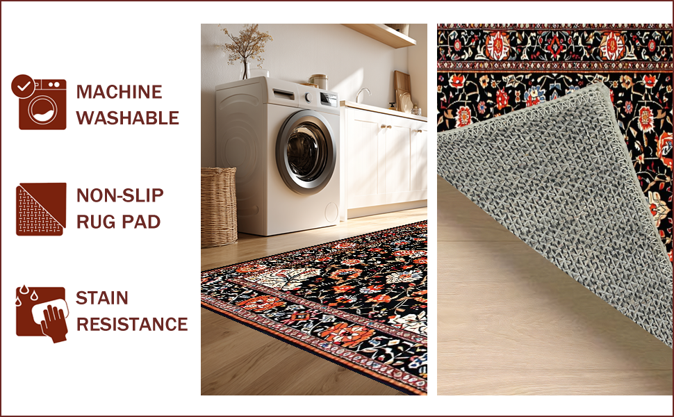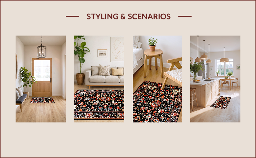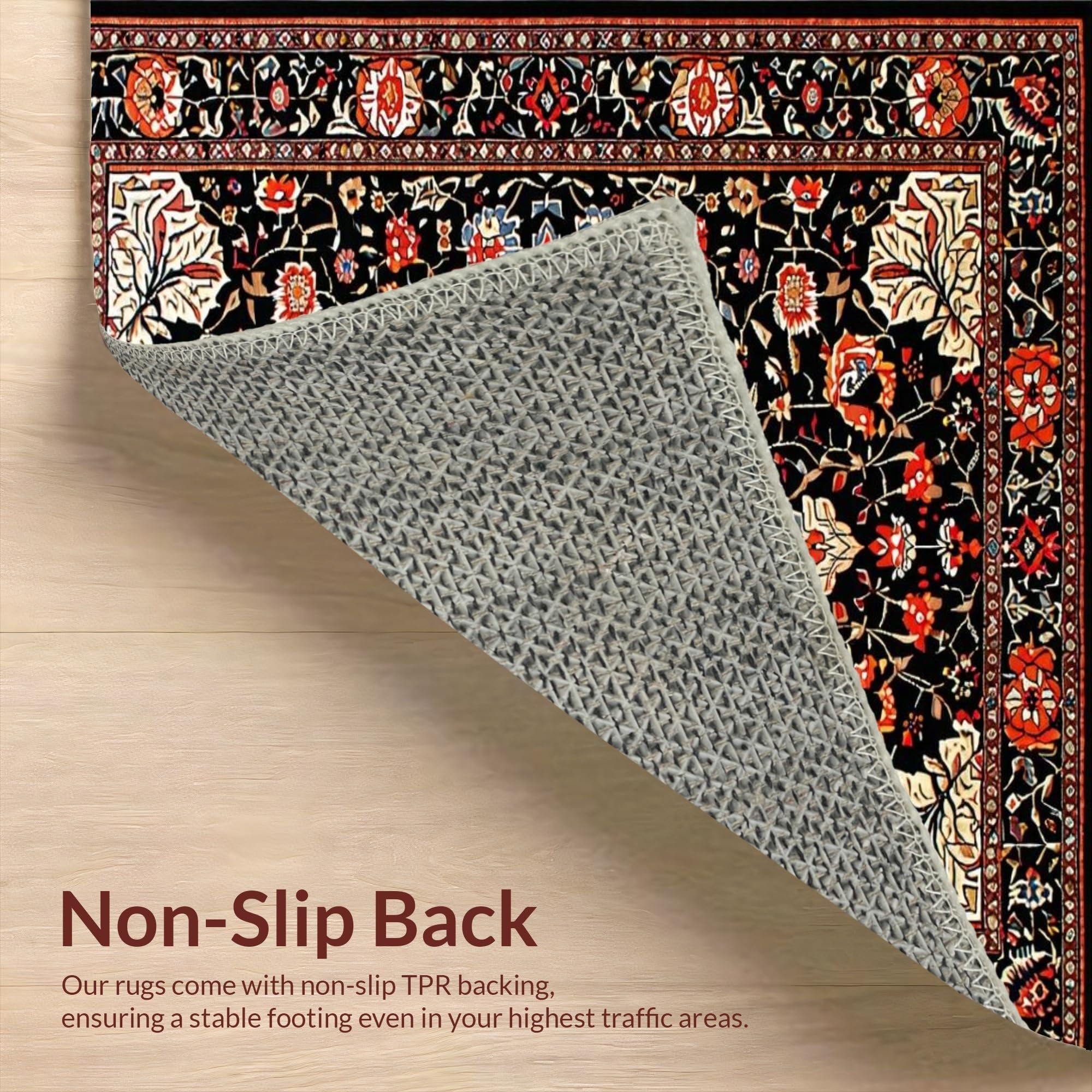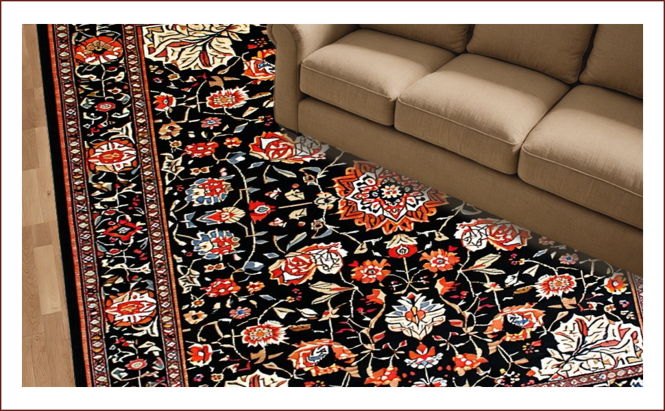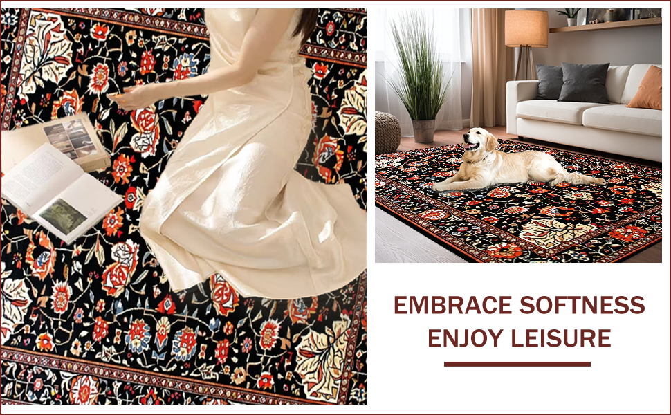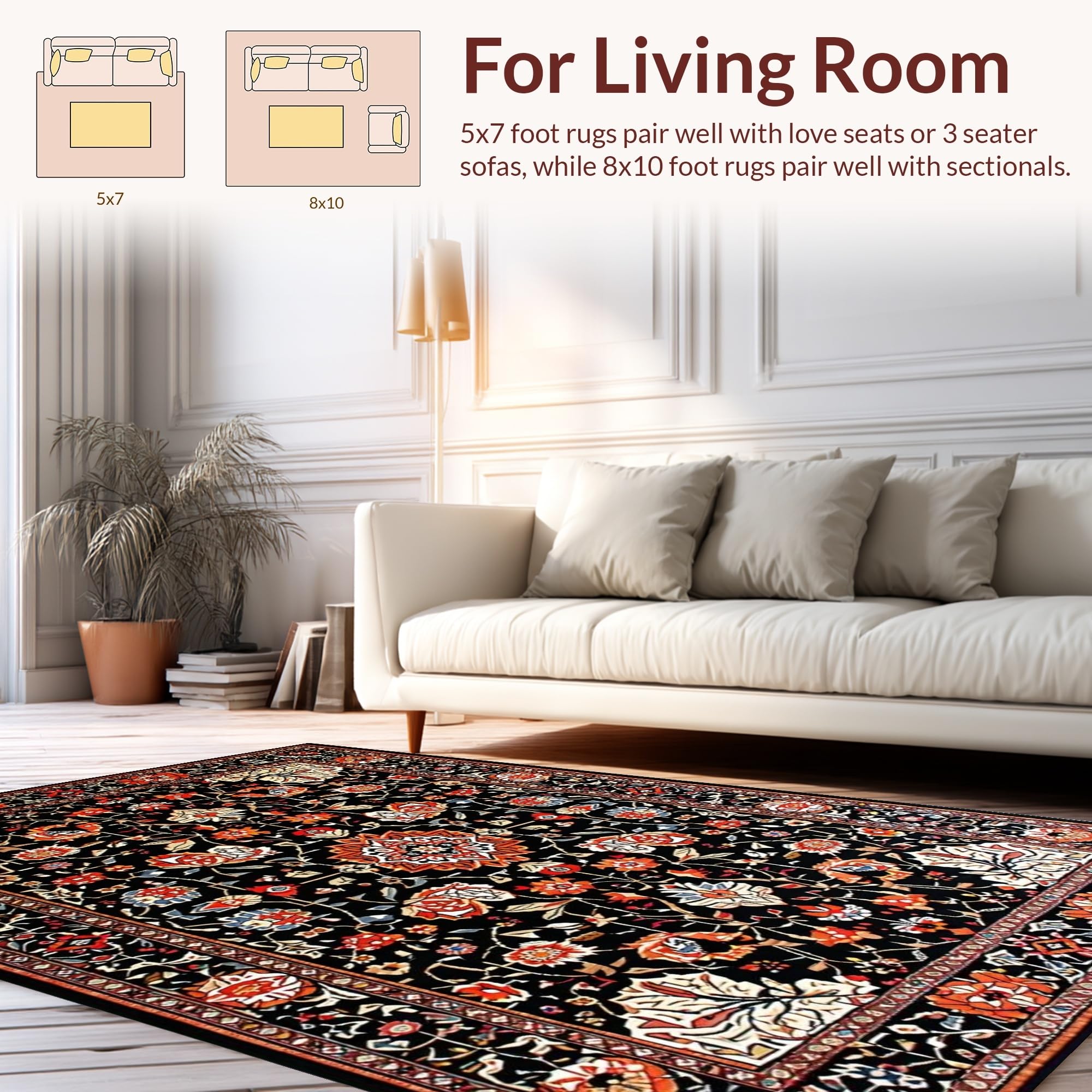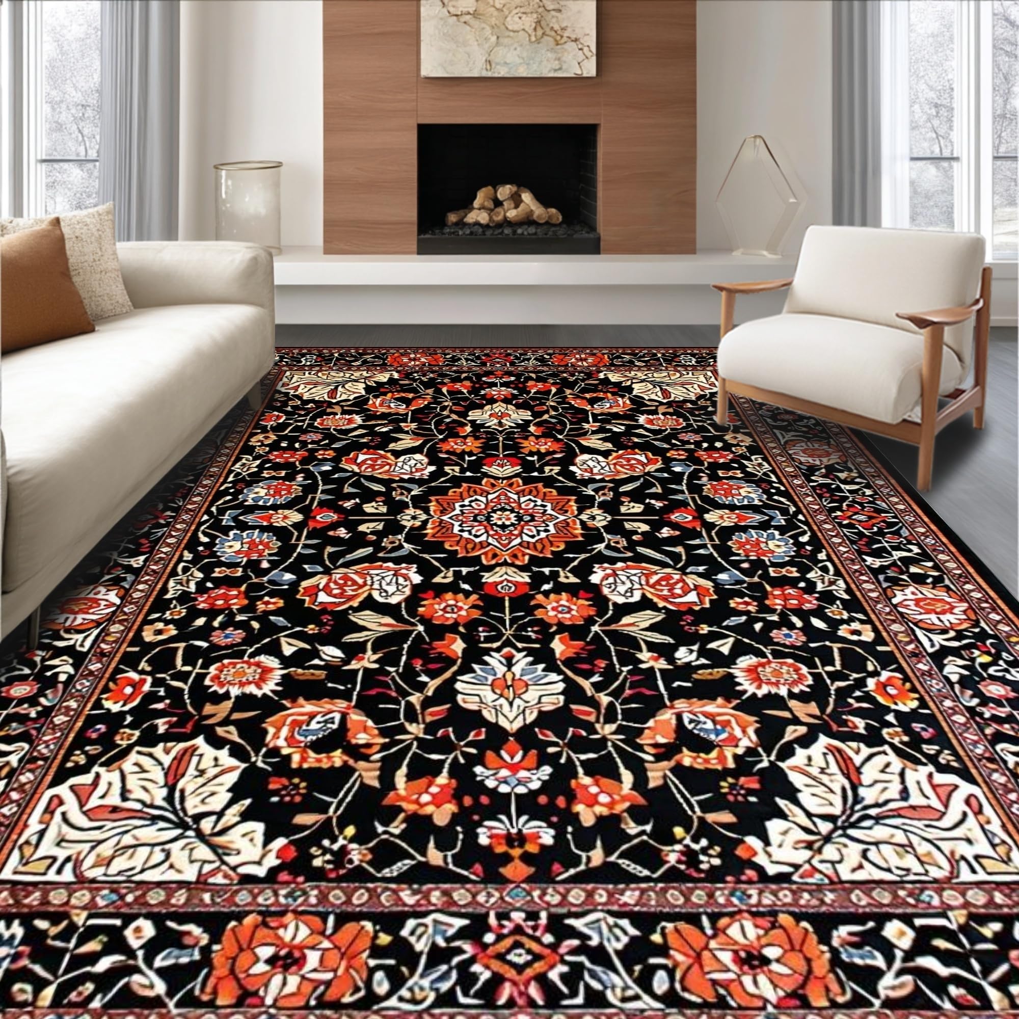 Ultra Soft Area Rug, Non Slip, Stain Resistant, Washable Area Rugs for Living Room, Bedroom, Chic Vintage Floral Aesthetic(Black) Overview:
