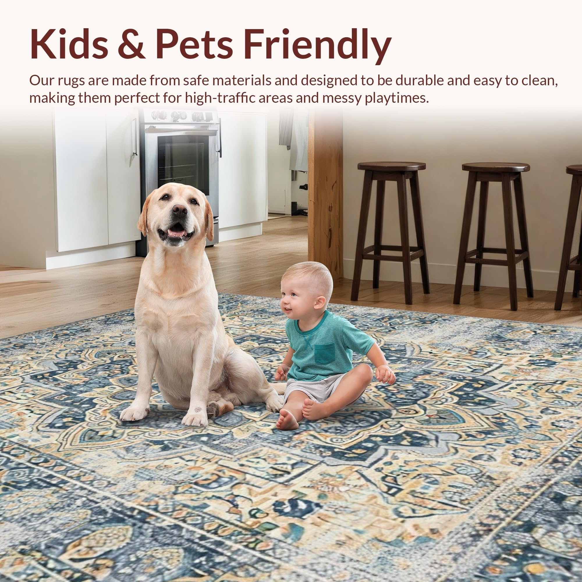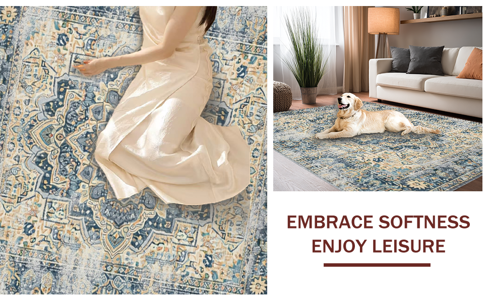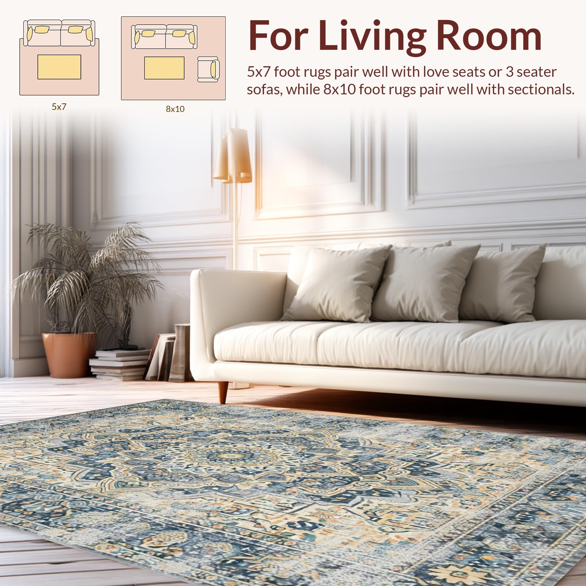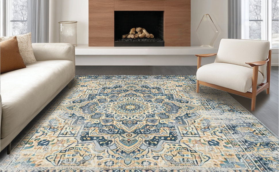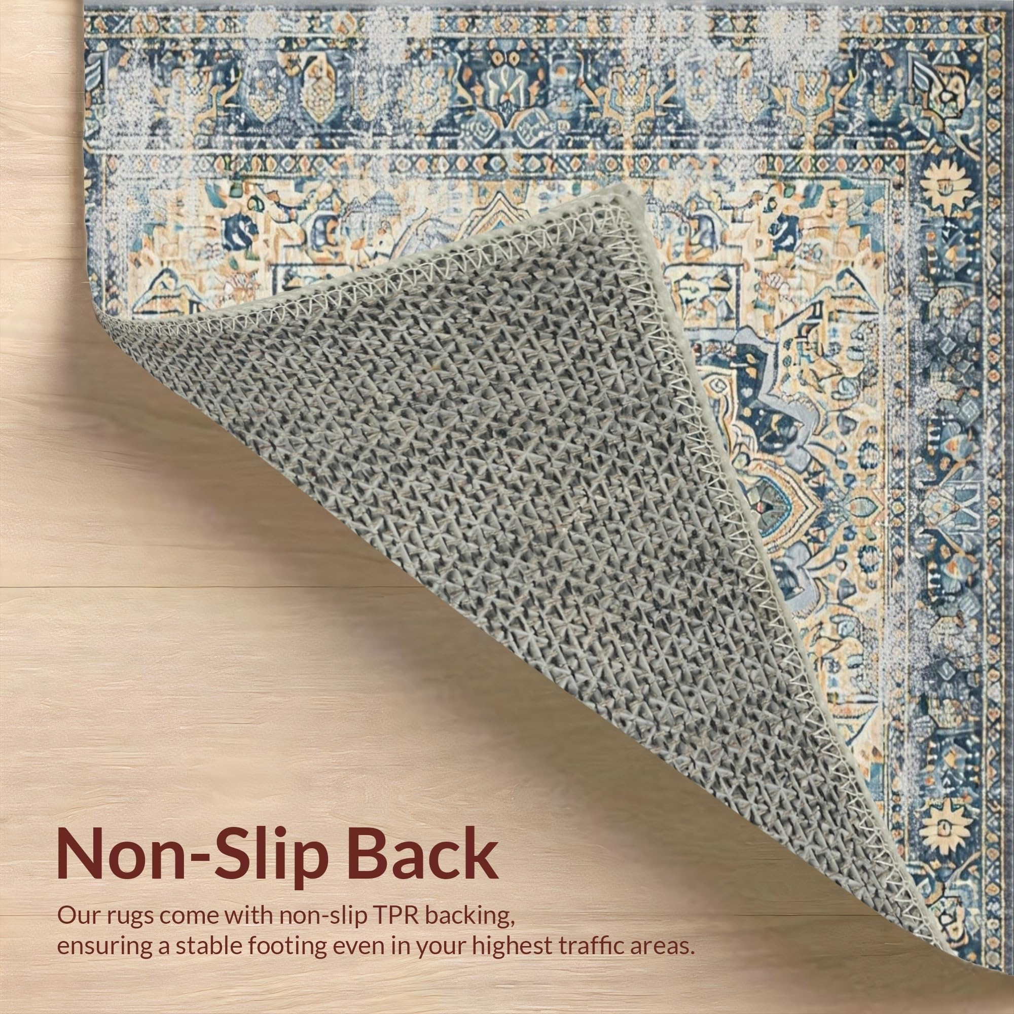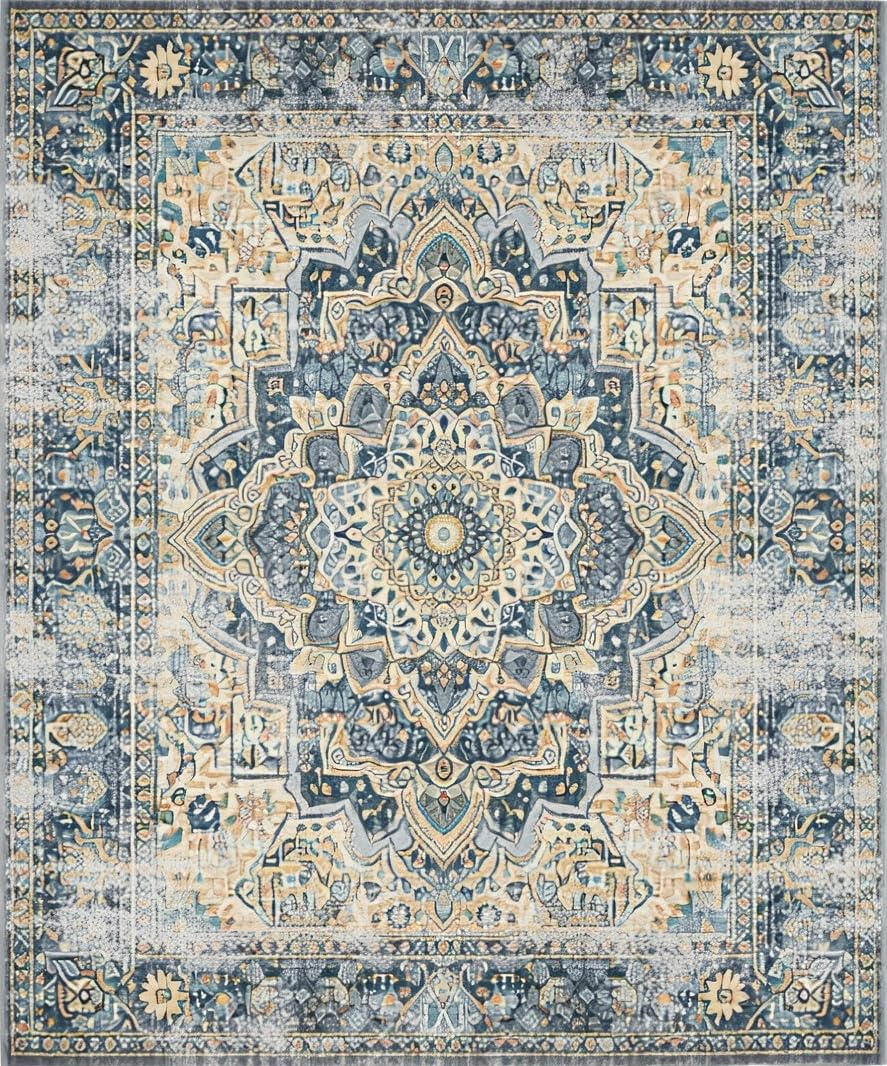 Ultra Soft Area Rug, Non Slip, Stain Resistant, Washable Area Rugs for Living Room, Bedroom, Chic Vintage Floral Medley(Blue) Overview: