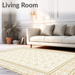 Ultra Soft Area Rug, Non Slip, Stain Resistant, Washable Area Rugs for Living Room, Bedroom, Chic Vintage Inspired Area Runner with Unique Design Elements(Beige) Overview: