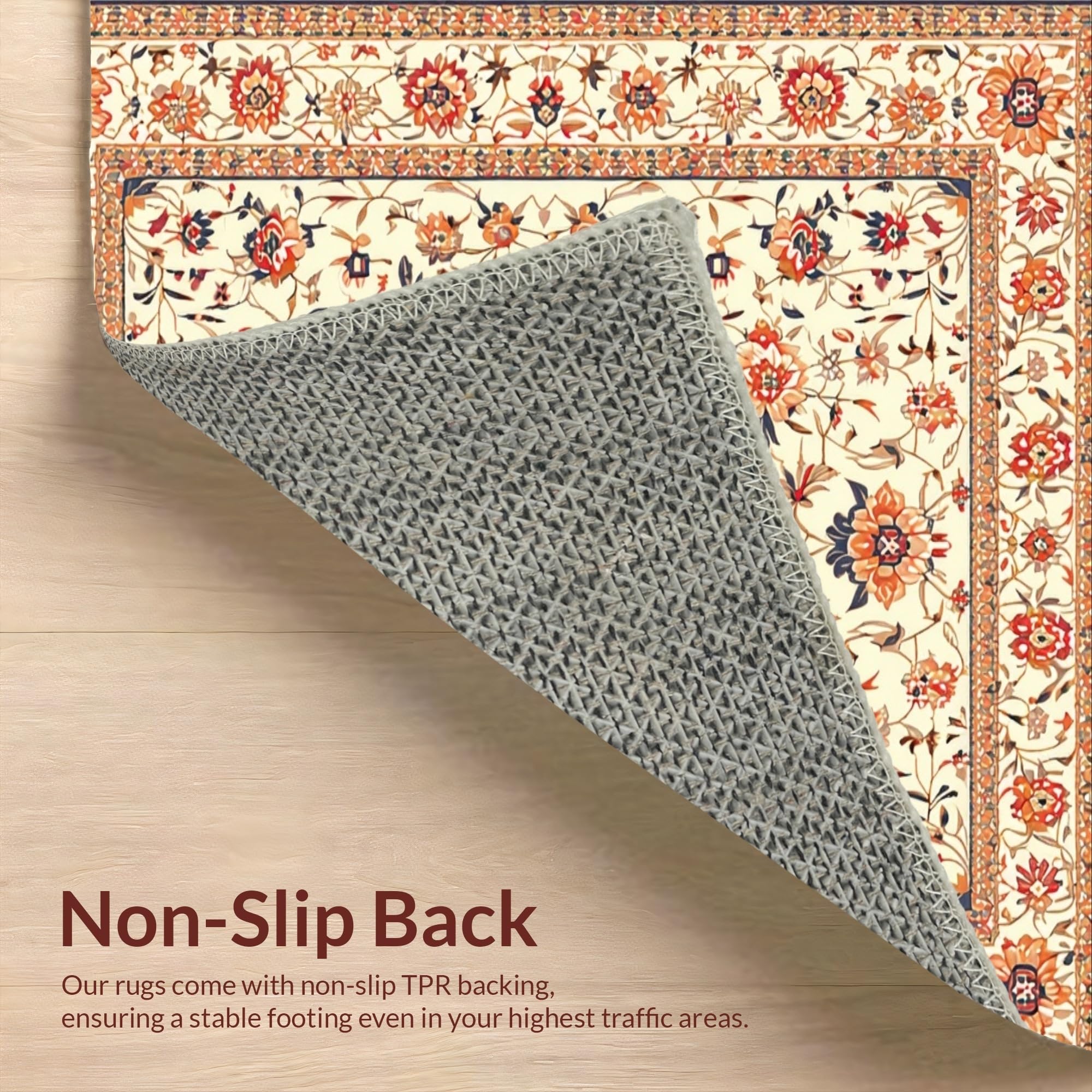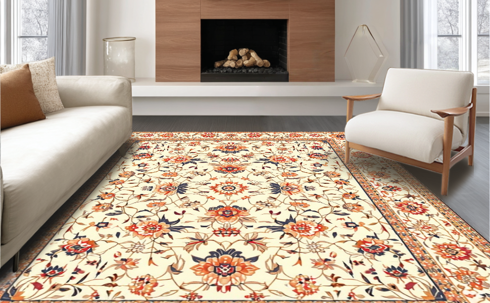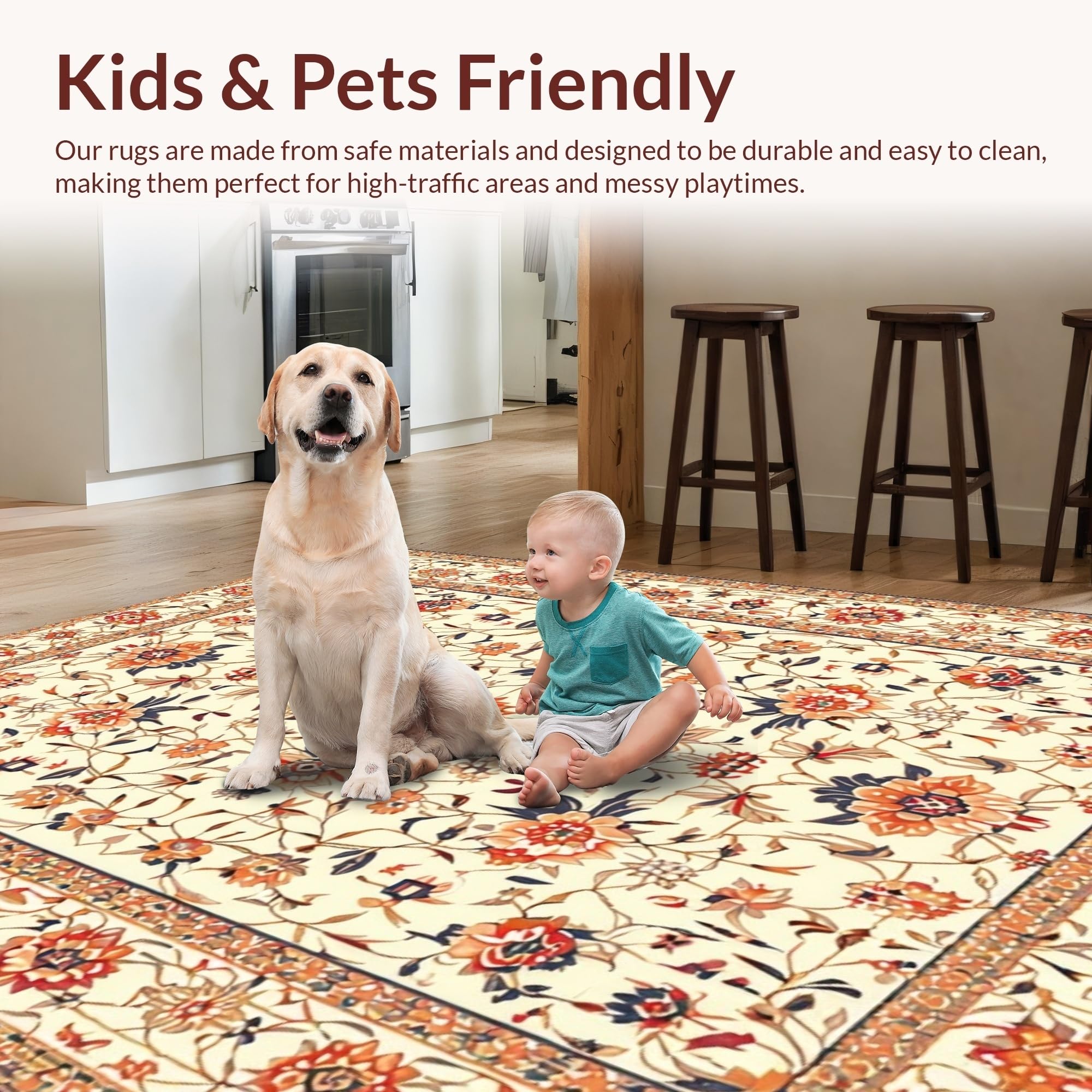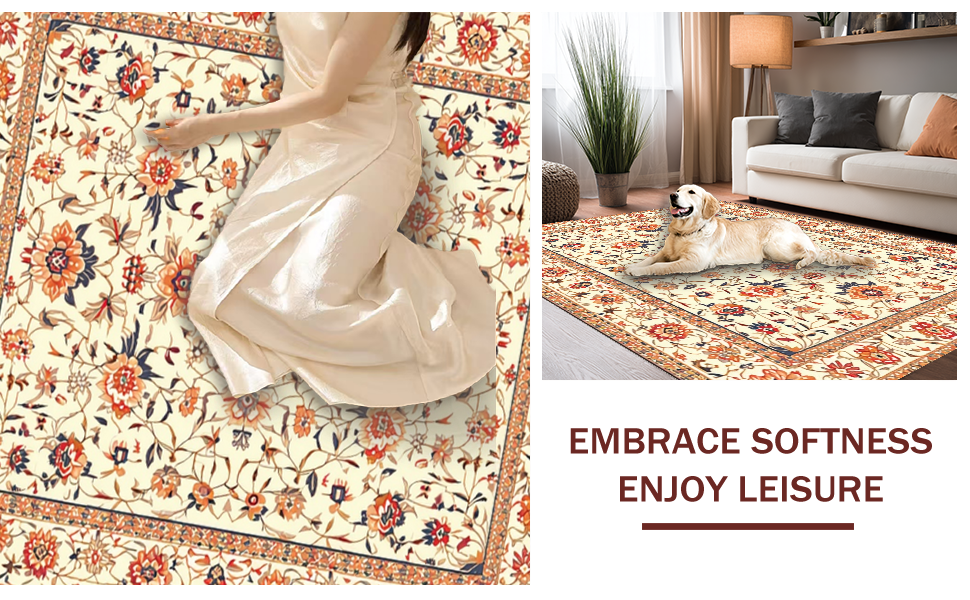 Ultra Soft Area Rug, Non Slip, Stain Resistant, Washable Area Rugs for Living Room, Bedroom, Chic Vintage Inspired Petal Design(Beige) Overview: