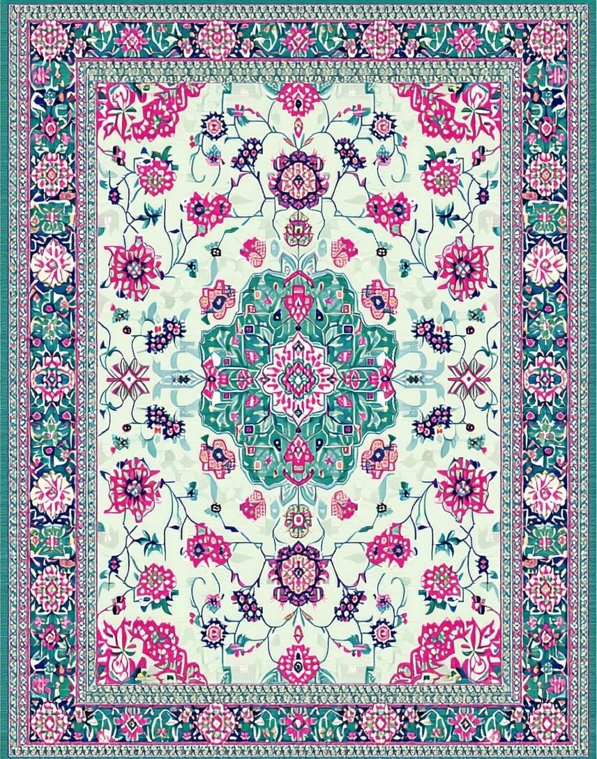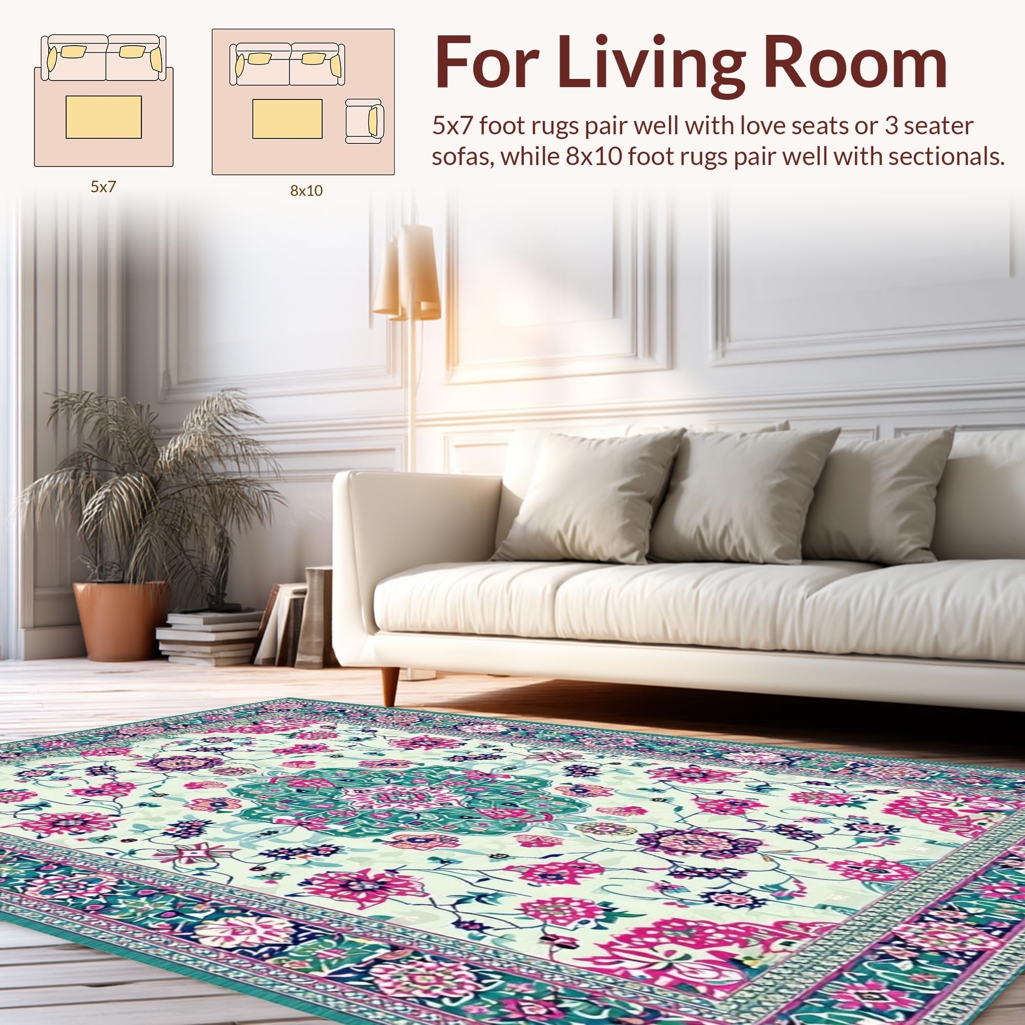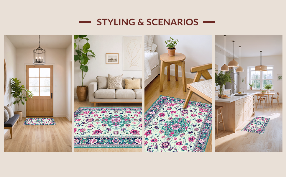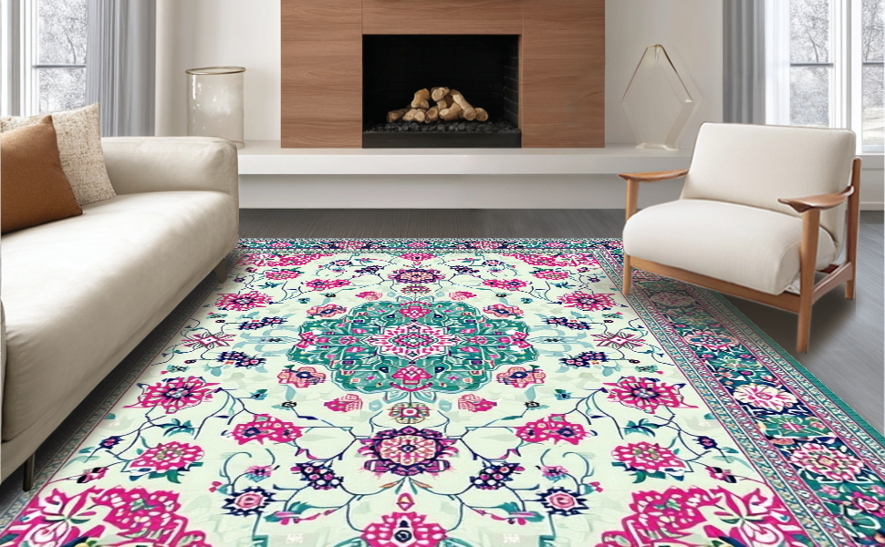 Ultra Soft Area Rug, Non Slip, Stain Resistant, Washable Area Rugs for Living Room, Bedroom, Chic Vintage Inspired Print(Ivory) Overview: