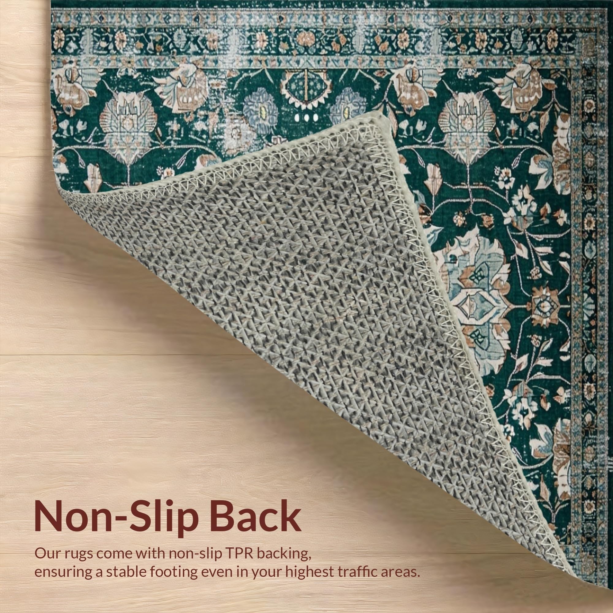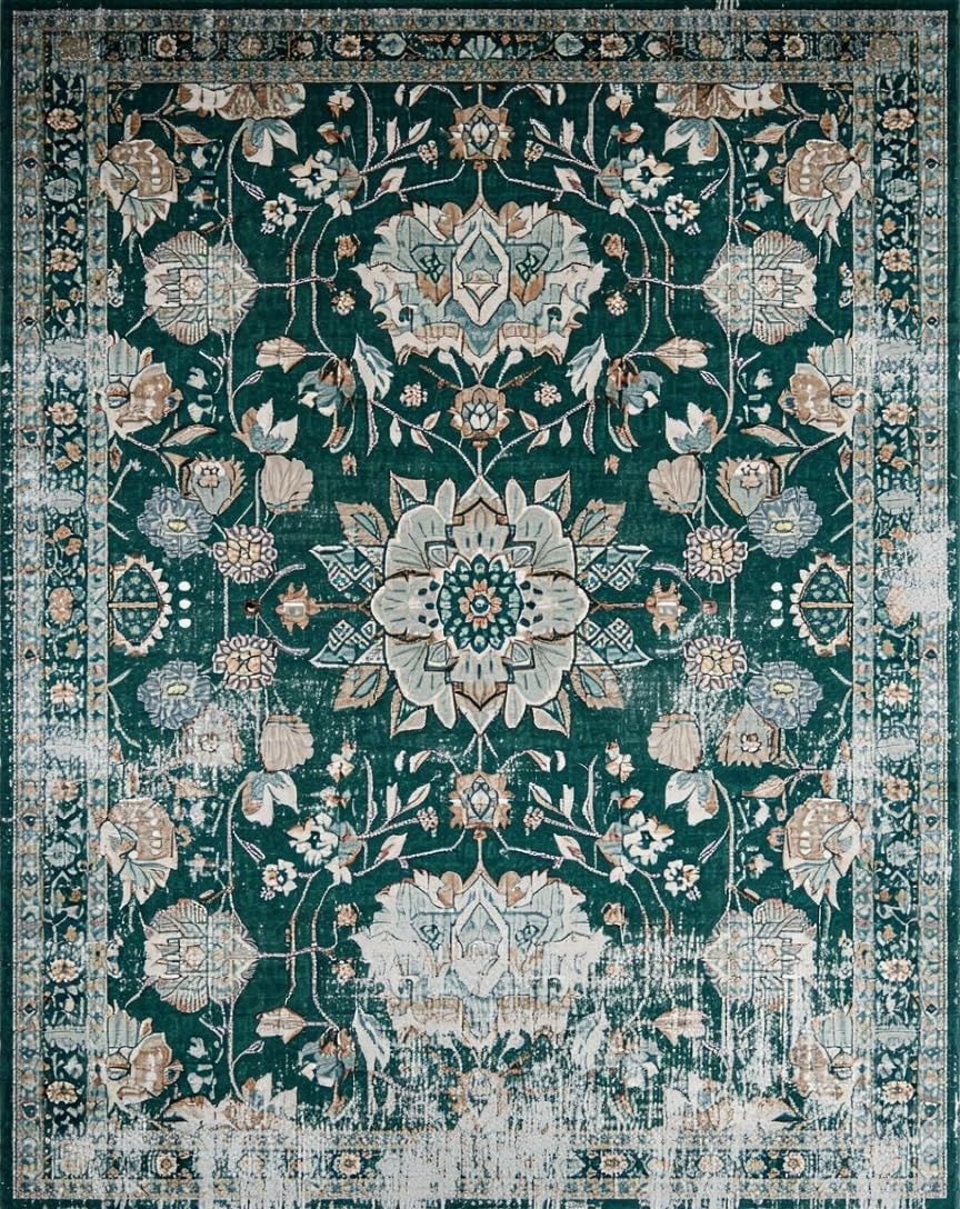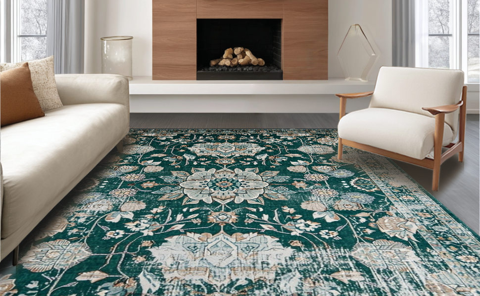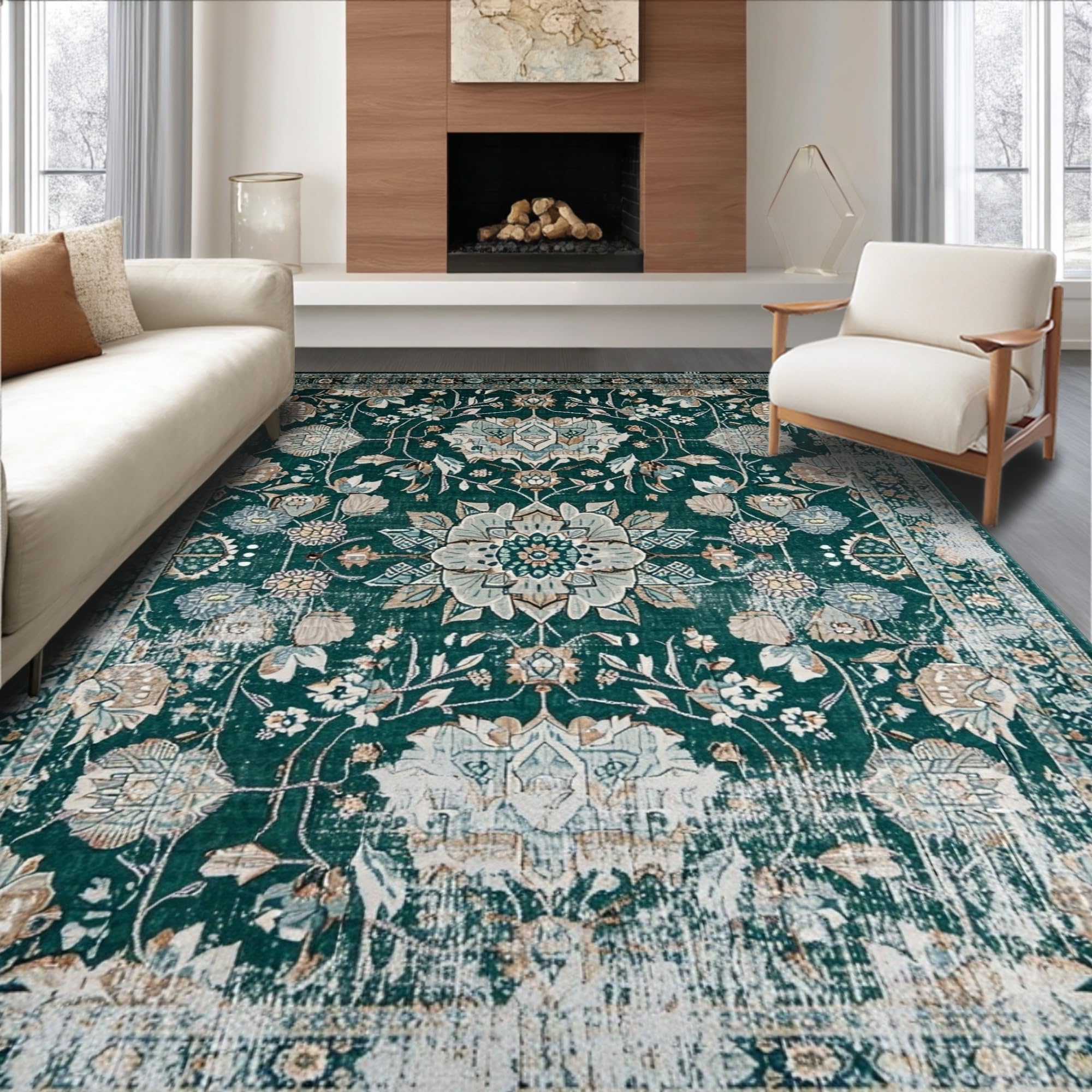 Ultra Soft Area Rug, Non Slip, Stain Resistant, Washable Area Rugs for Living Room, Bedroom, Chic Vintage Lattice Arrangement(Green) Overview: