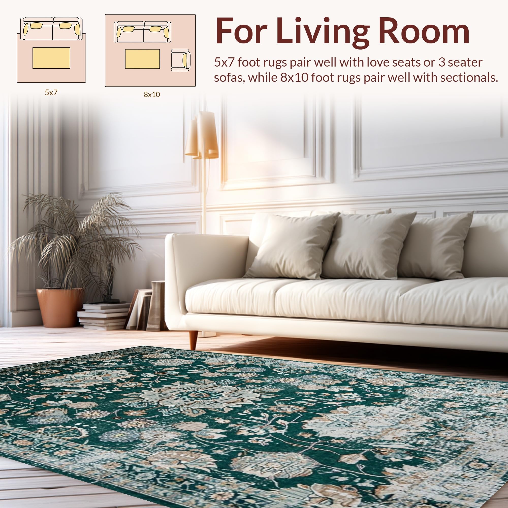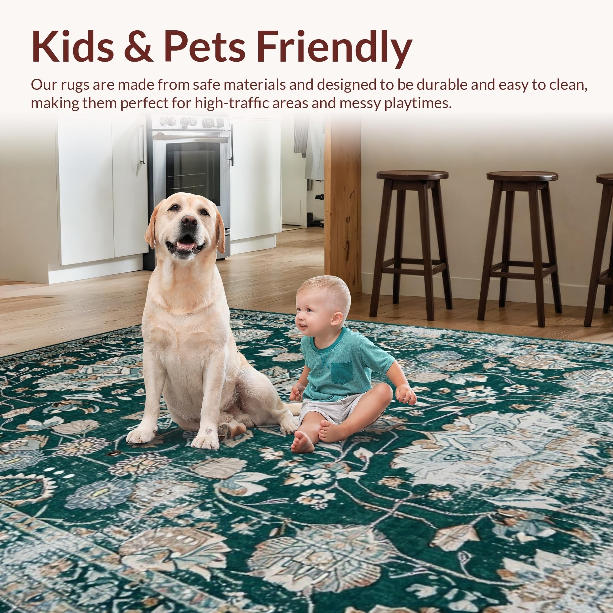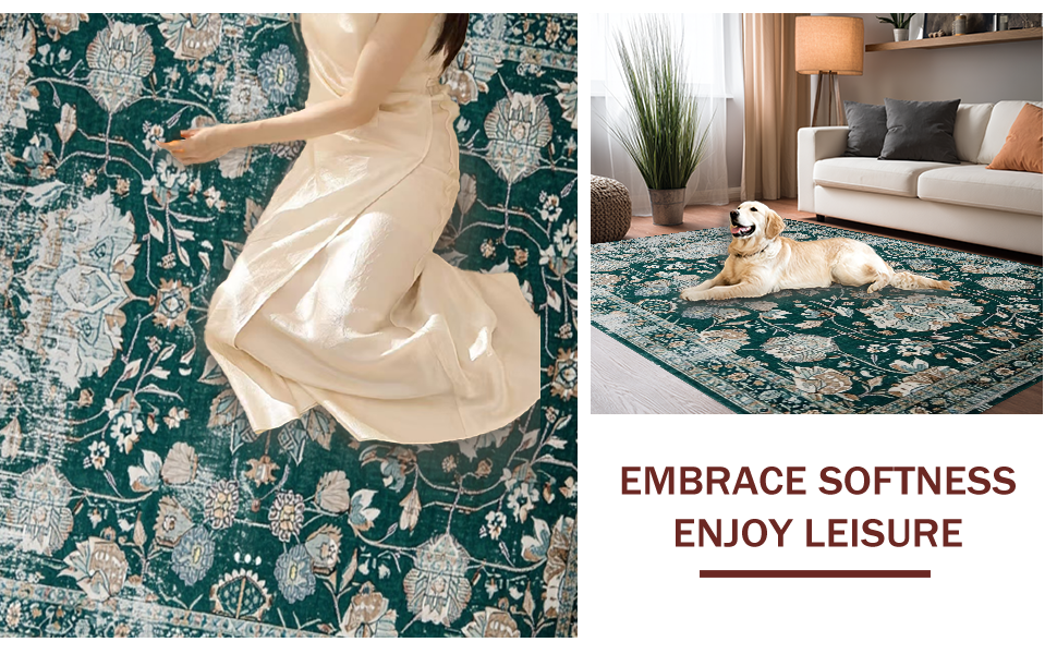 Ultra Soft Area Rug, Non Slip, Stain Resistant, Washable Area Rugs for Living Room, Bedroom, Chic Vintage Lattice Arrangement(Green) Overview: